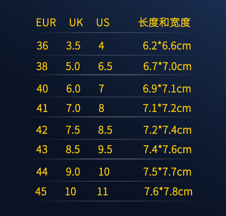 China (cm) 36 - 37 38 - 39 40 - 42 43 - 44 45 - 47