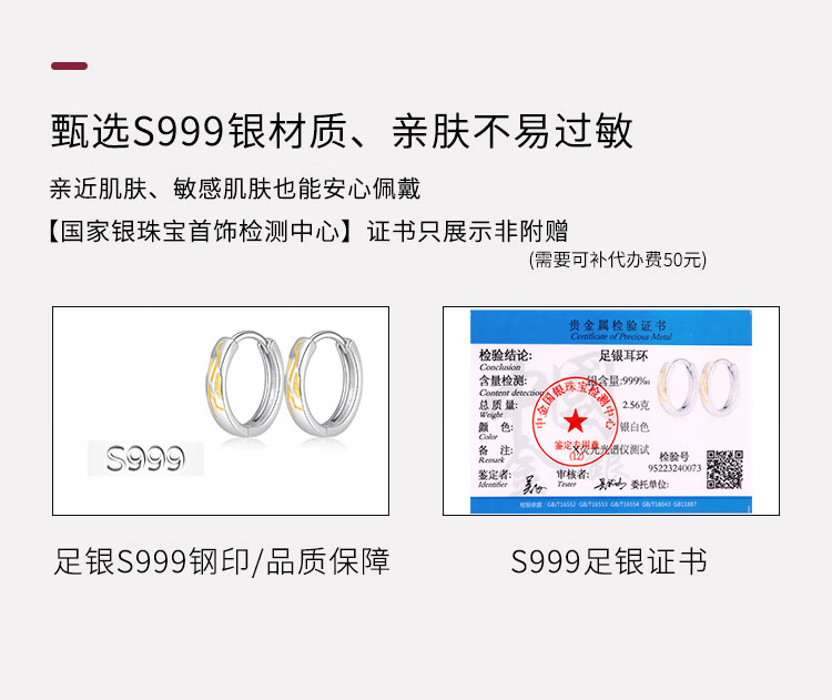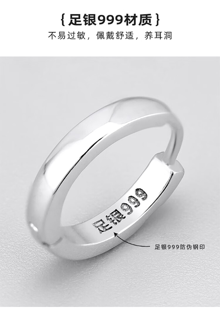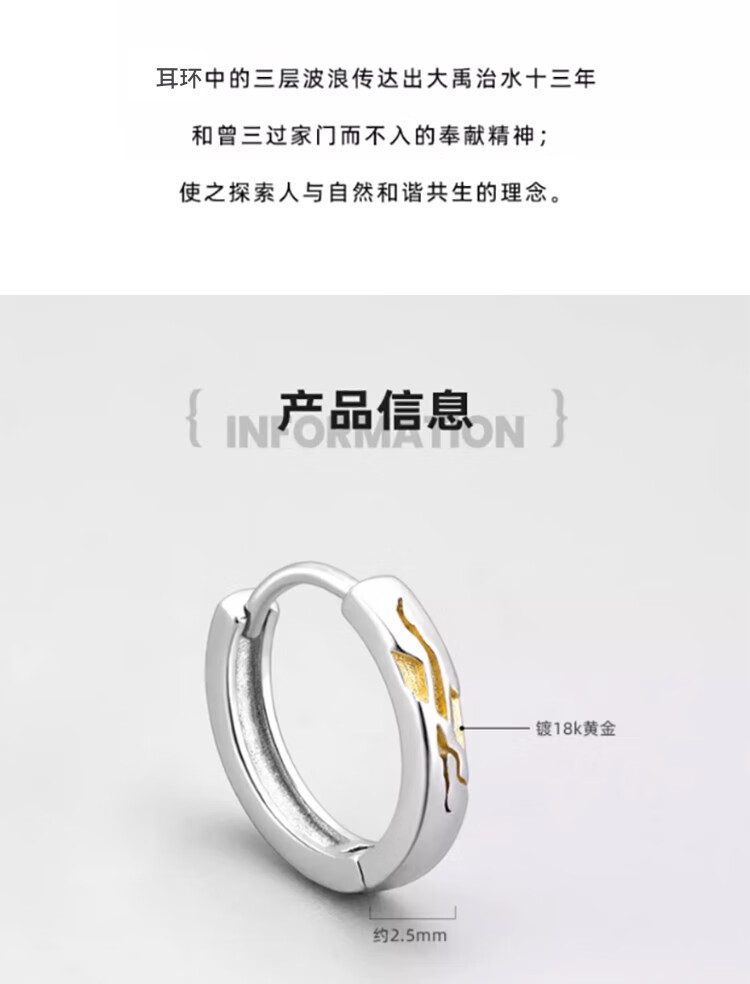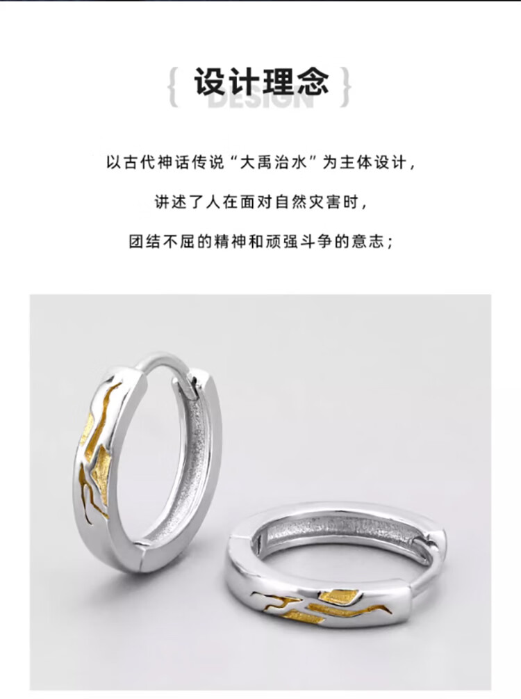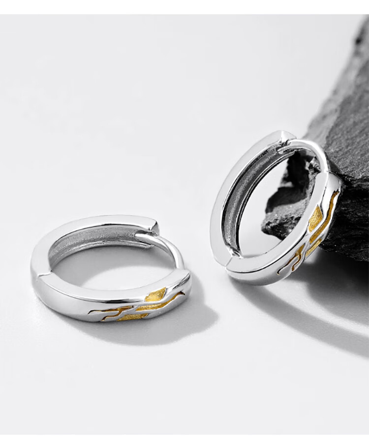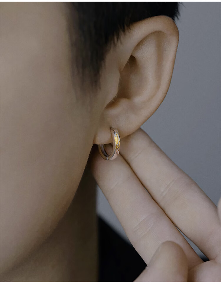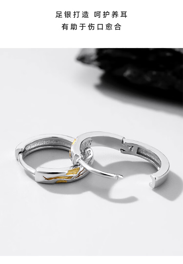Lnieer 999 Pure Silver Gilt Earrings Men's Earrings Men's High-end Style Handsome Trendy Men Light Luxury Ear Piercing Earrings Earrings 999 Pure Silver Gilt Earrings One