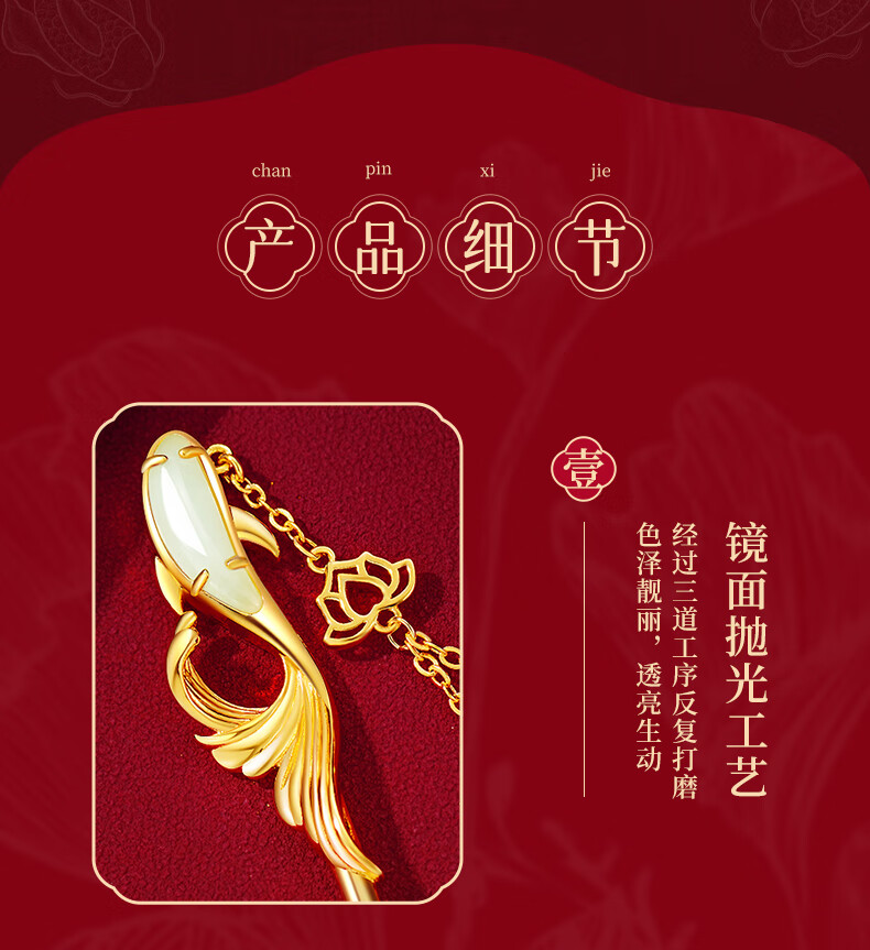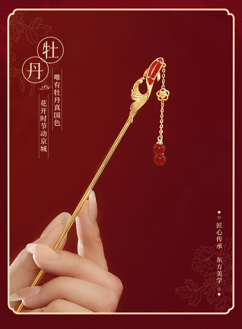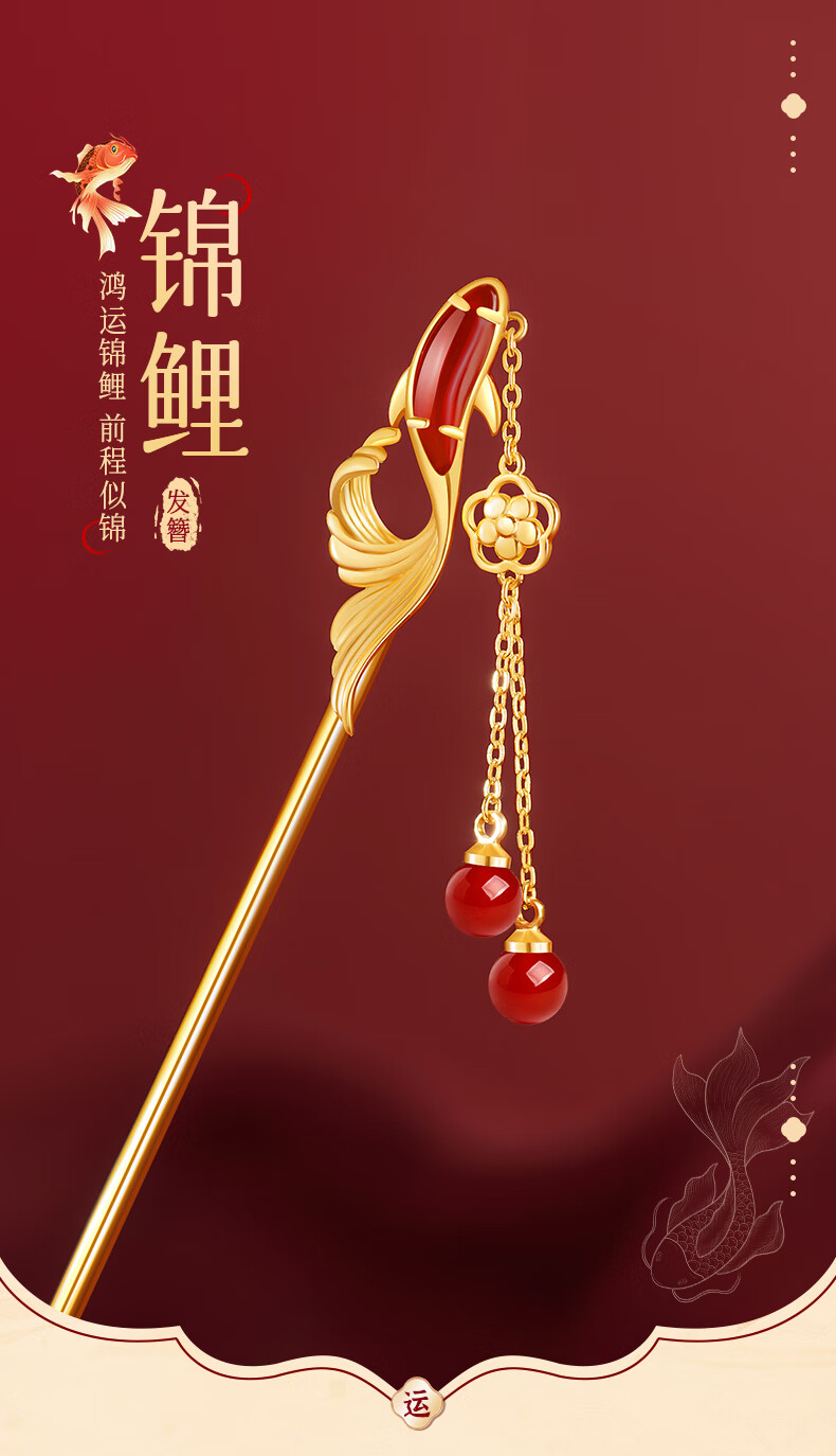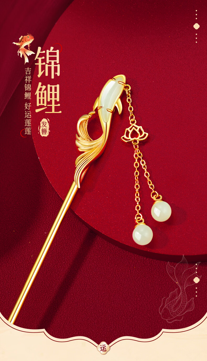 Zhou Dajin CHOW TAI KING Hairpin Women's Ancient Style Silver Hairpin Women's Headwear Hair Accessories Valentine's Day Gifts for Girlfriends Birthday Gifts Dielianhua Tassel Hairpin/Qicang Straight Hair