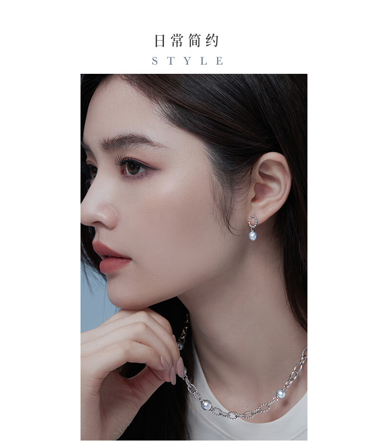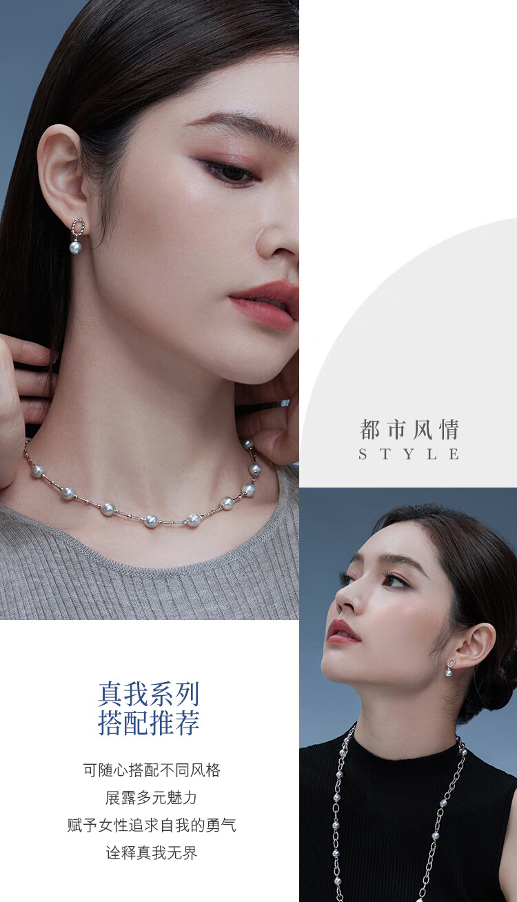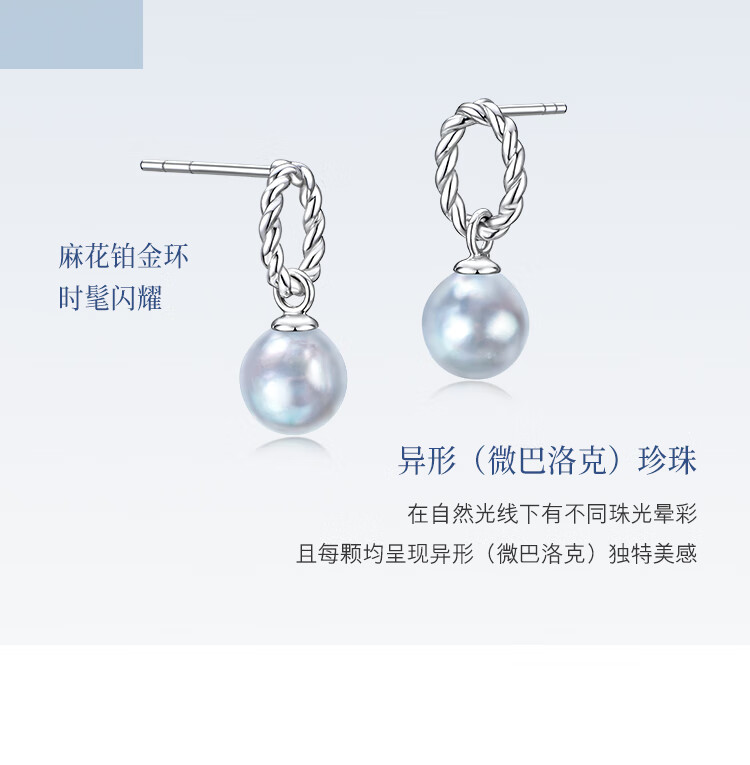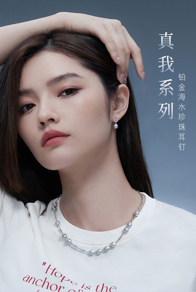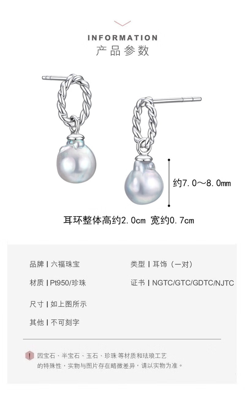Lukfook Jewelry True Me Series Platinum 950 Seawater Pearl Platinum Earrings Pair of Earrings for Gift GJT1TBE0004 Total Weight 2.93 Grams