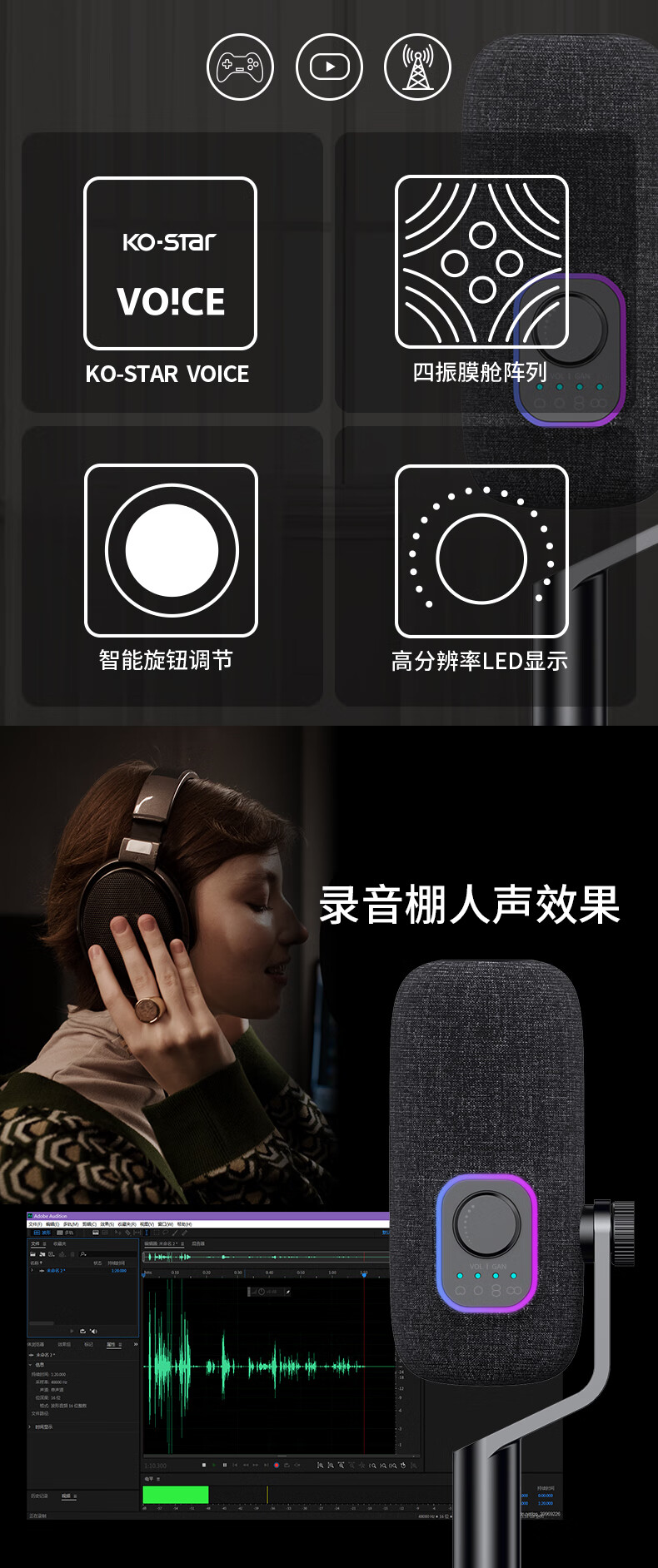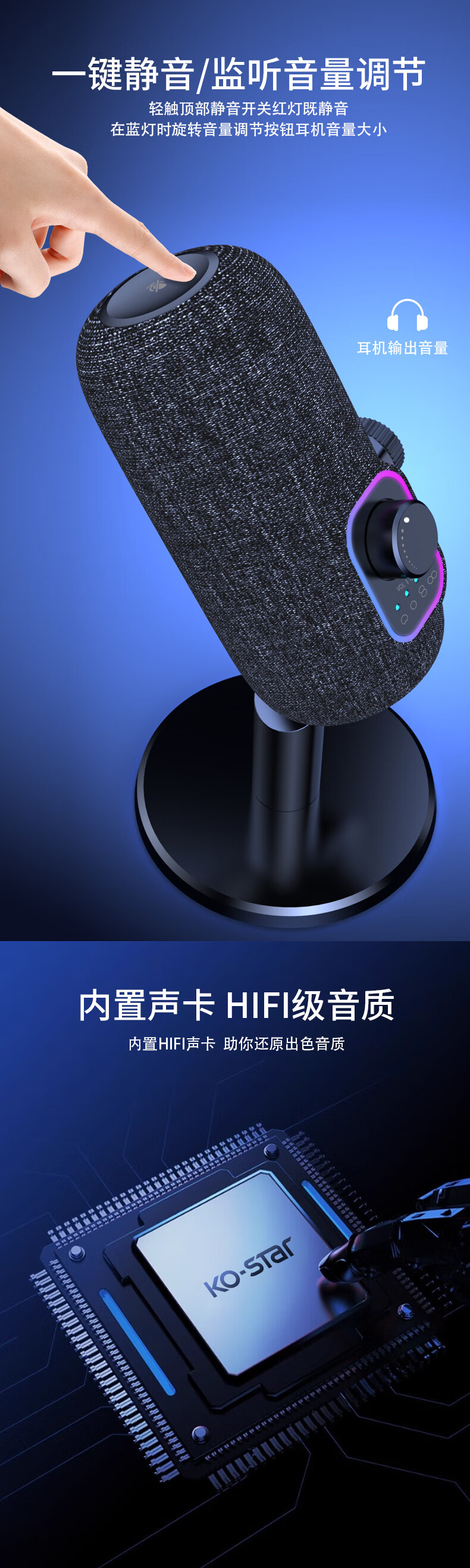 KO-STAR Microphone Condenser Microphone Professional Recording Dubbing Computer Live Broadcast Singing Game High Quality Four-Point Noise Reduction Radio Equipment Laptop Desktop Mobile Phone Wired Microphone M660 Thickened Innovative Model Four Audition Modes + Volume Adjustment + Radio Switching (Black)
