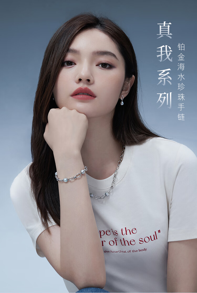 Lukfook Jewelry True Me Series Platinum 950 Seawater Pearl Platinum Bracelet as Gift GJT1TBB0006 Total Weight 11.48 Grams