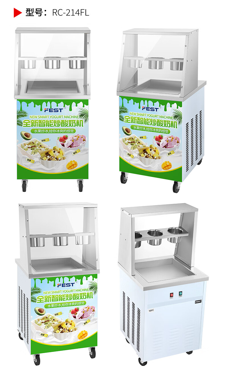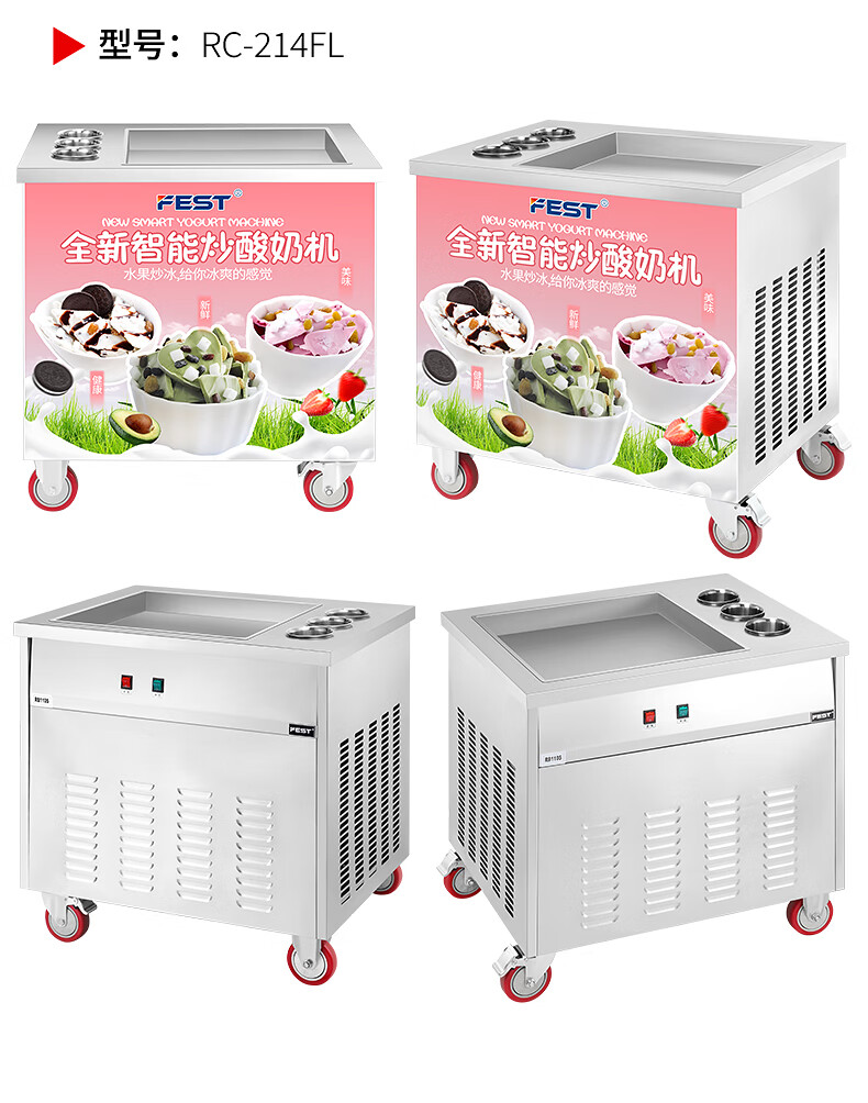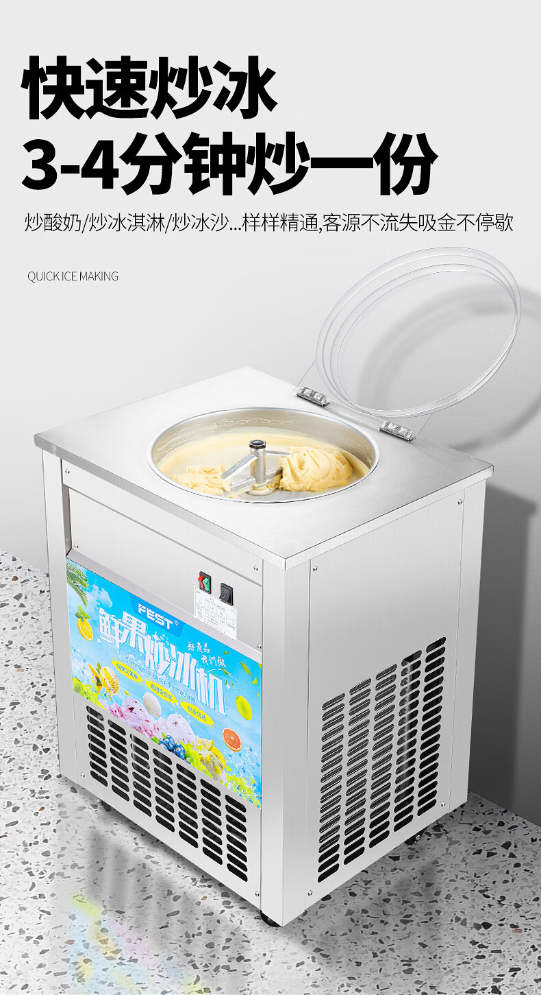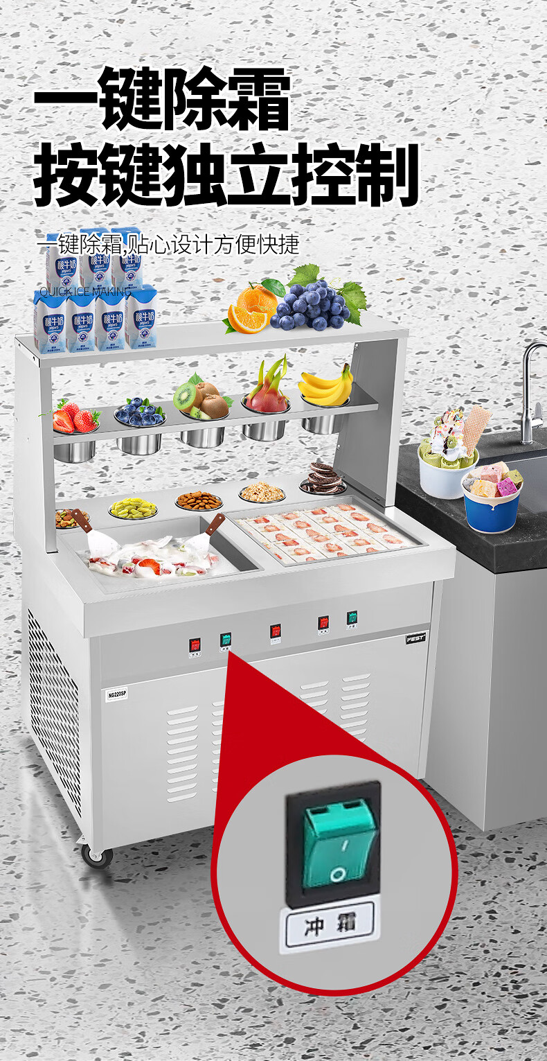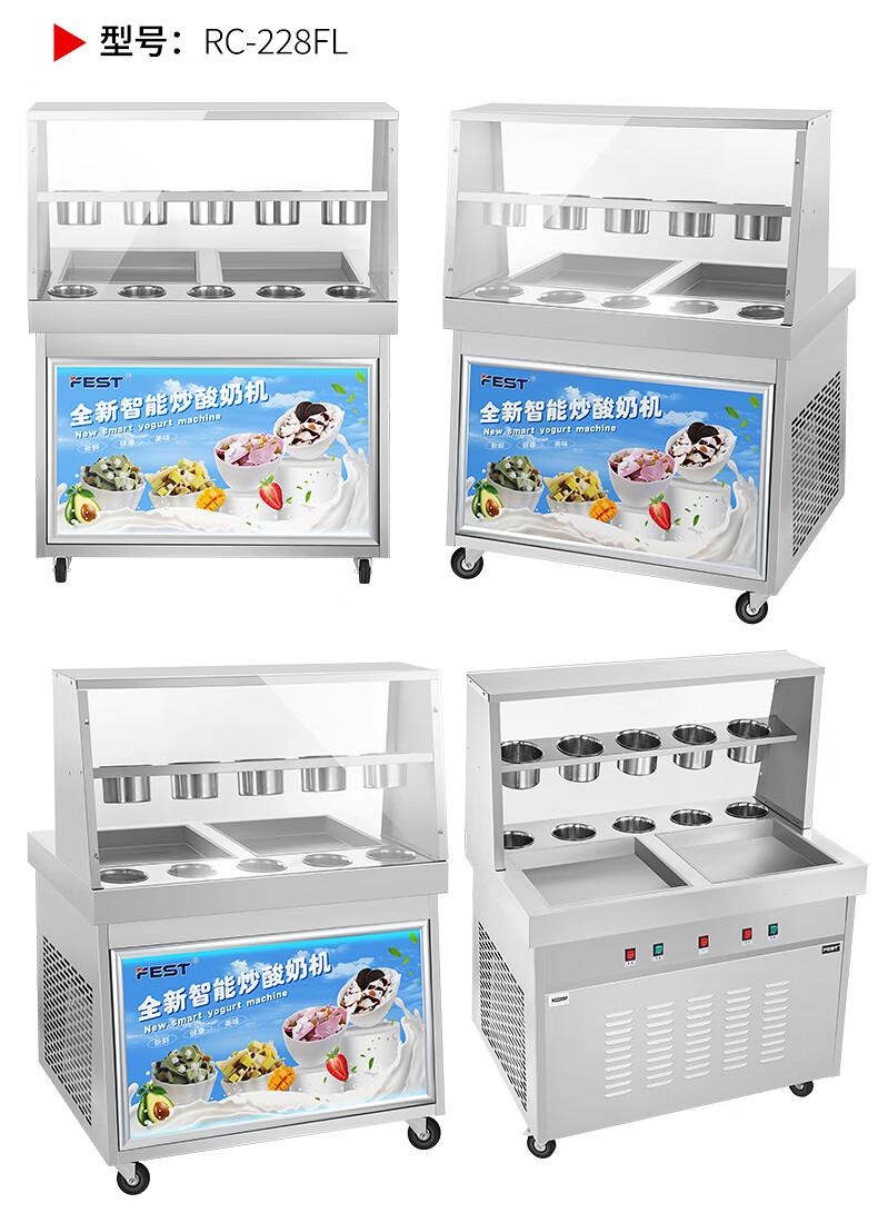 FEST fried ice machine commercial fried yogurt machine stall Hainan coconut milk manual thick-cut and thin-cut ice porridge machine ice cream ball fruit juice stir-fried to refresh and refresh manual two-sided pot dual compressor/thick cut and thin cut/flagship model 228FL
