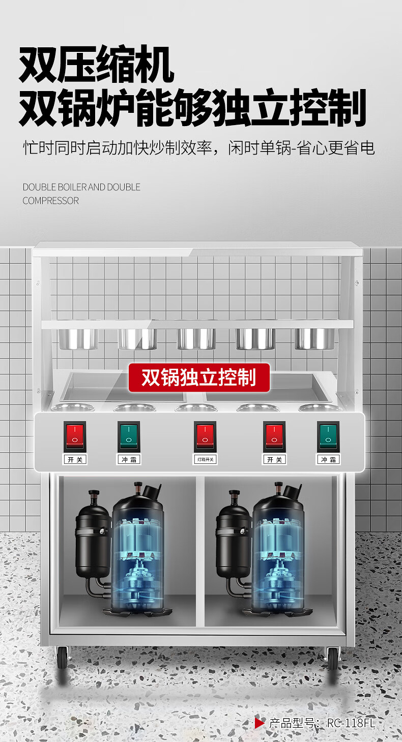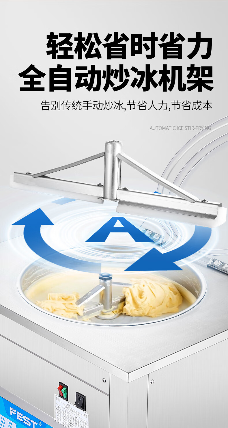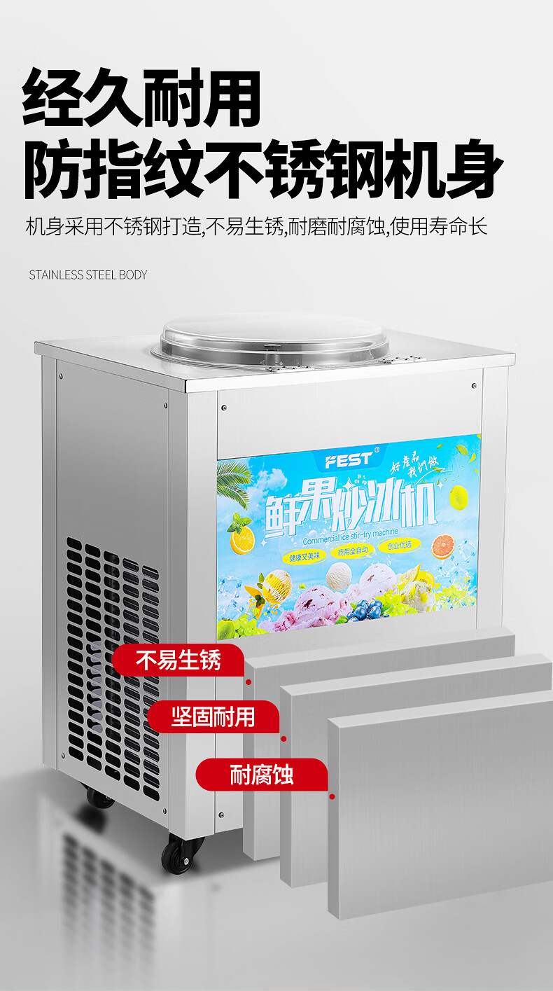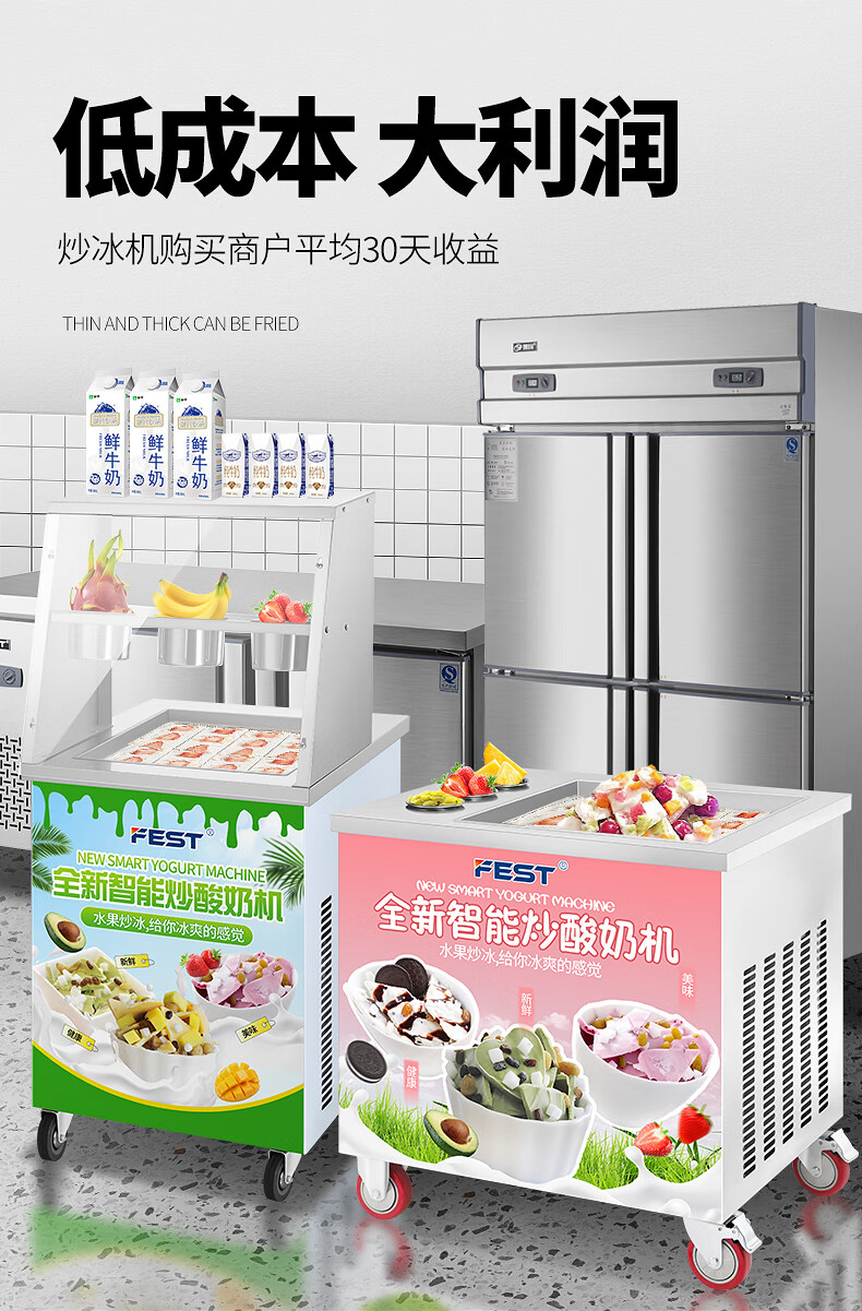 FEST fried ice machine commercial fried yogurt machine stall Hainan coconut milk manual thick-cut and thin-cut ice porridge machine ice cream ball fruit juice stir-fried to refresh and refresh manual two-sided pot dual compressor/thick cut and thin cut/flagship model 228FL