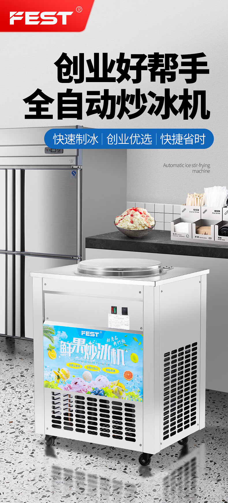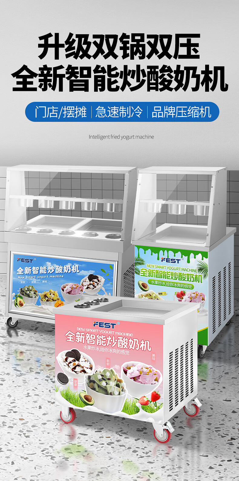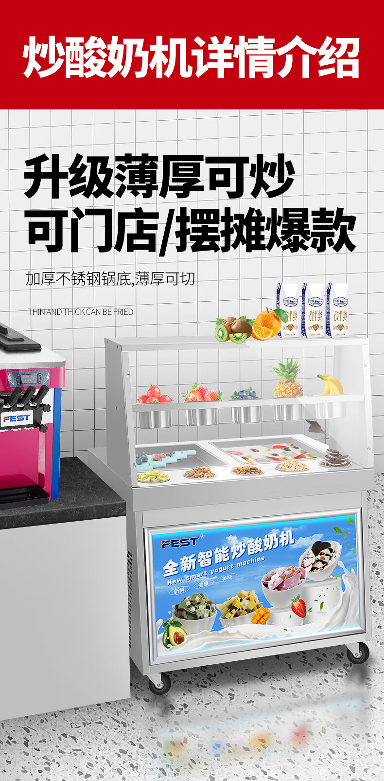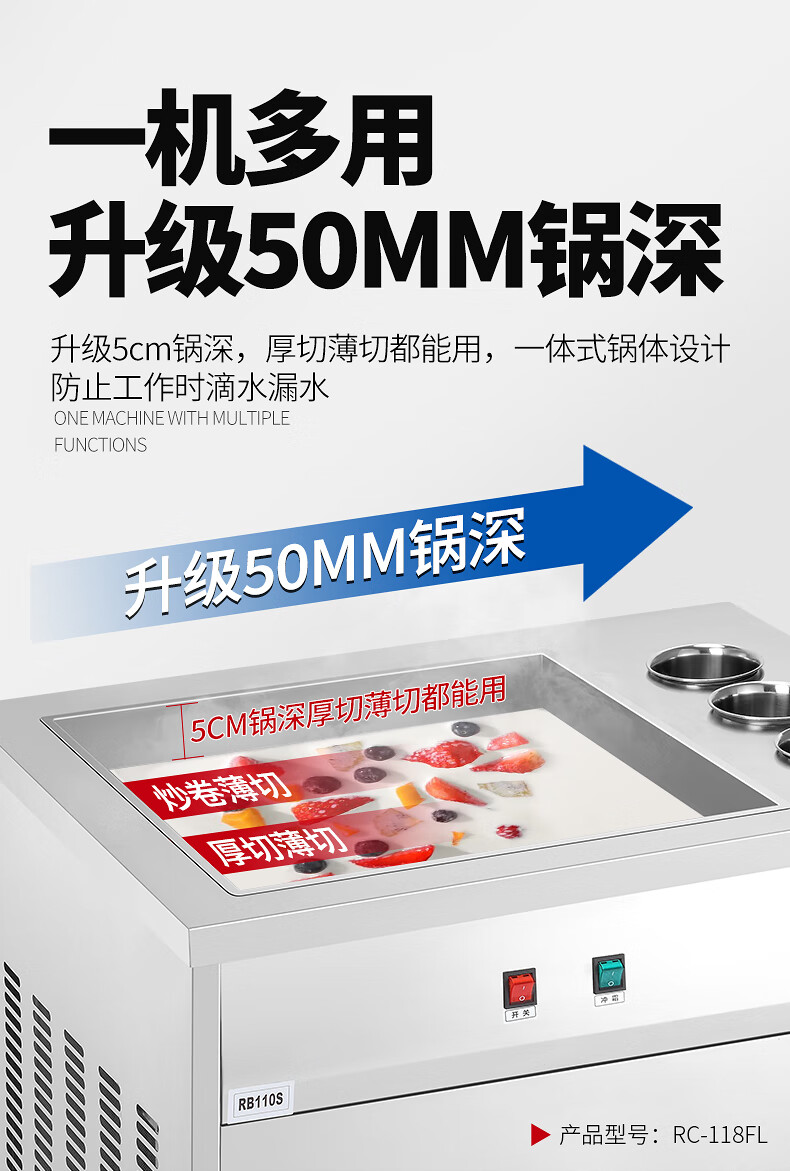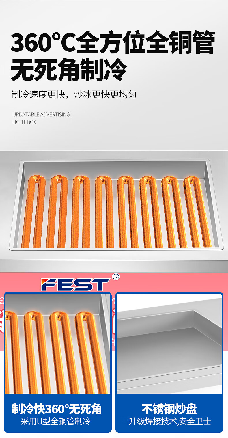 FEST fried ice machine commercial fried yogurt machine stall Hainan coconut milk manual thick-cut and thin-cut ice porridge machine ice cream ball fruit juice stir-fried to refresh and refresh manual two-sided pot dual compressor/thick cut and thin cut/flagship model 228FL