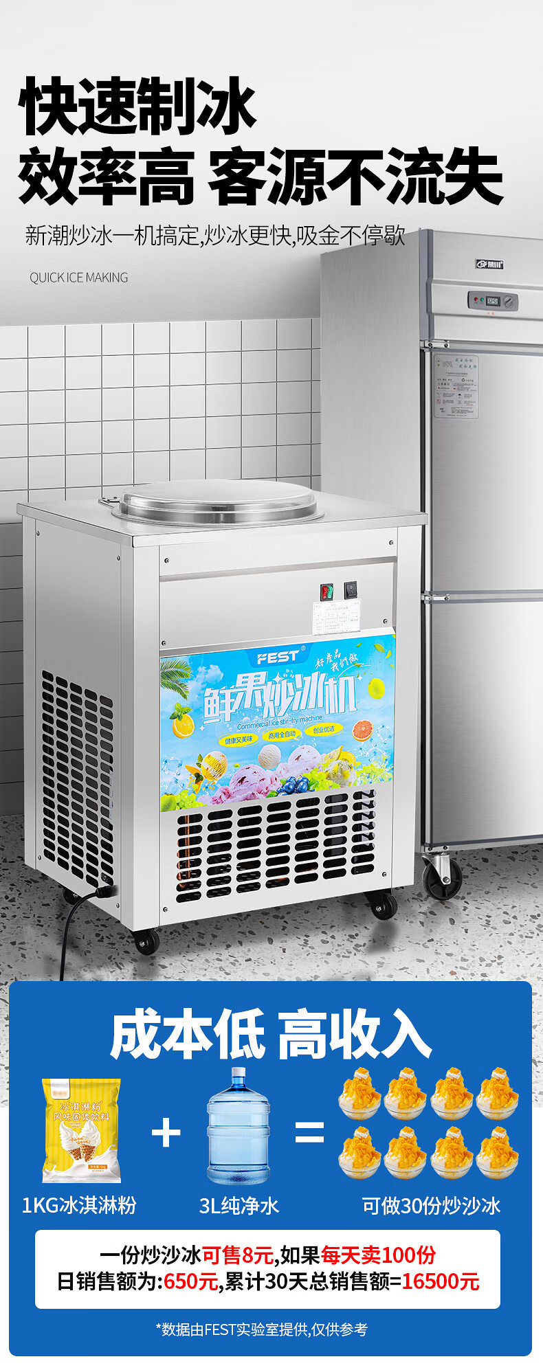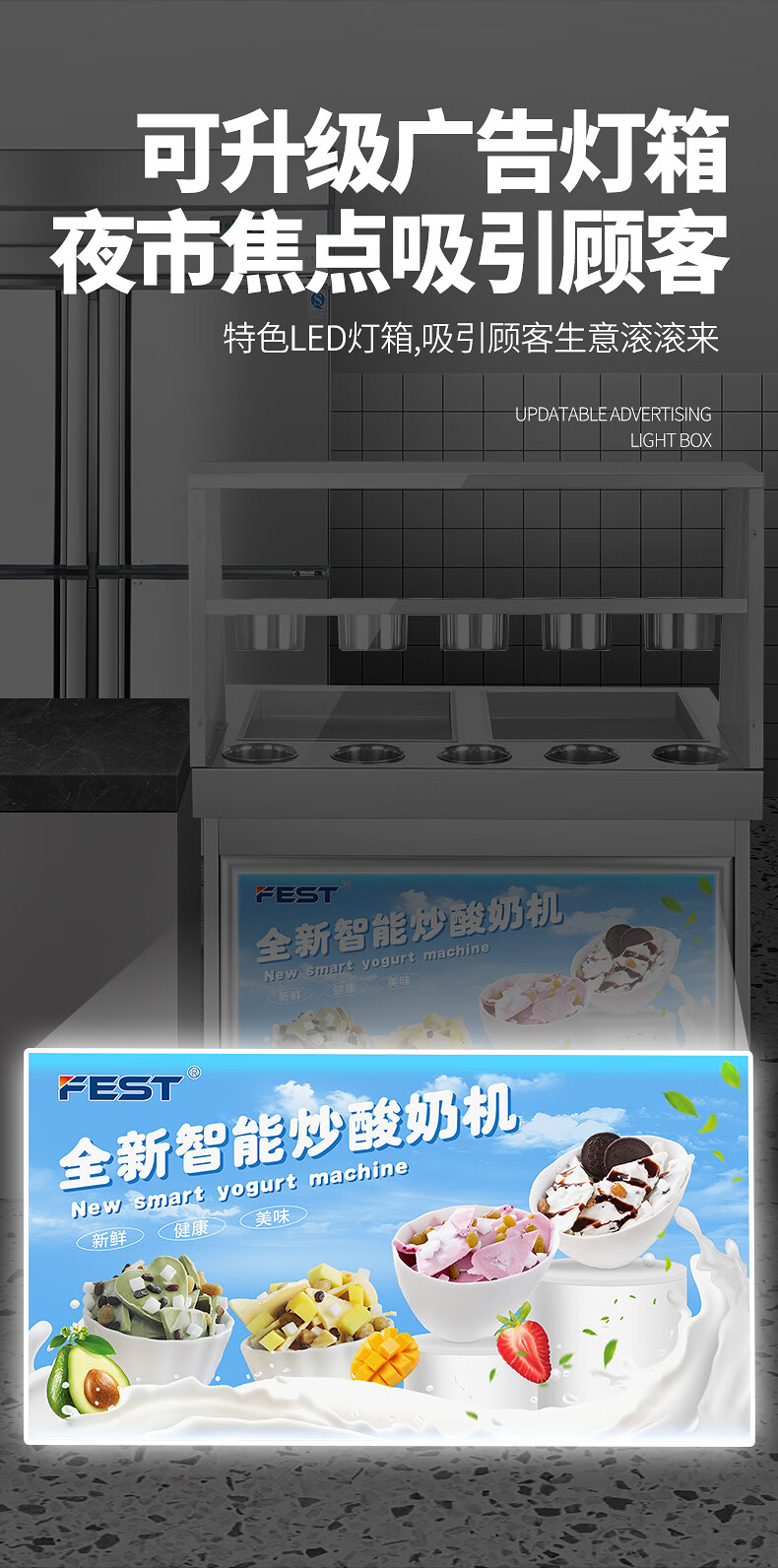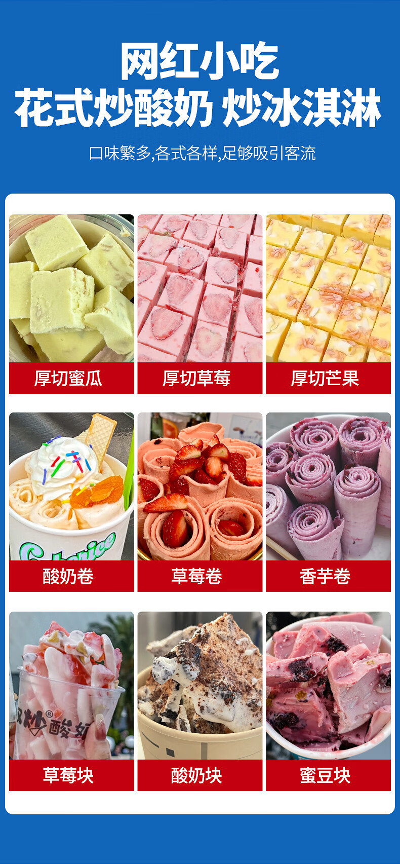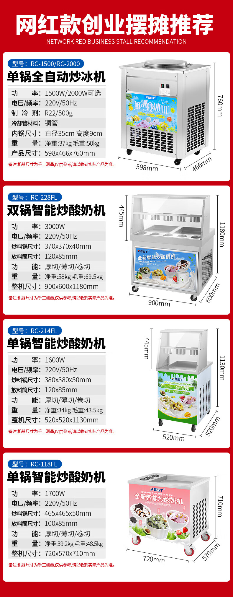 FEST fried ice machine commercial fried yogurt machine stall Hainan coconut milk manual thick-cut and thin-cut ice porridge machine ice cream ball fruit juice stir-fried to refresh and refresh manual two-sided pot dual compressor/thick cut and thin cut/flagship model 228FL