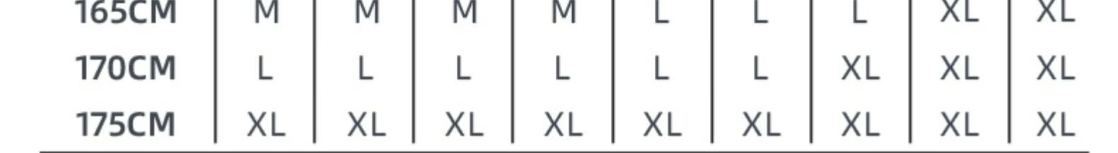 China (cm) 165 / 88-90 170 / 96-98 175 / 108-110 180 / 118-122 185 / 126-130
