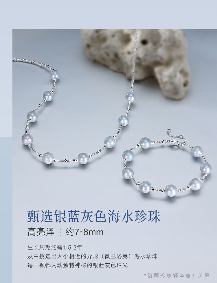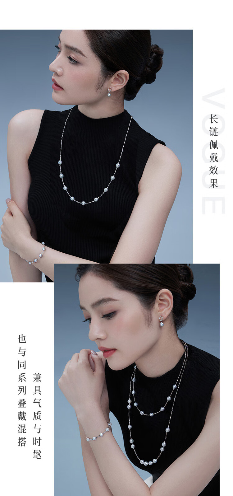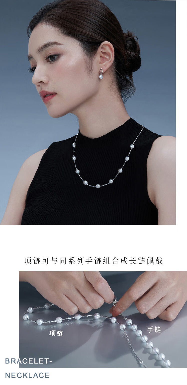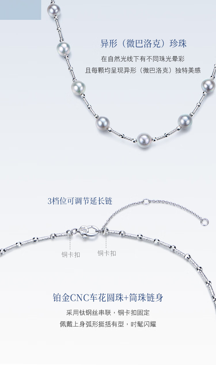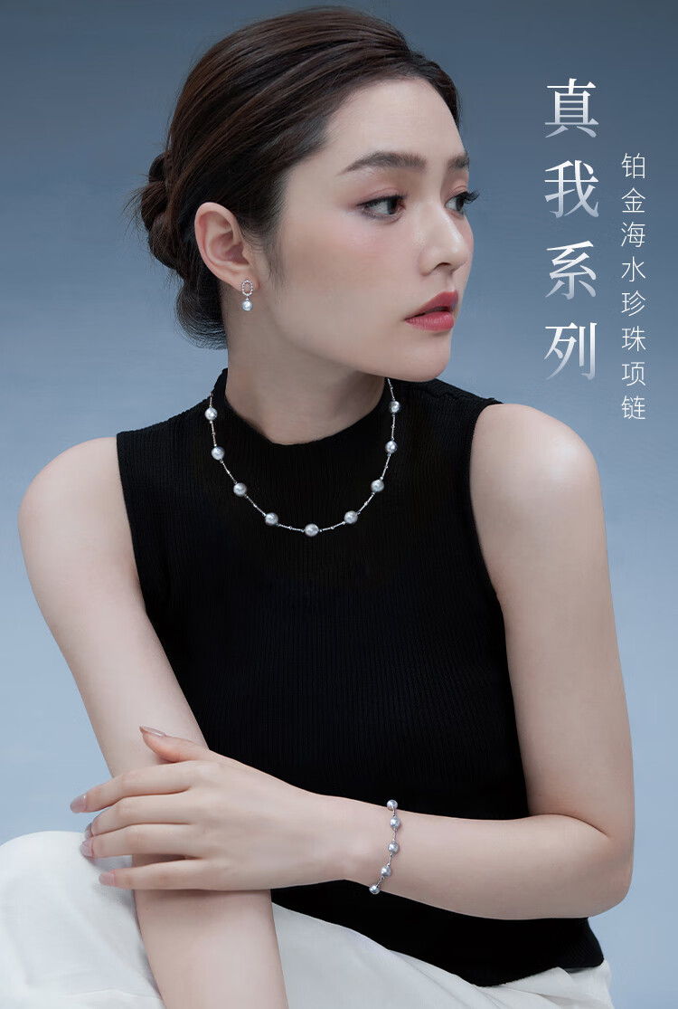 Lukfook Jewelry True Me Series Platinum 950 Seawater Pearl Platinum Necklace Plain Chain GJT0004DS Total Weight 12.28g