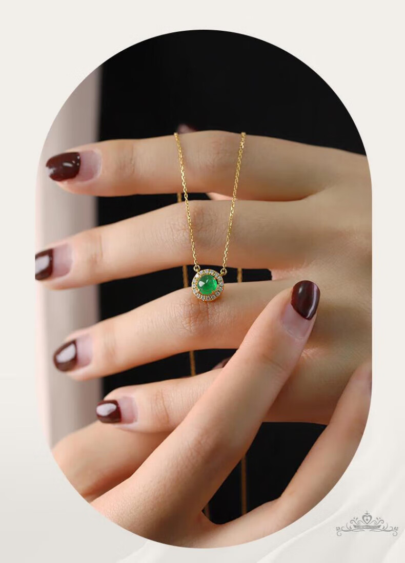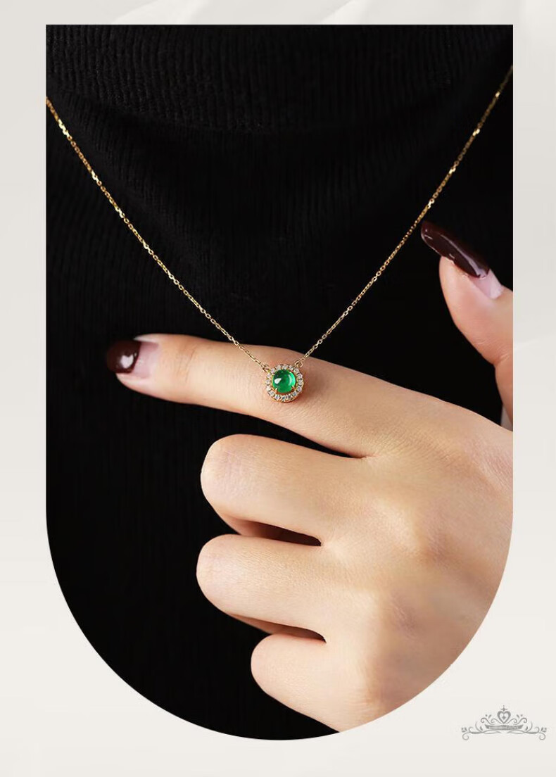 Haikai Necklace Women's Emerald Gemstone Necklace Luxury Jewelry Valentine's Day Birthday Gift for Wife or Girlfriend Emerald Gemstone Necklace (0.8ct/Selected Flawless)