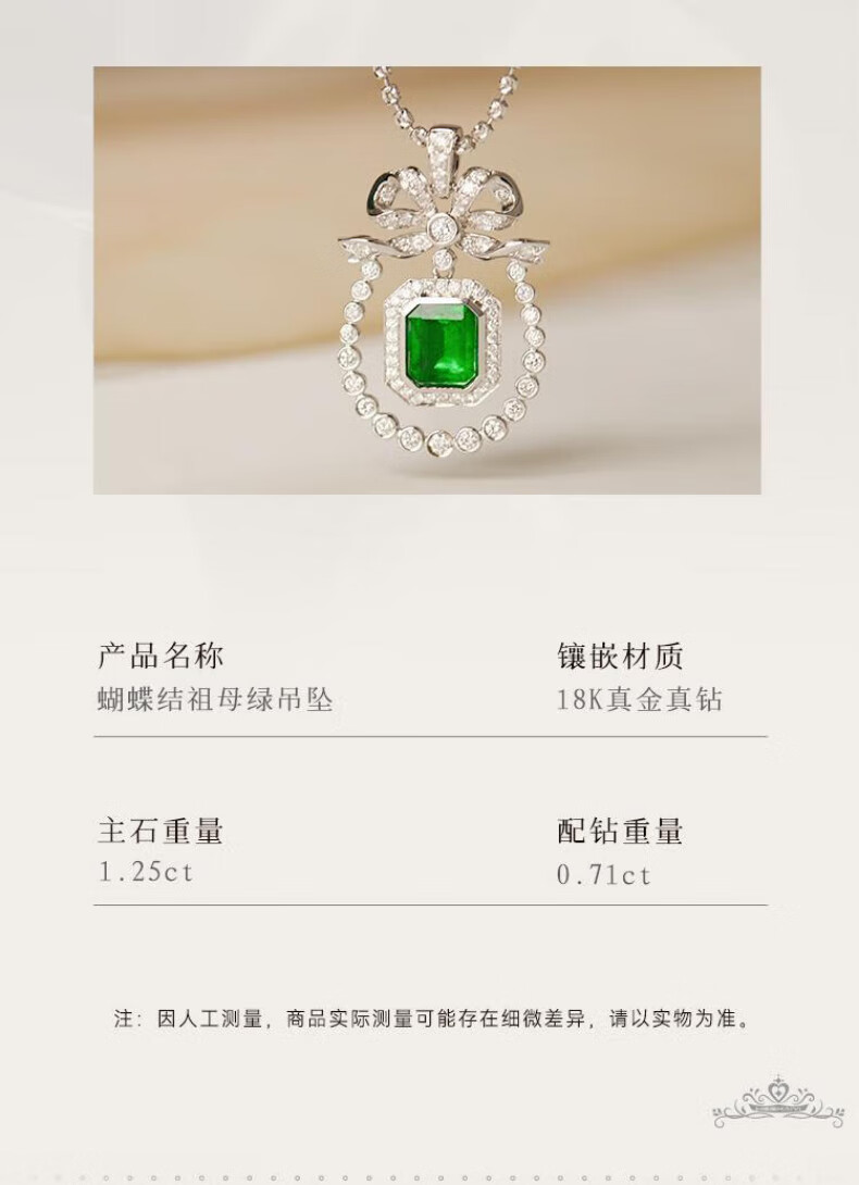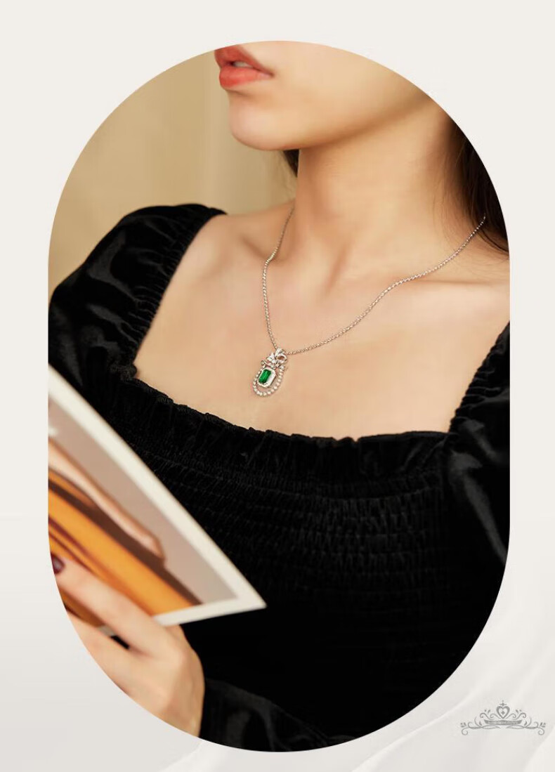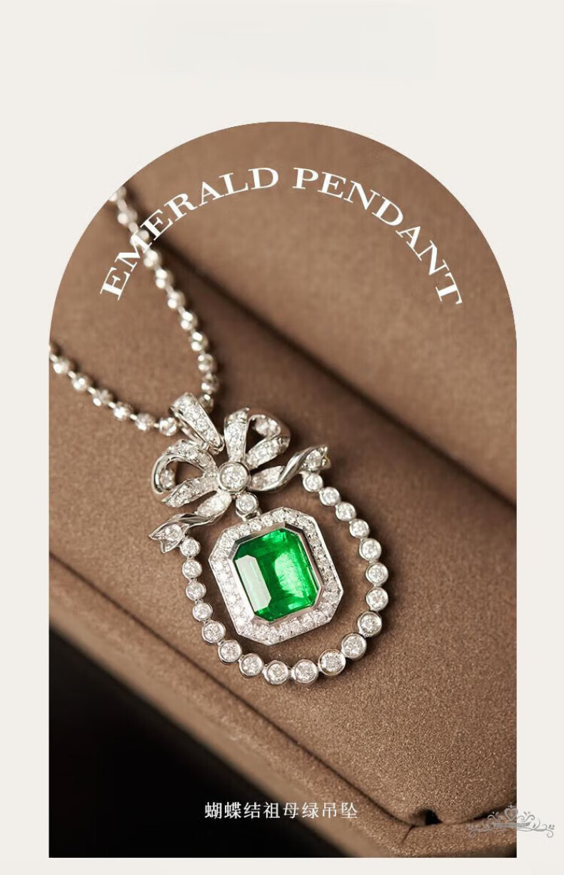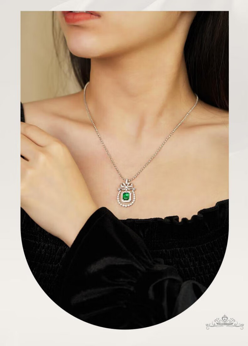 Haikai Necklace Women's Emerald Gemstone Necklace Luxury Jewelry Valentine's Day Birthday Gift for Wife or Girlfriend Emerald Gemstone Necklace (1.25ct/Selected Flawless)