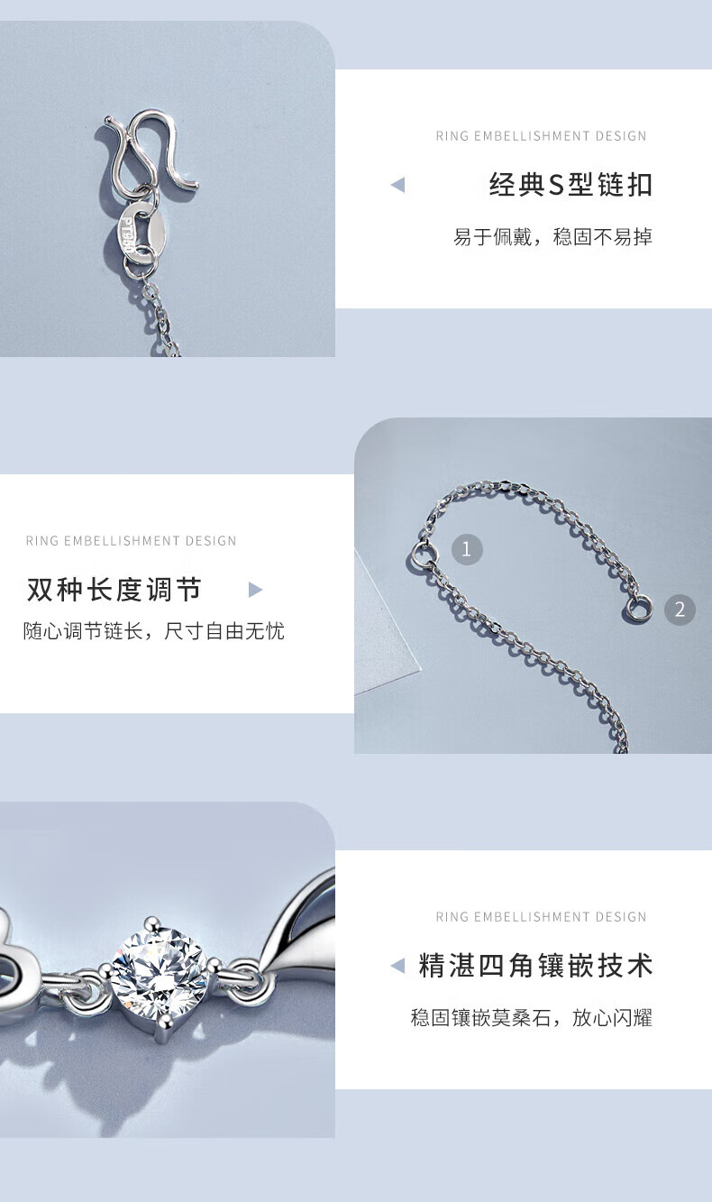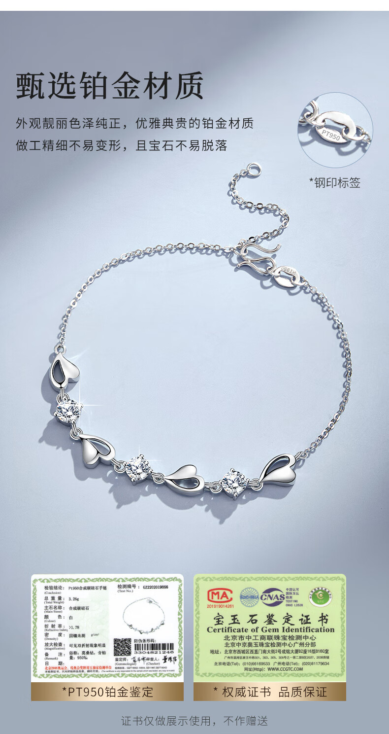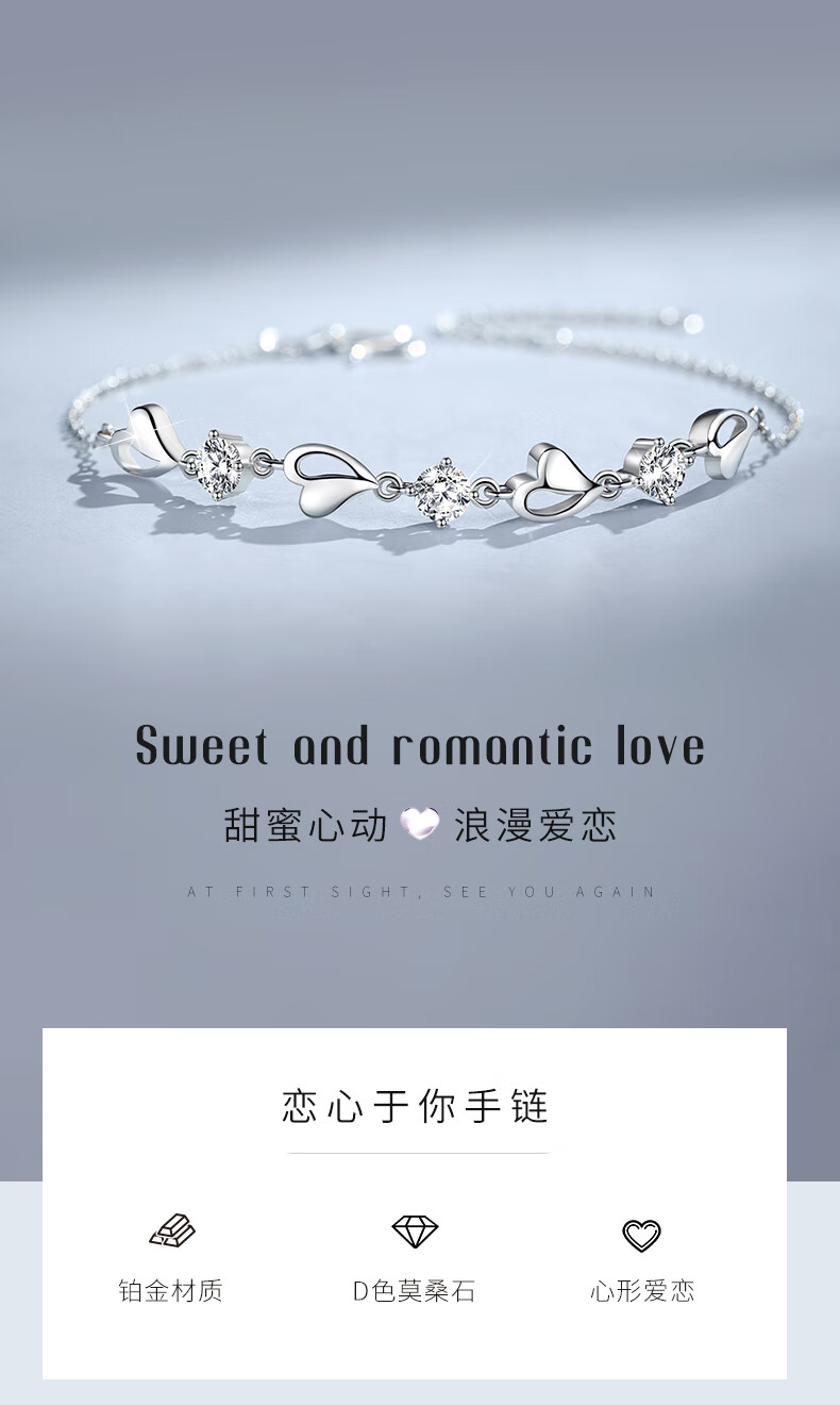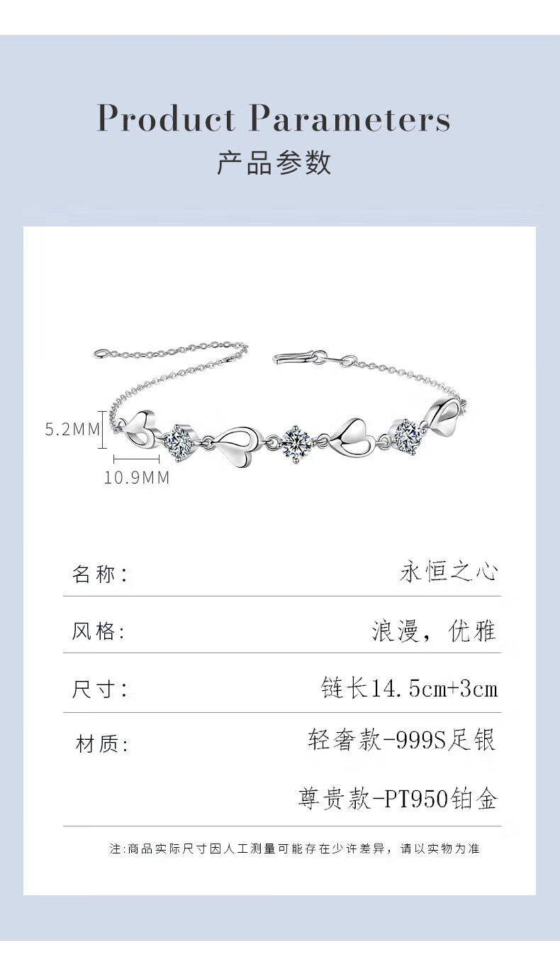 MZMZ Eternal Heart Platinum Bracelet for Women PT950 Platinum Fashion Jewelry Valentine's Day Birthday Gift for Girlfriend and Wife Light Luxury Style-Eternal Heart Bracelet (Blue)