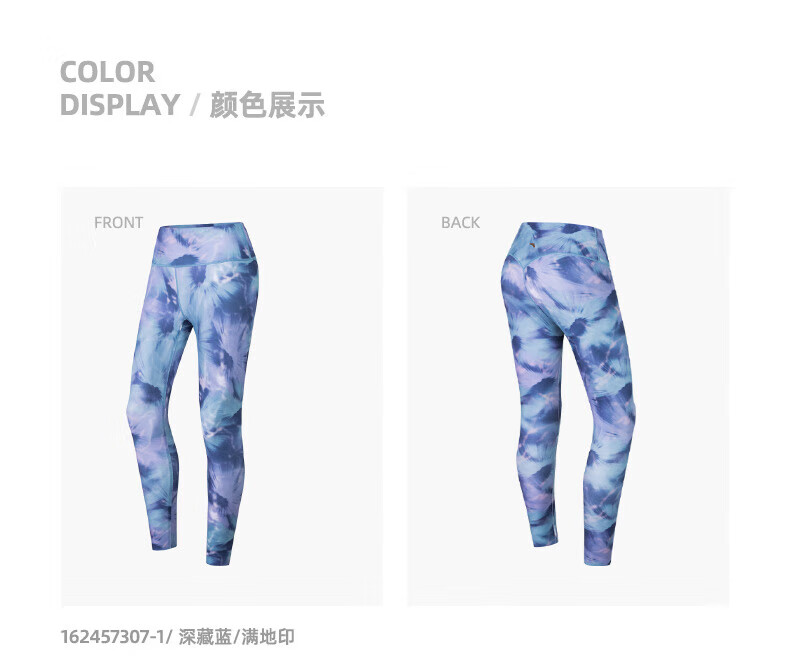 ANTA Ice Skin Tights Sports Women's Autumn Yoga Pilates Fitness Nine-Point Pants Trousers 162457307 Dark Blue/All-over Print-1 XL (Female 175)