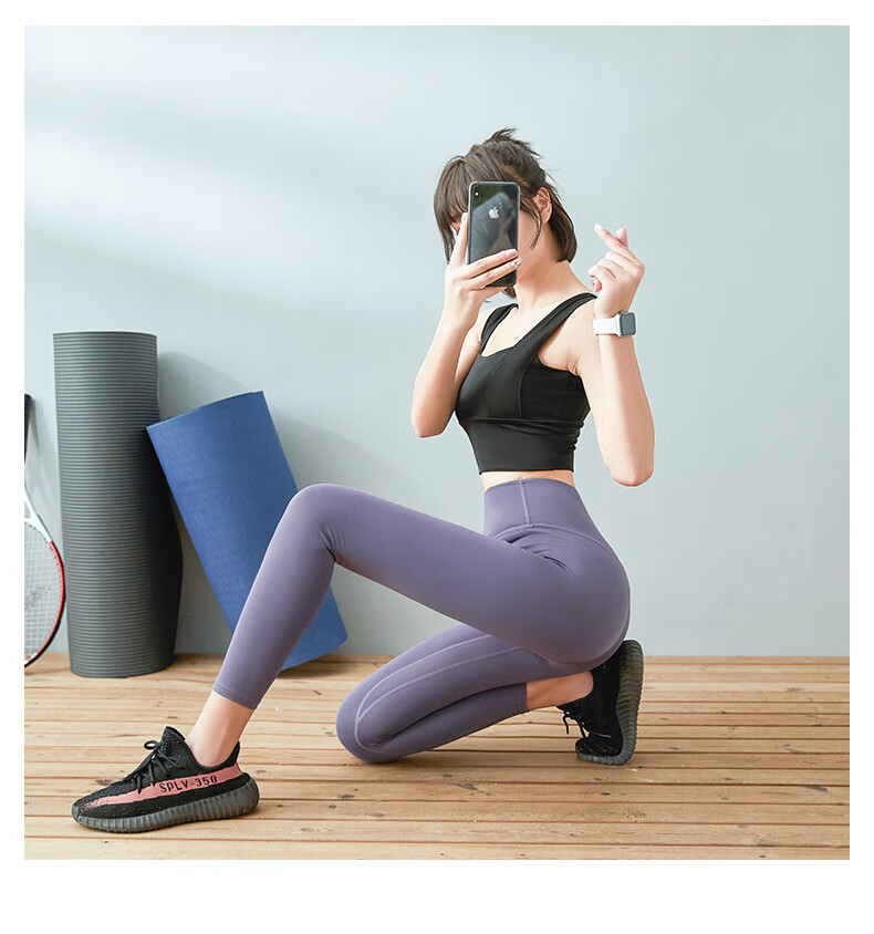 LULUUVTTOH Yoga Wear Suit Women's Sports Peach Hip Pants Running Jacket Quick-drying Breathable Pilates Training Fitness Four-Piece Set Four-Piece Set Gray Lake Blue Short Sleeve + Whale Blue L