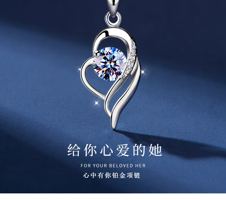 Farcoko Platinum Necklace Women's Heart Is You PT950 Platinum Practical Heartfelt Birthday Gift for Girlfriend and Wife Finely Inlaid Topaz - Light Luxury Style SF Sparkling Hair