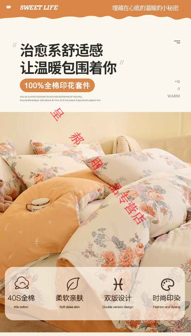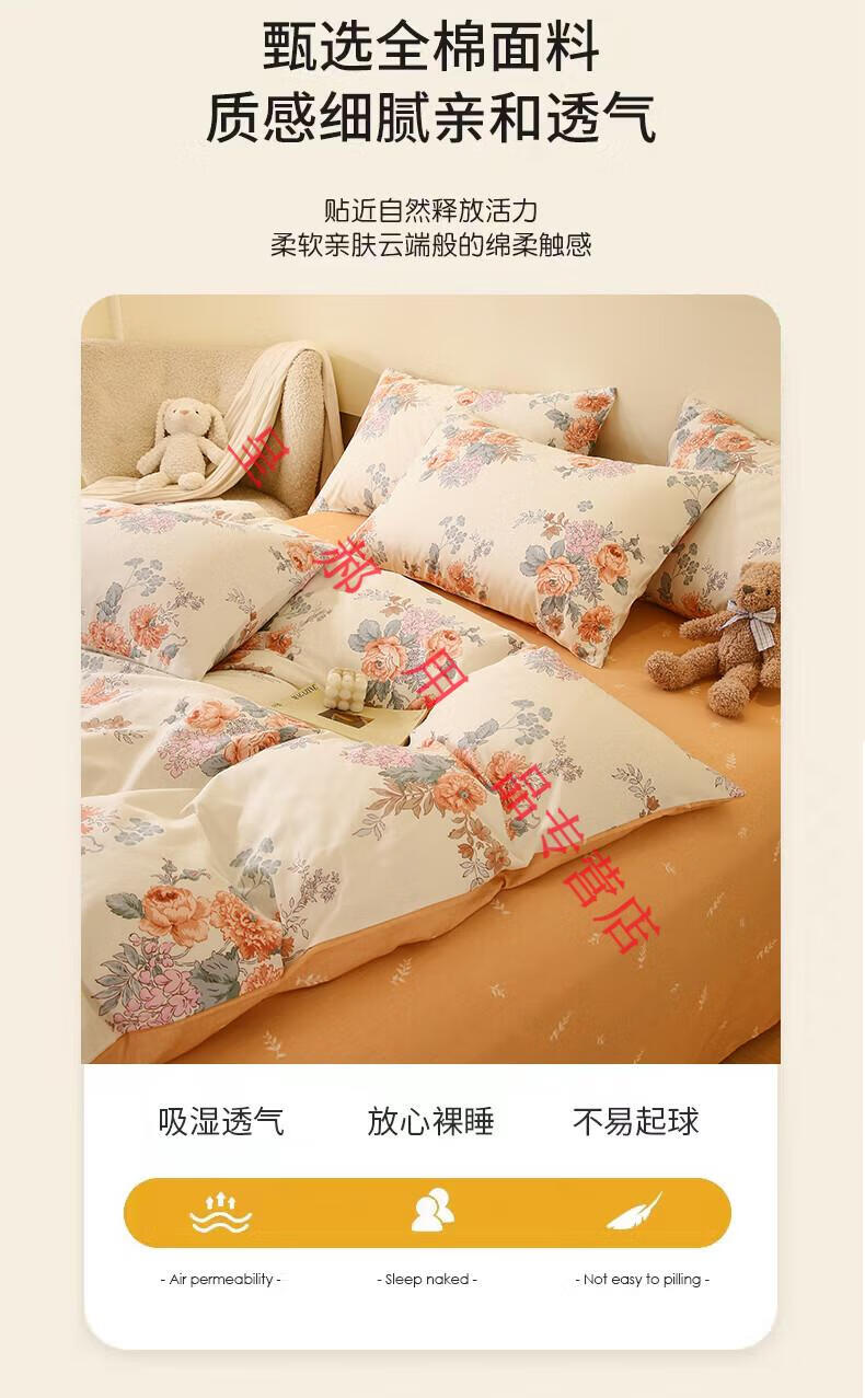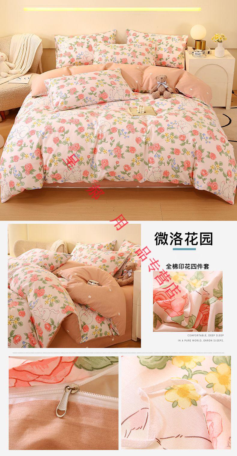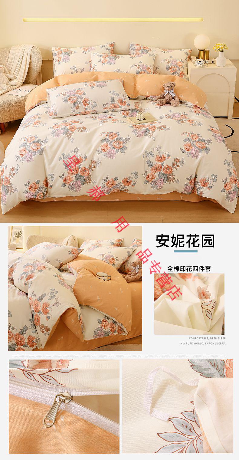 Mercury series home textiles 100% Xinjiang cotton bed sheet four-piece set 200 count pure cotton quilt cover bedding sheets bed sheet Princess Fengqing Anna Garden 100% cotton 1.8 bed sheet four-piece set-quilt cover 200*230 100% cotton
