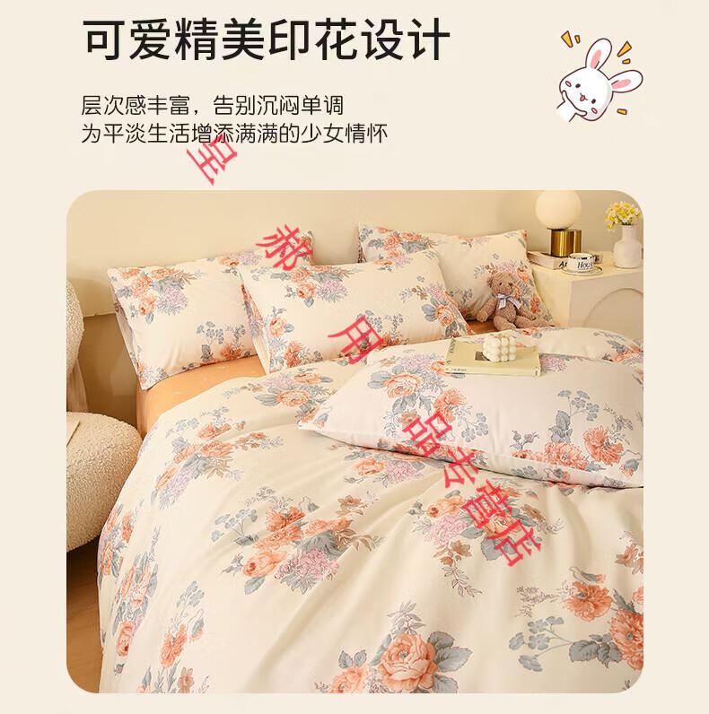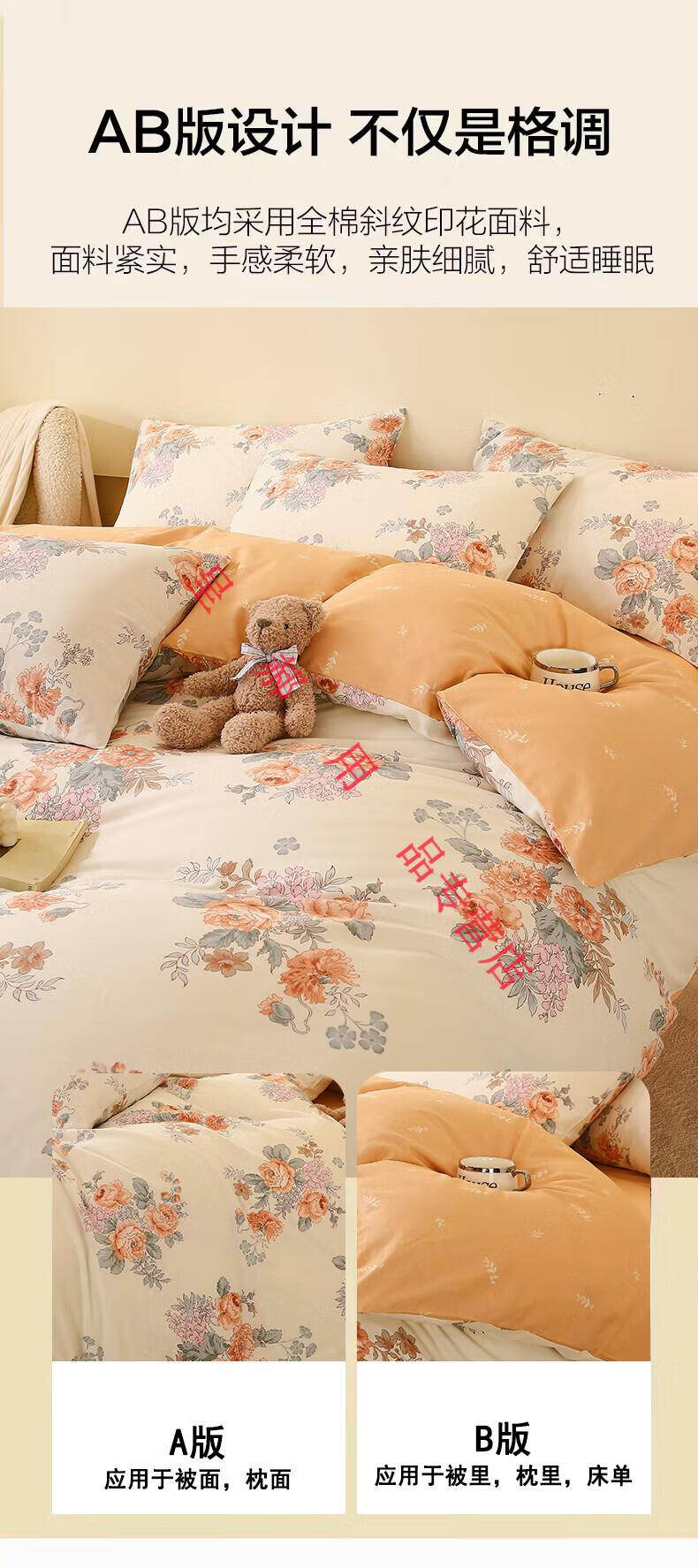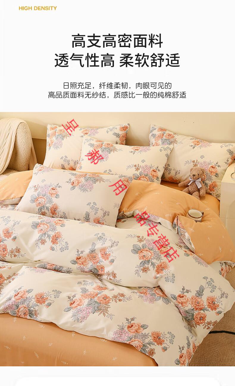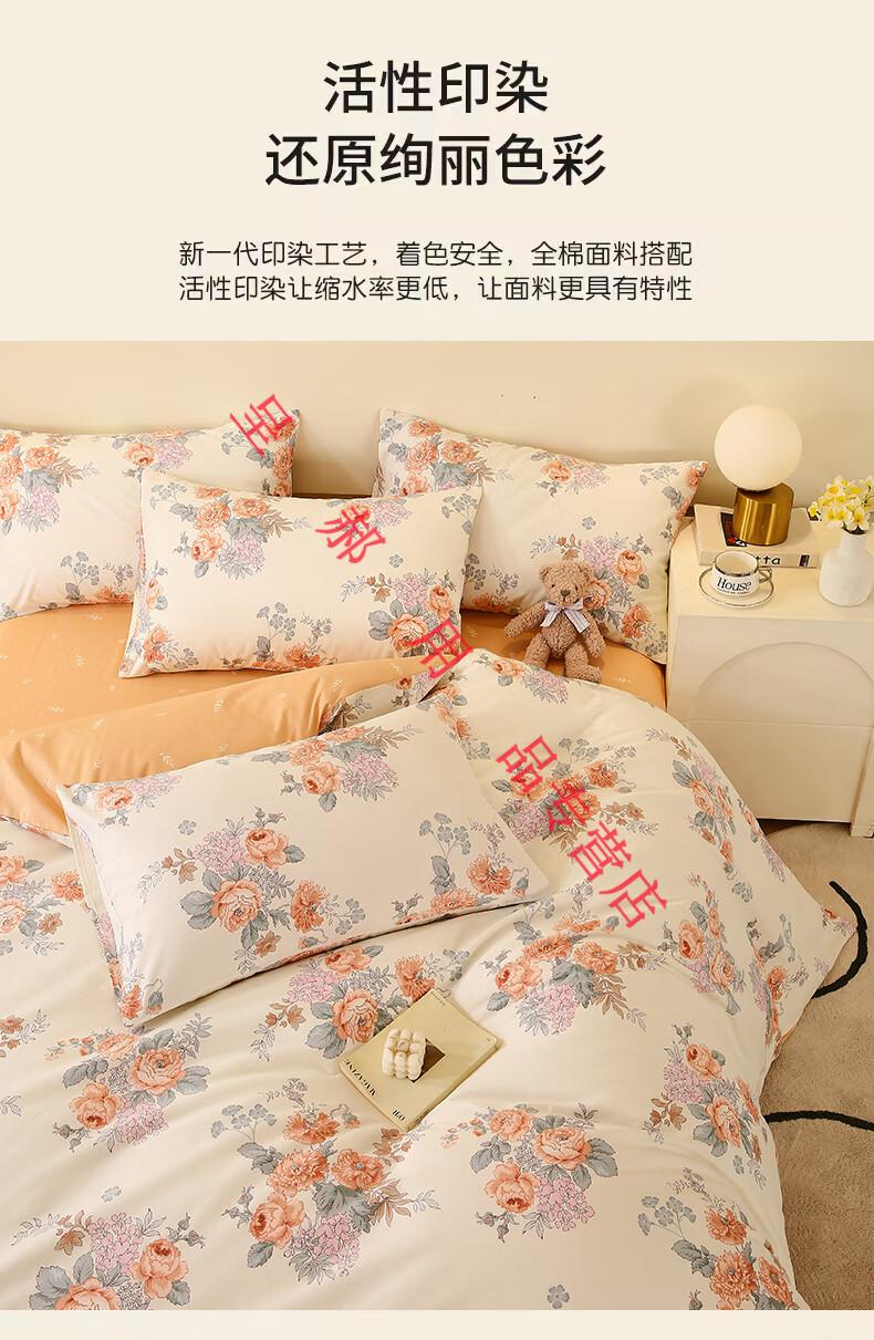 Mercury series home textiles 100% Xinjiang cotton bed sheet four-piece set 200 count pure cotton quilt cover bedding sheets bed sheet Princess Fengqing Anna Garden 100% cotton 1.8 bed sheet four-piece set-quilt cover 200*230 100% cotton