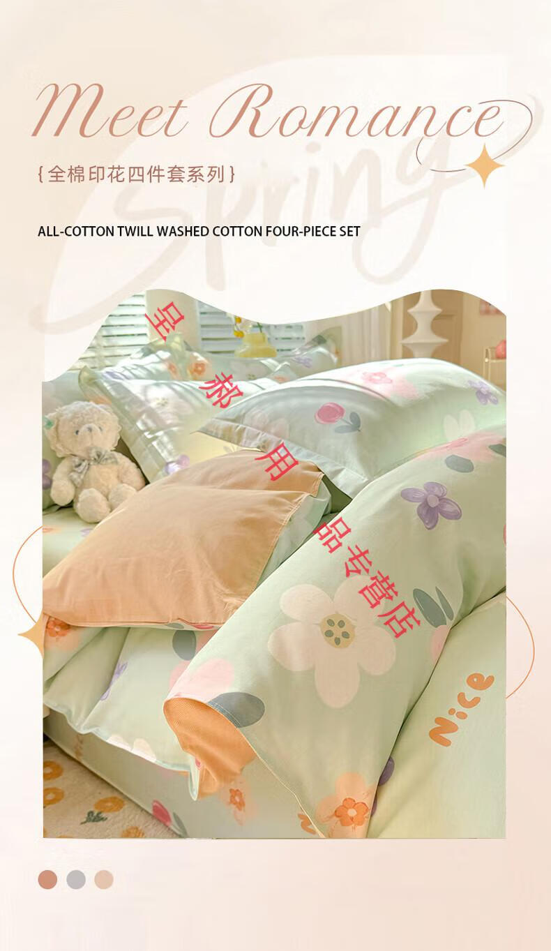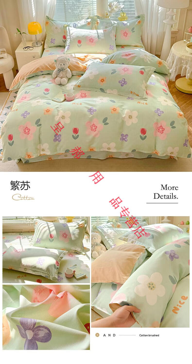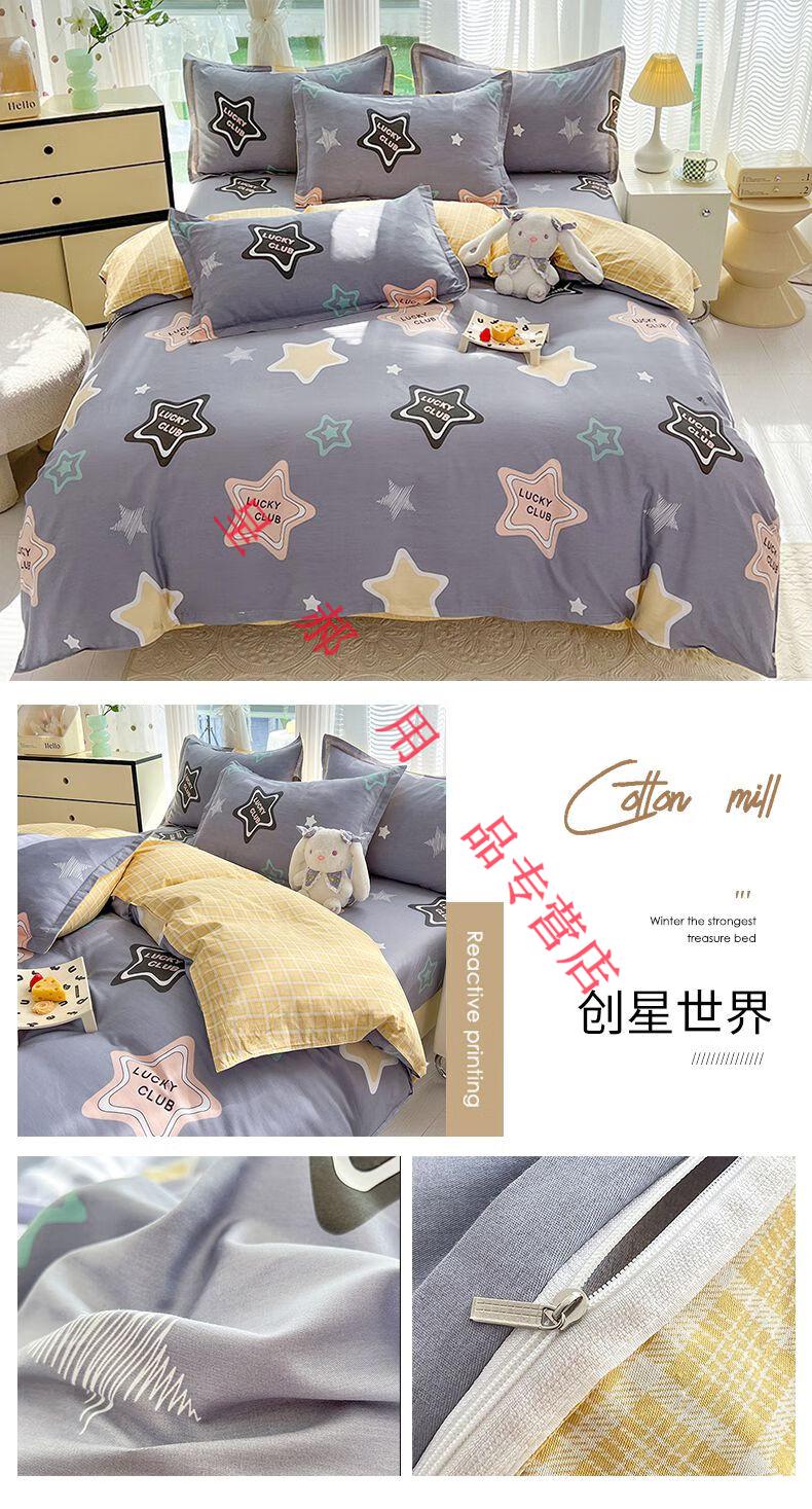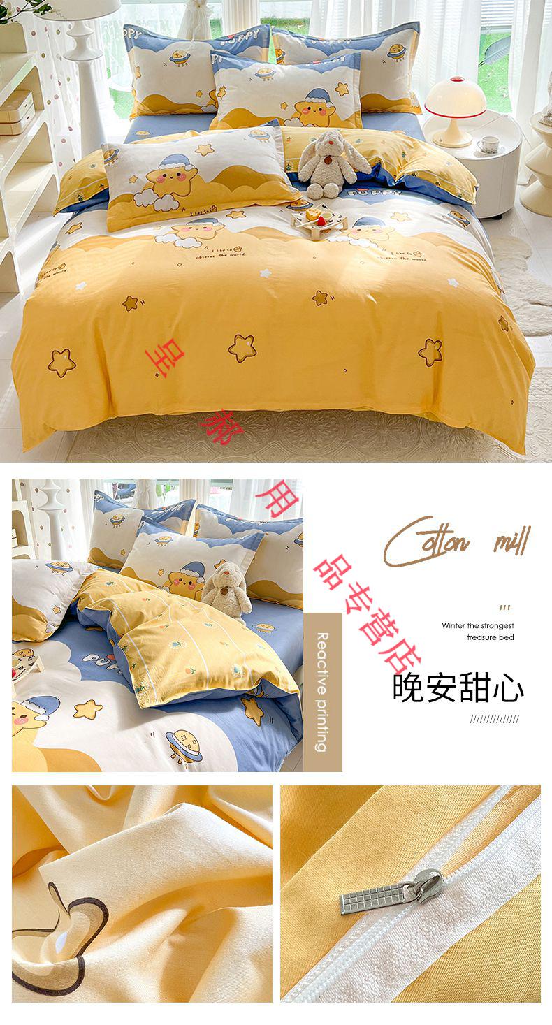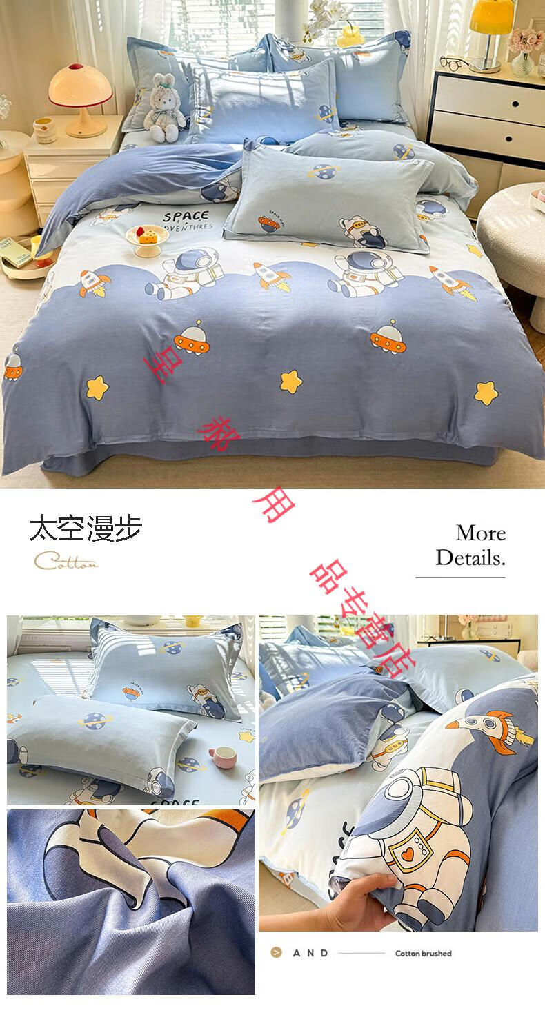 Mercury series cartoon cotton bed four-piece set 100 pure cotton four-season bedding quilt cover sheets student dormitory Chuangxing World 1.5 bed sheet four-piece set-quilt cover 180*220