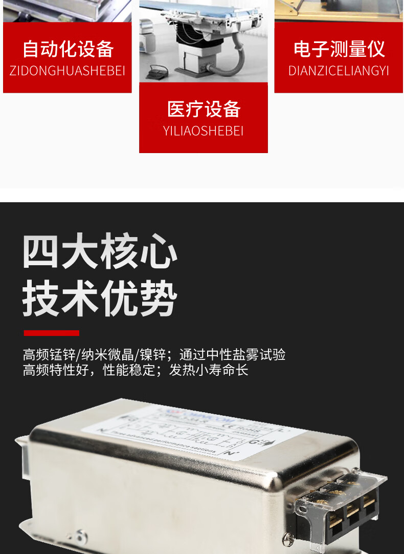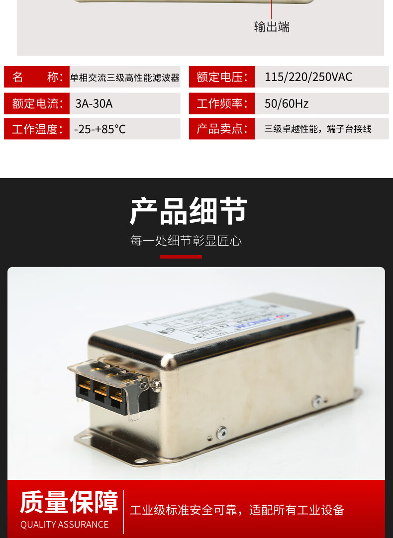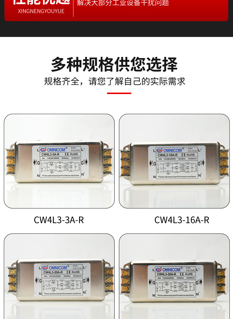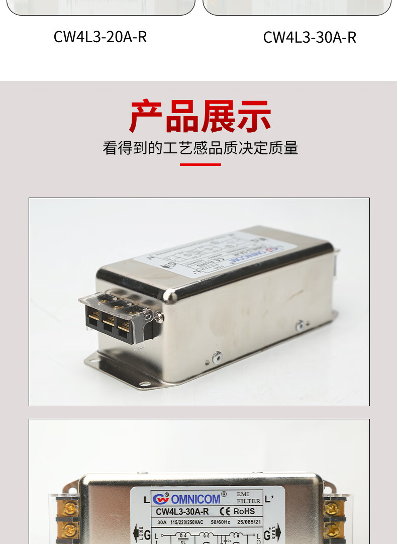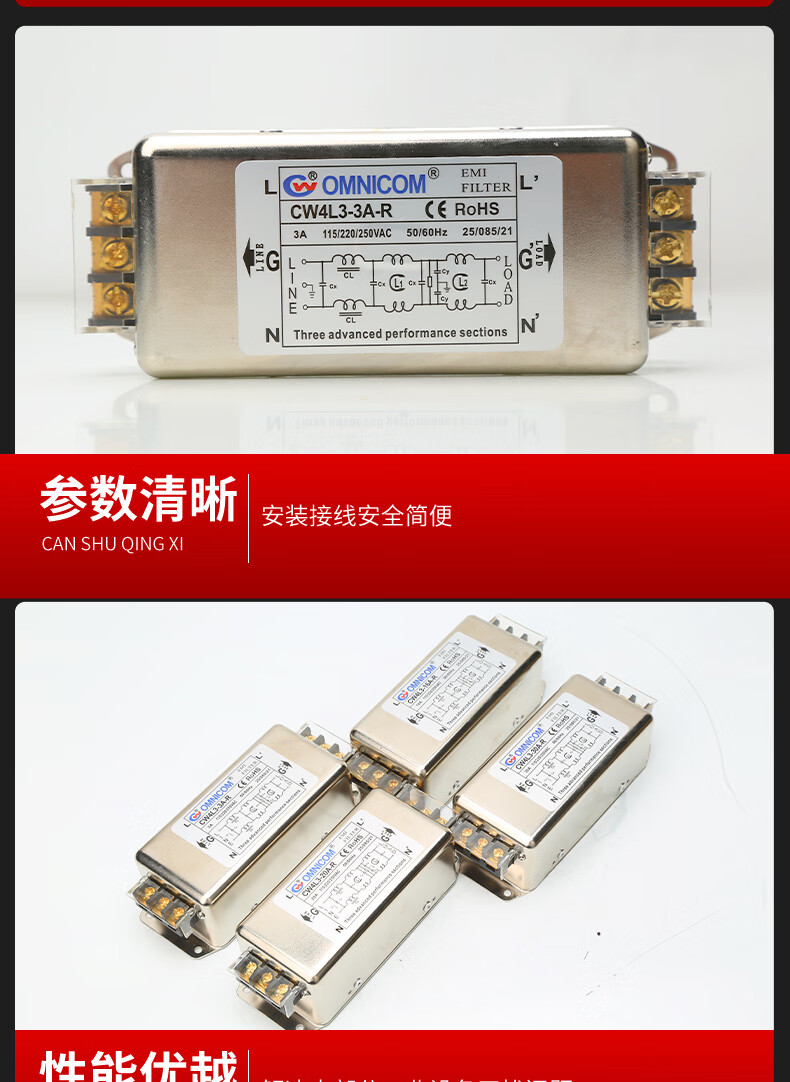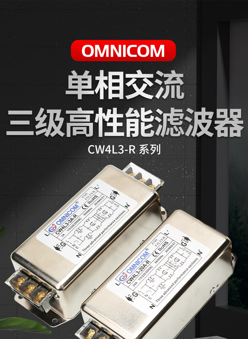 Taiwan omnicom single-phase power filter 220V10A20A30A three-level terminal rail filter CW4L3-20A-R CW4L3-30A-R three-level high performance