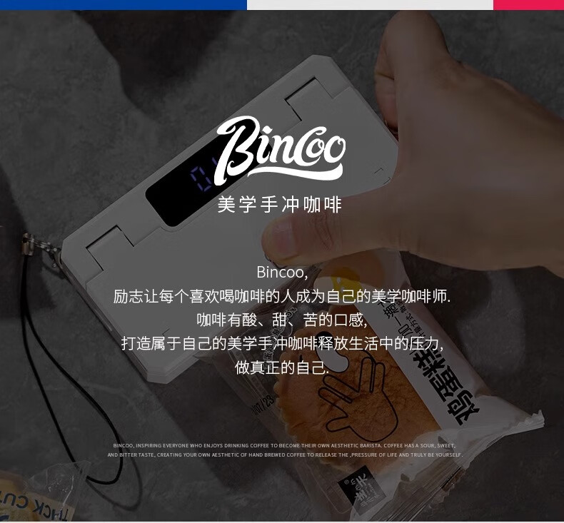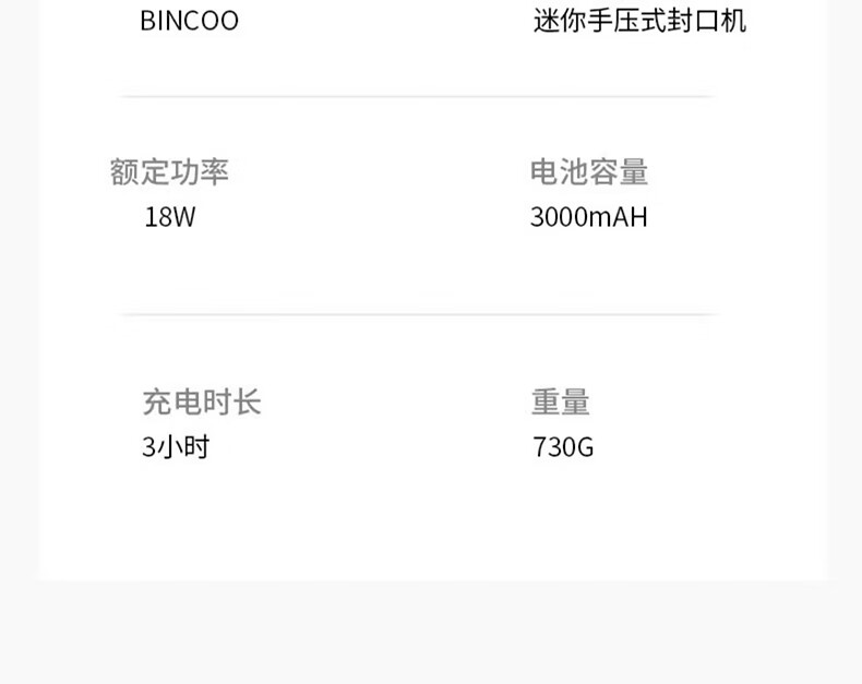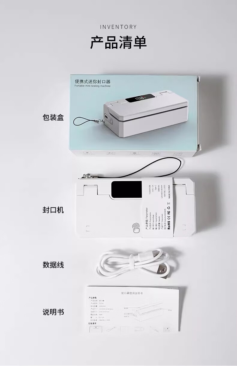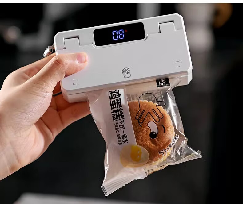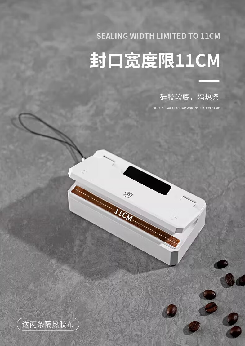 Bincoo ear-hanging coffee sealing machine portable hand pressure sealing artifact snack mini sealing machine plastic bag heat sealing white intelligent digital display 5-speed adjustment
