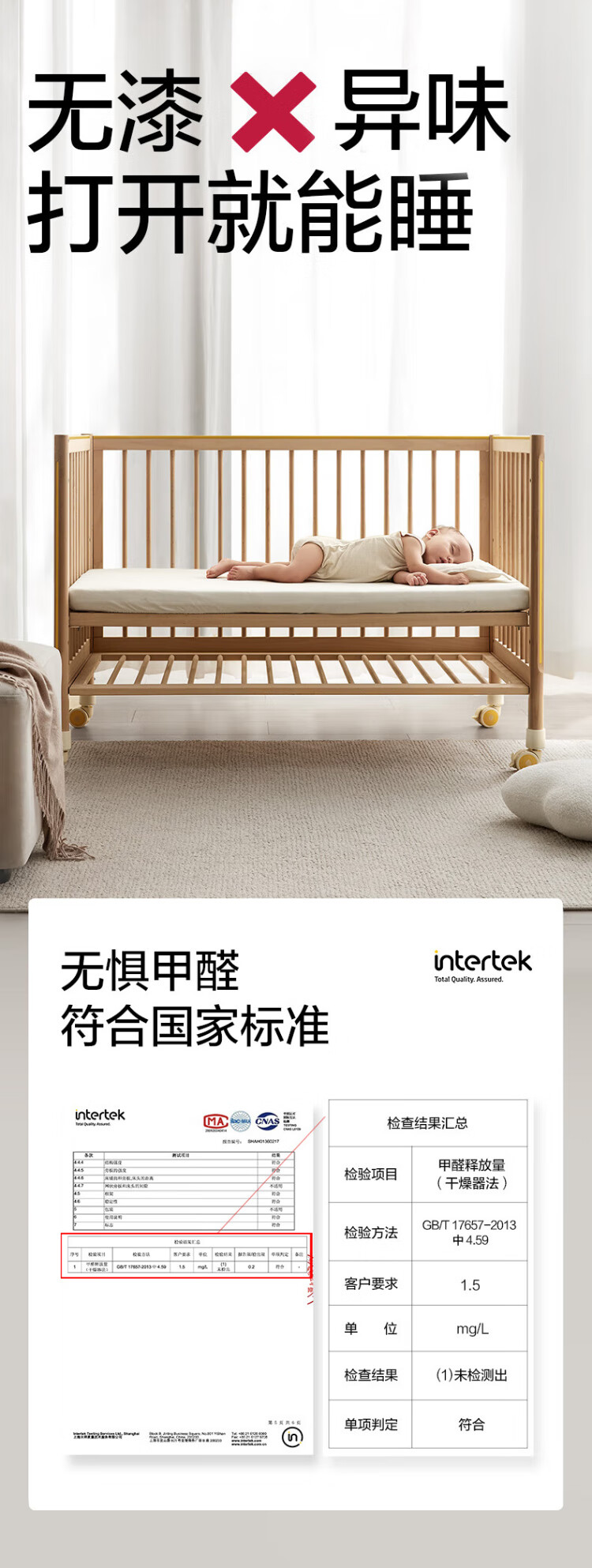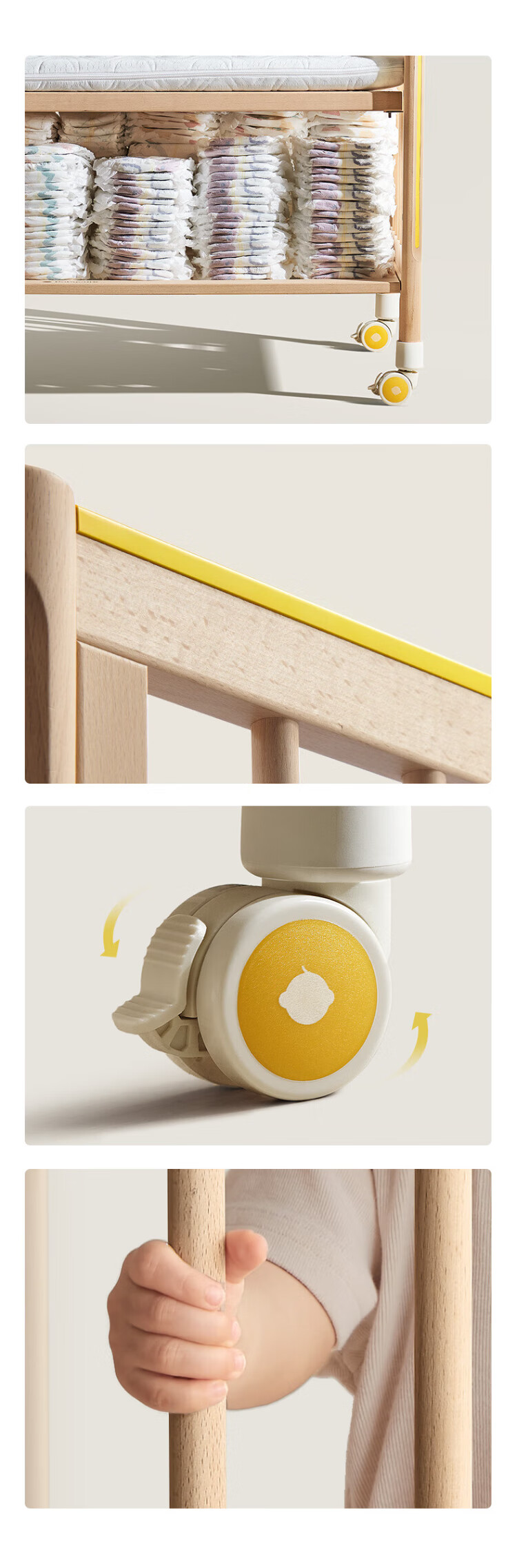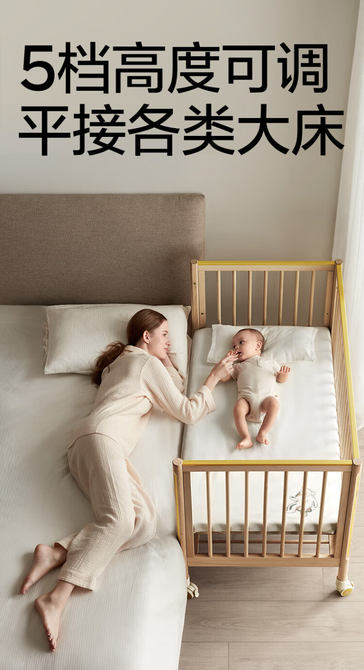 Babycare mobile crib 0-3 years old baby solid wood crib spliced large bed multi-functional crib newborn baby sleep spine protection Mengke Pro+4D air mattress