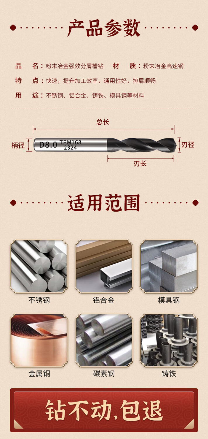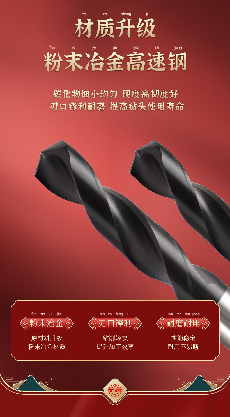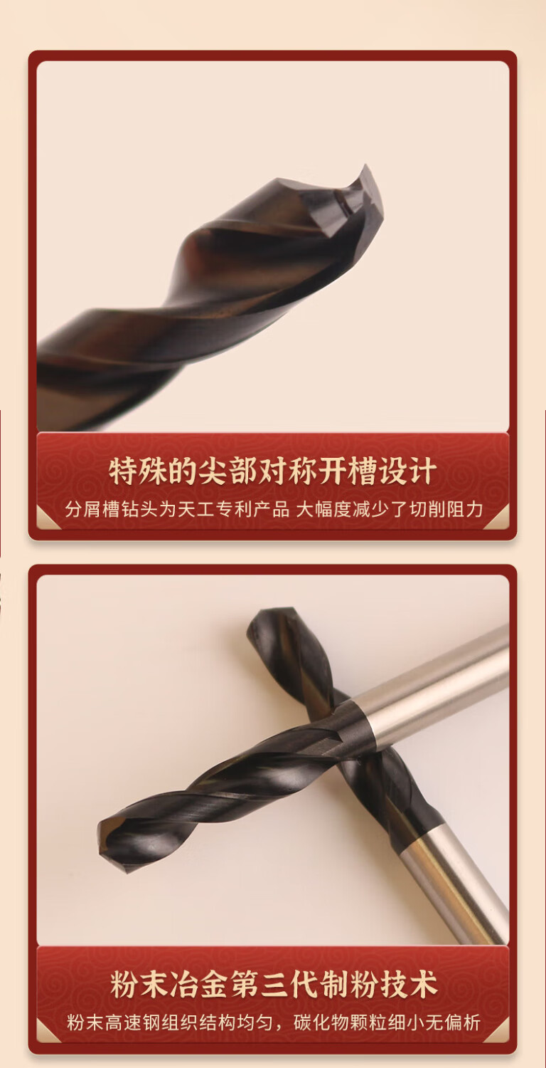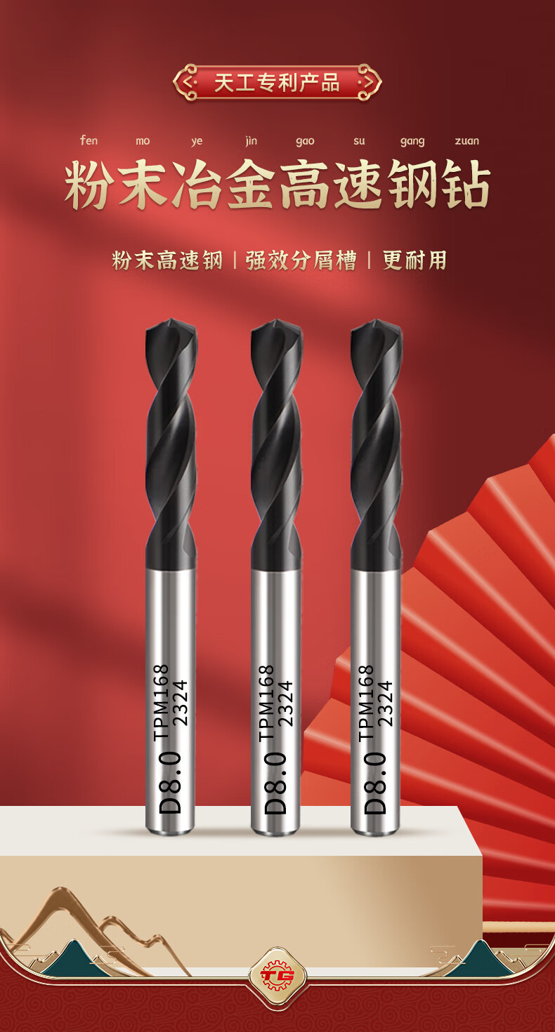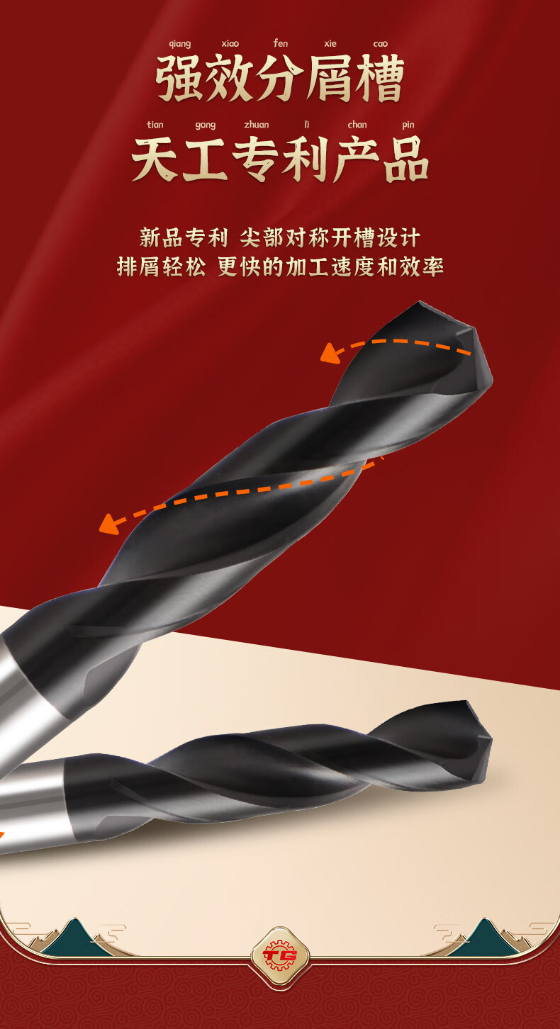 TIANGONG Ost powder metallurgy fixed handle twist drill bit stainless steel special super hard drill twist powder high speed steel drill 10.2MM