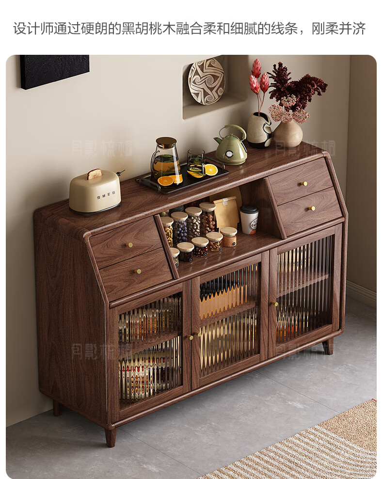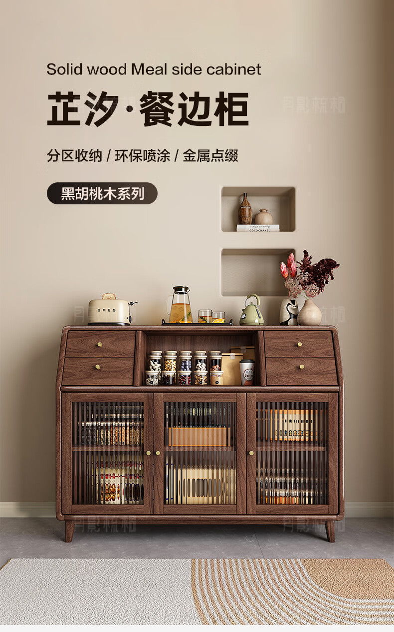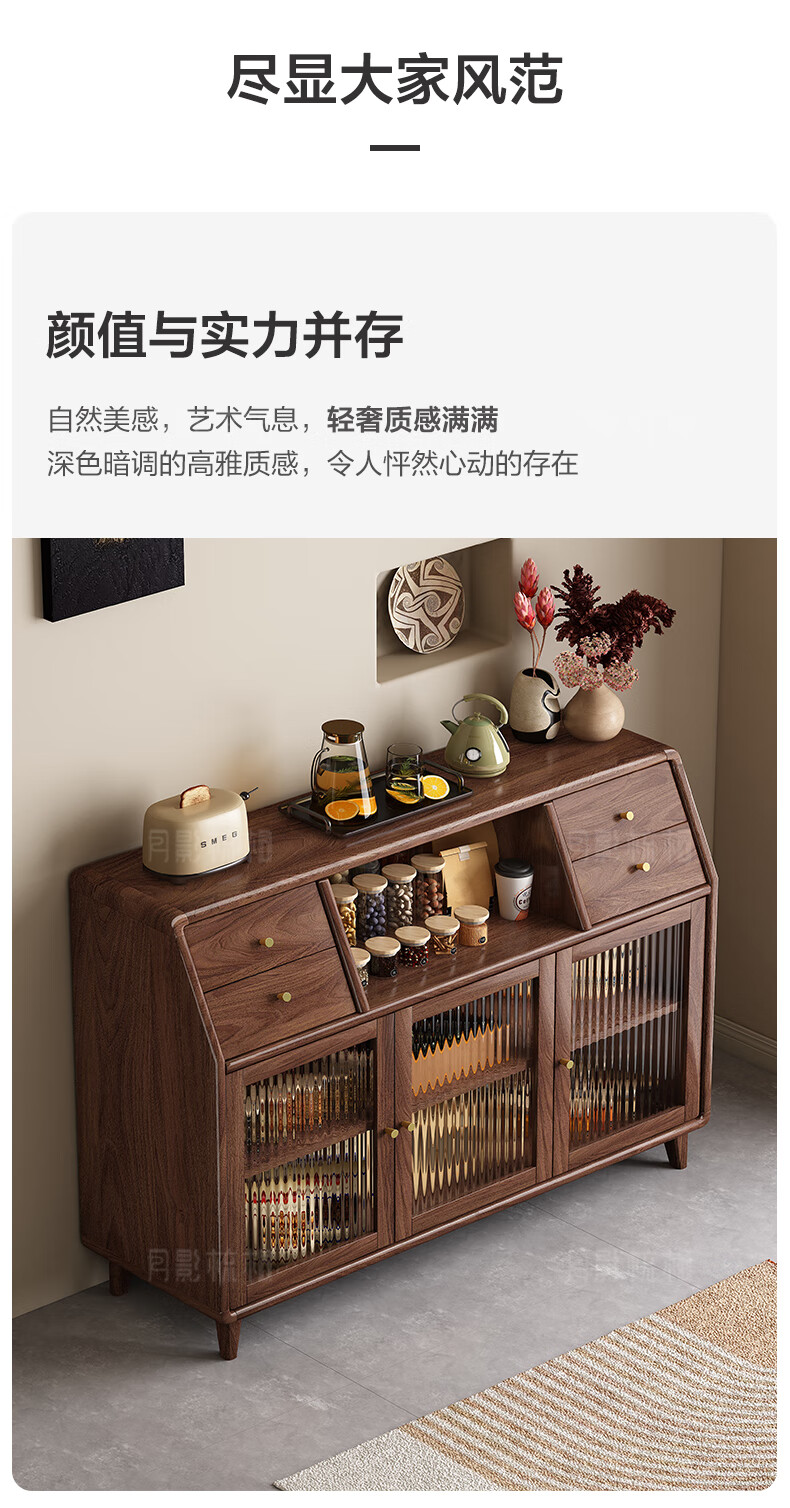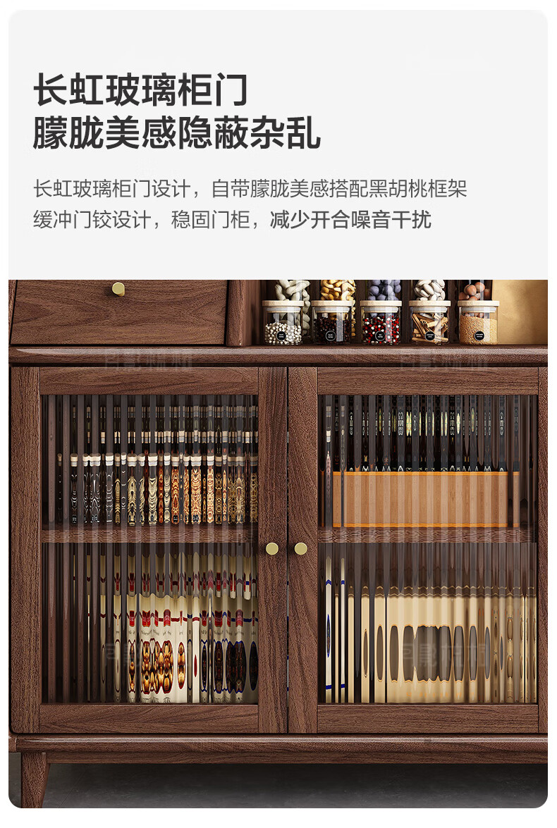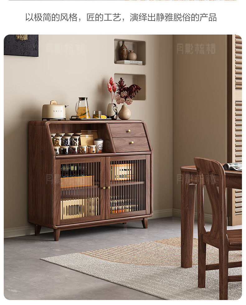 Yueying tung black walnut solid wood sideboard storage cabinet Nordic simple glass door storage cabinet wall-mounted home wine cabinet drawer cabinet black walnut two-door sideboard