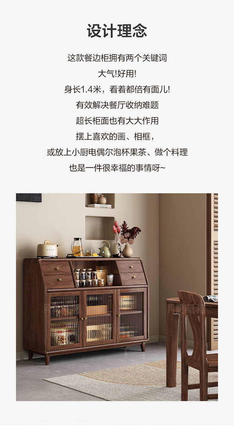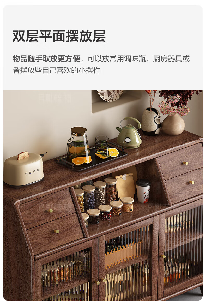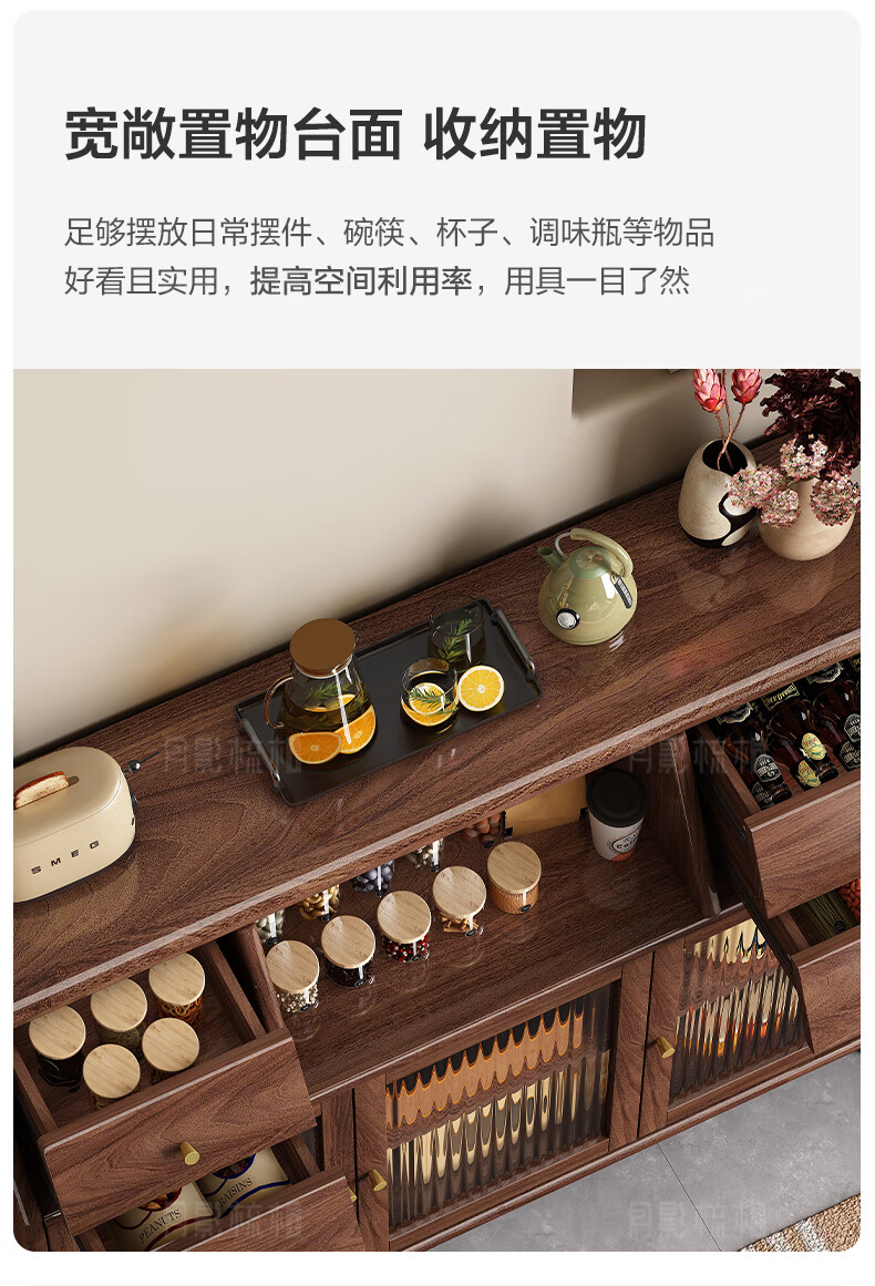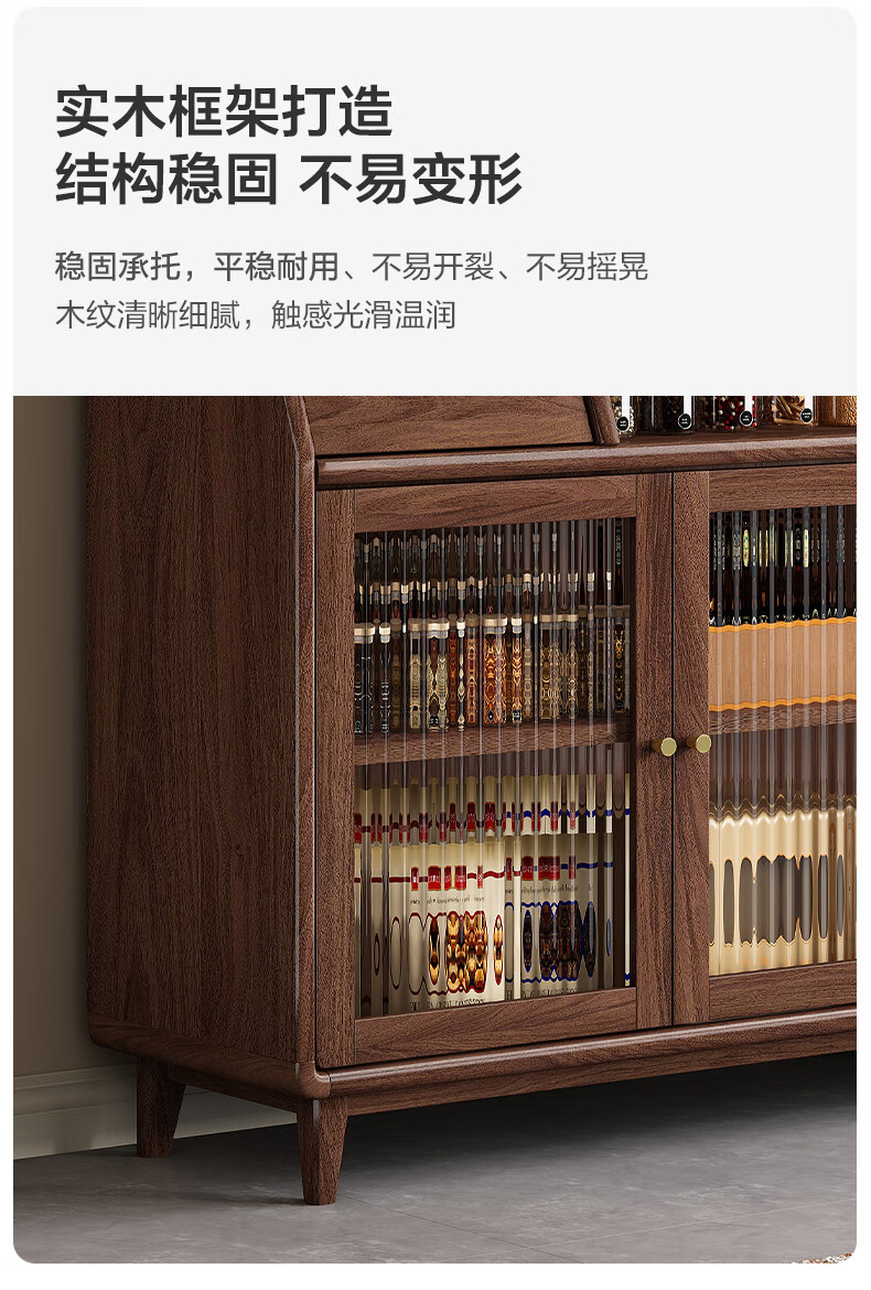 Yueying tung black walnut solid wood sideboard storage cabinet Nordic simple glass door storage cabinet wall-mounted home wine cabinet drawer cabinet black walnut two-door sideboard