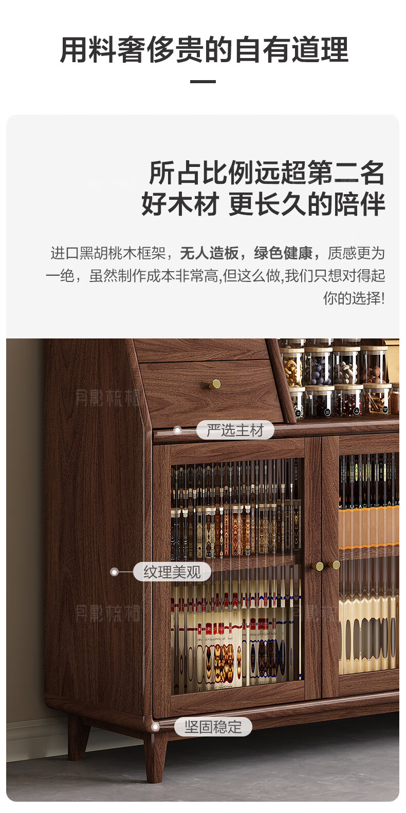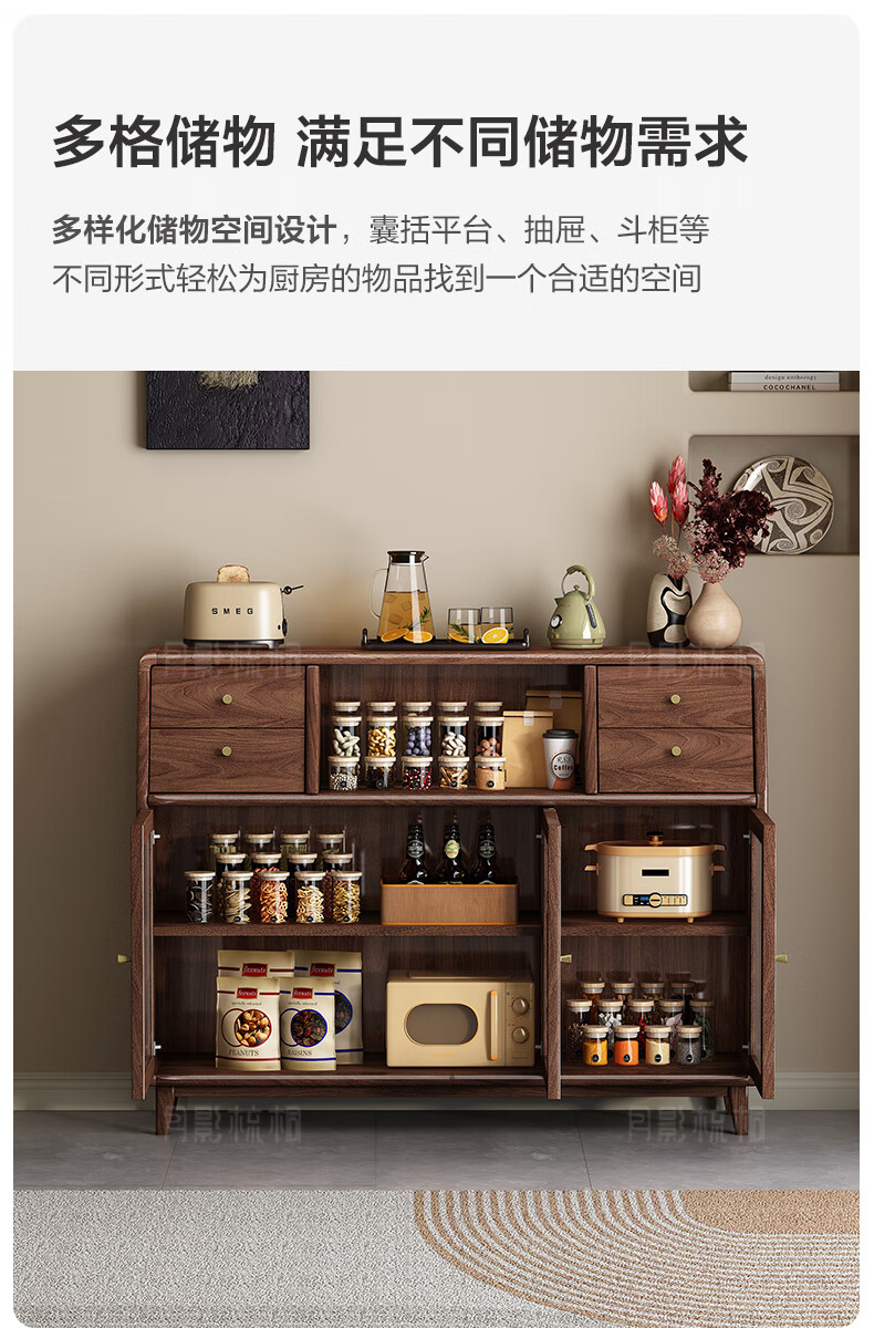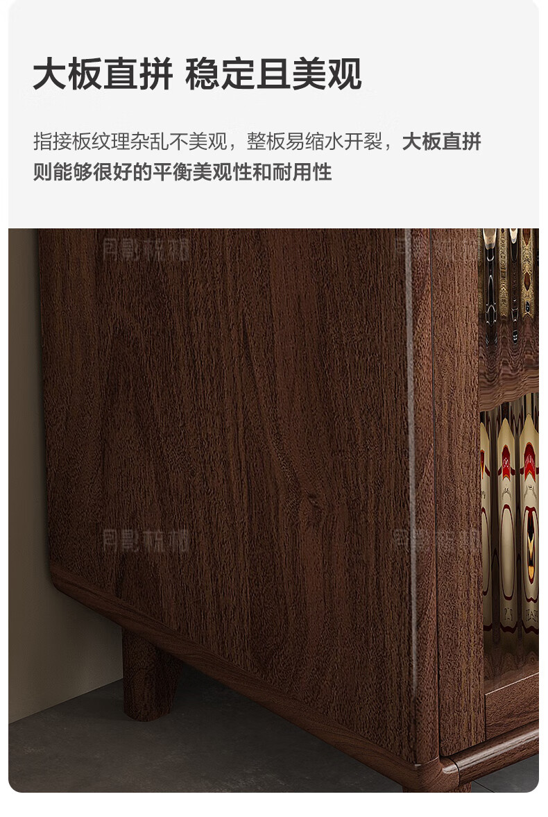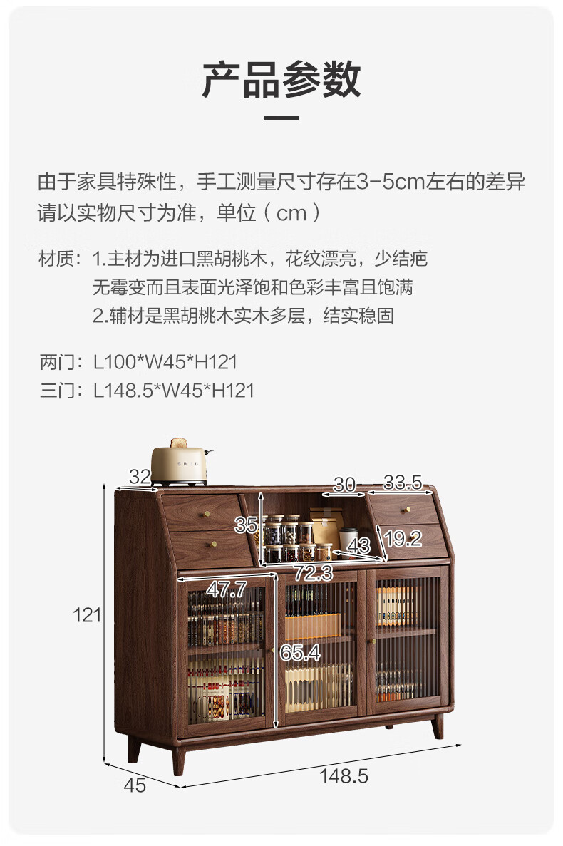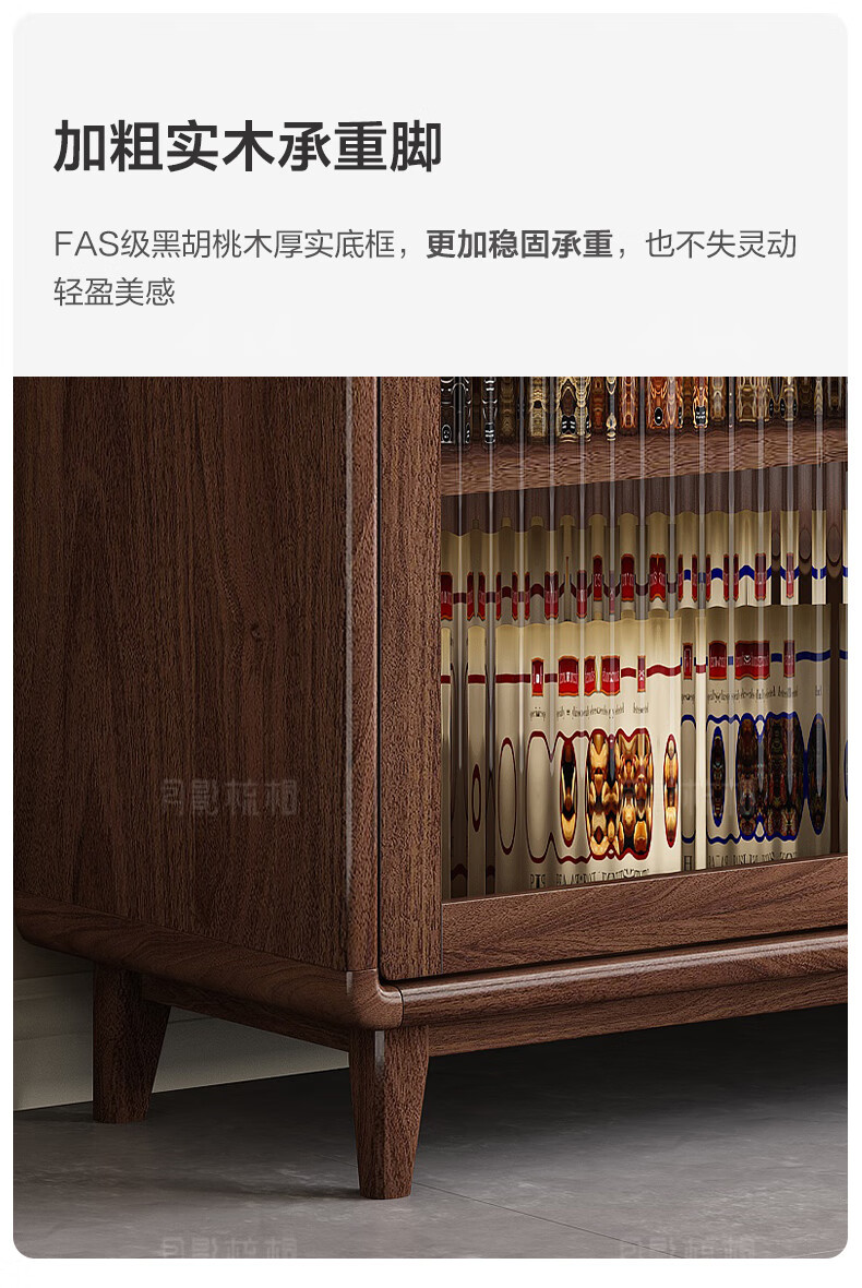 Yueying tung black walnut solid wood sideboard storage cabinet Nordic simple glass door storage cabinet wall-mounted home wine cabinet drawer cabinet black walnut two-door sideboard