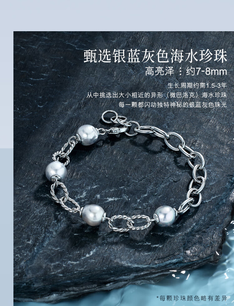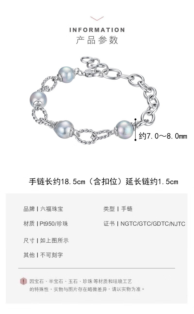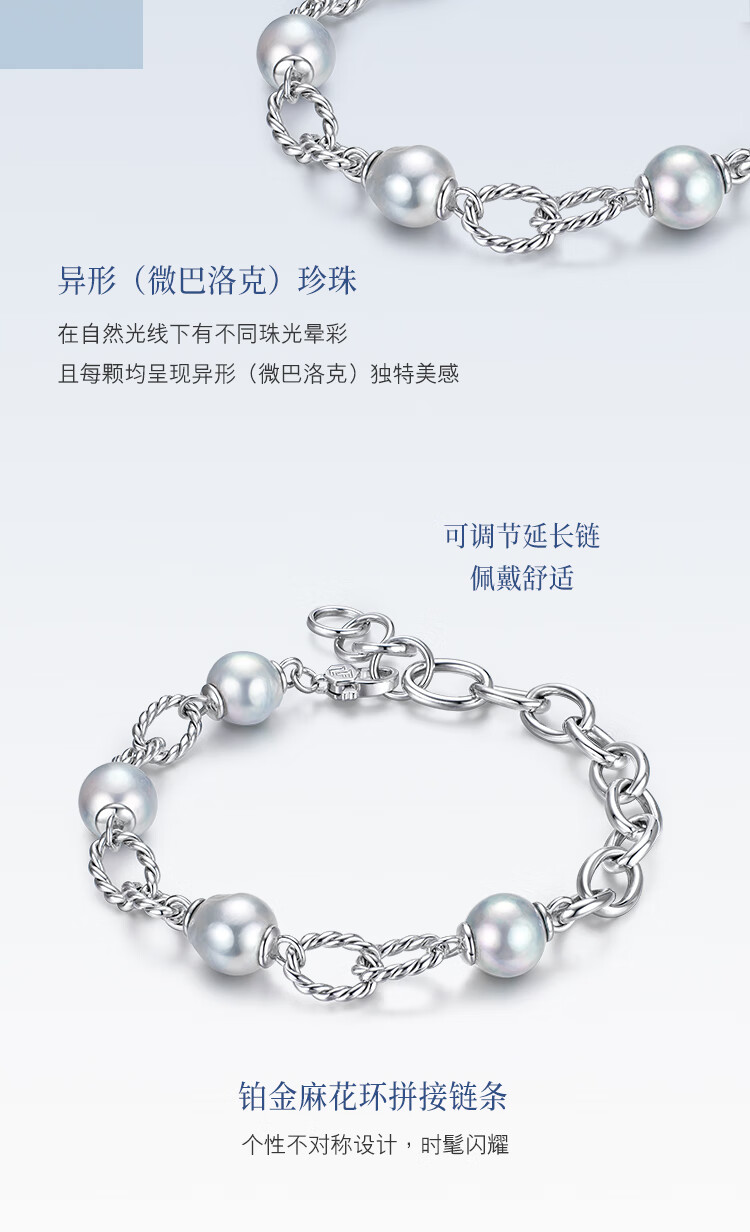 Lukfook Jewelry True Me Series Platinum 950 Seawater Pearl Platinum Bracelet as Gift GJT1TBB0004 Total Weight 10.91 Grams