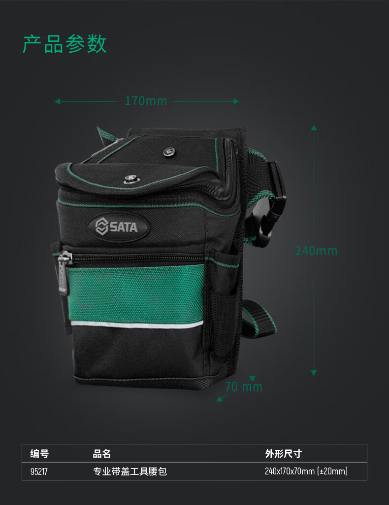 SATA Professional Tool Belt Bag with Cover 600D Oxford Cloth Waterproof and Anti-Scratch Tool Bag 95217 Professional Tool Belt Bag with Cover