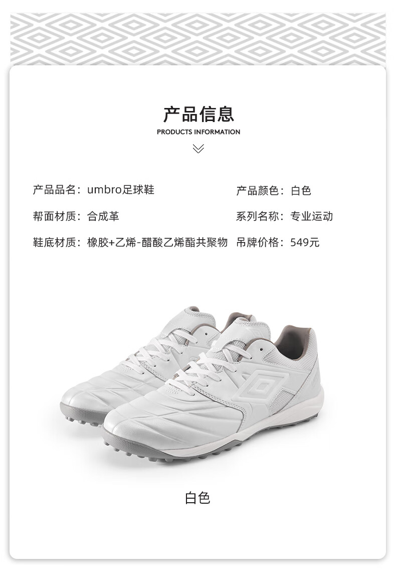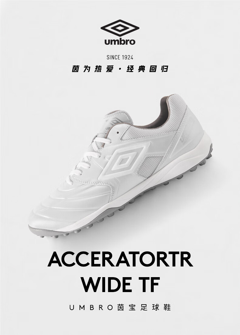 Umbro ACCERATORTR WIDE TF football shoes new control type flying disc spike training shoes white 42.5