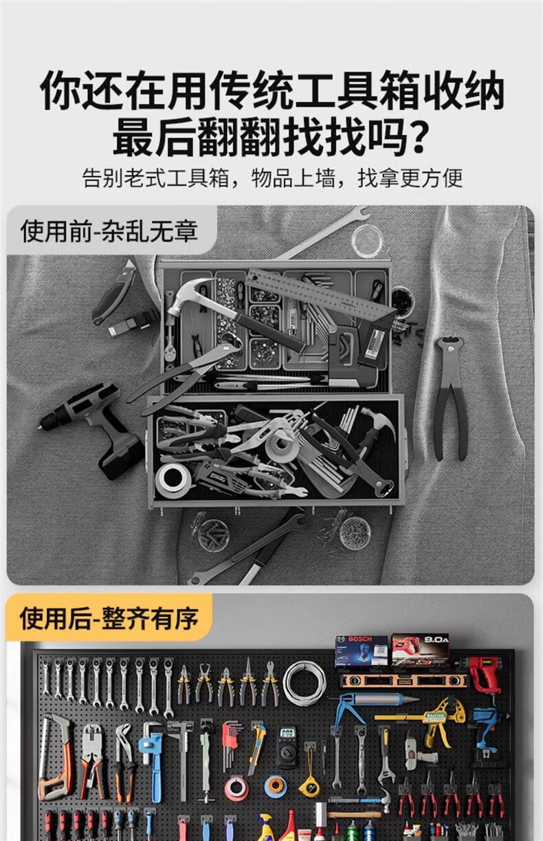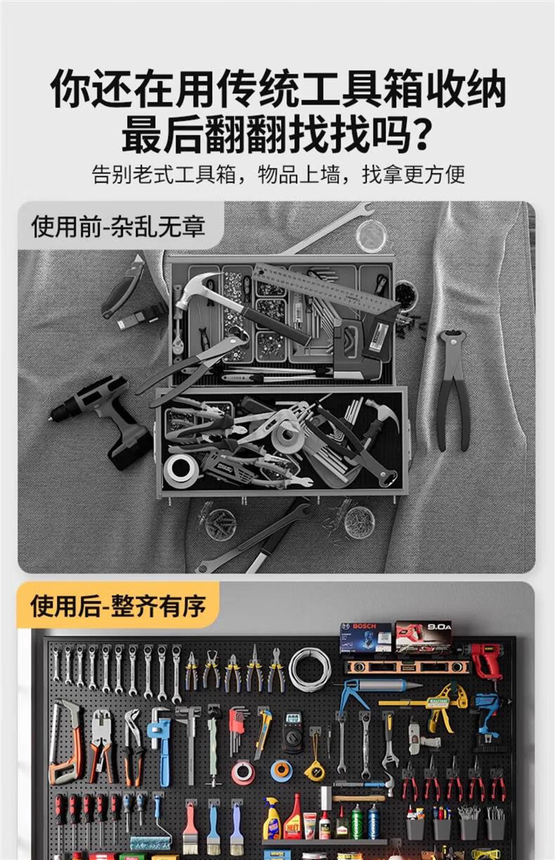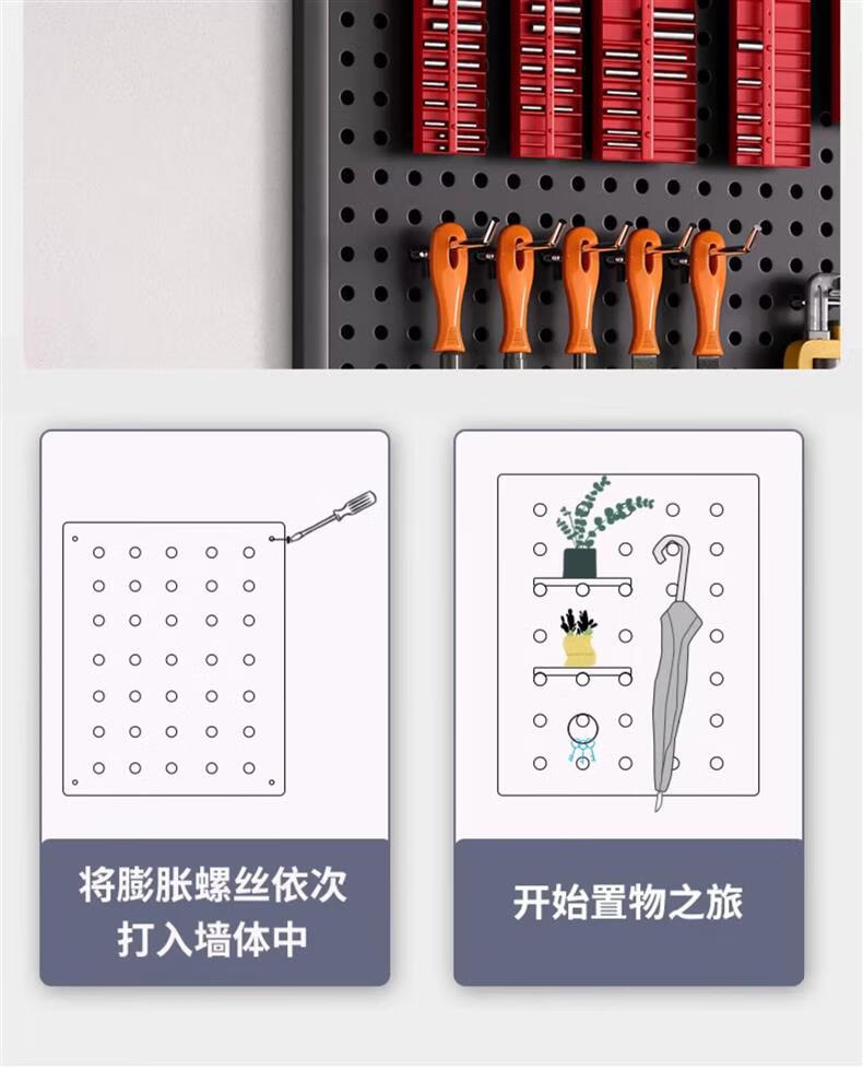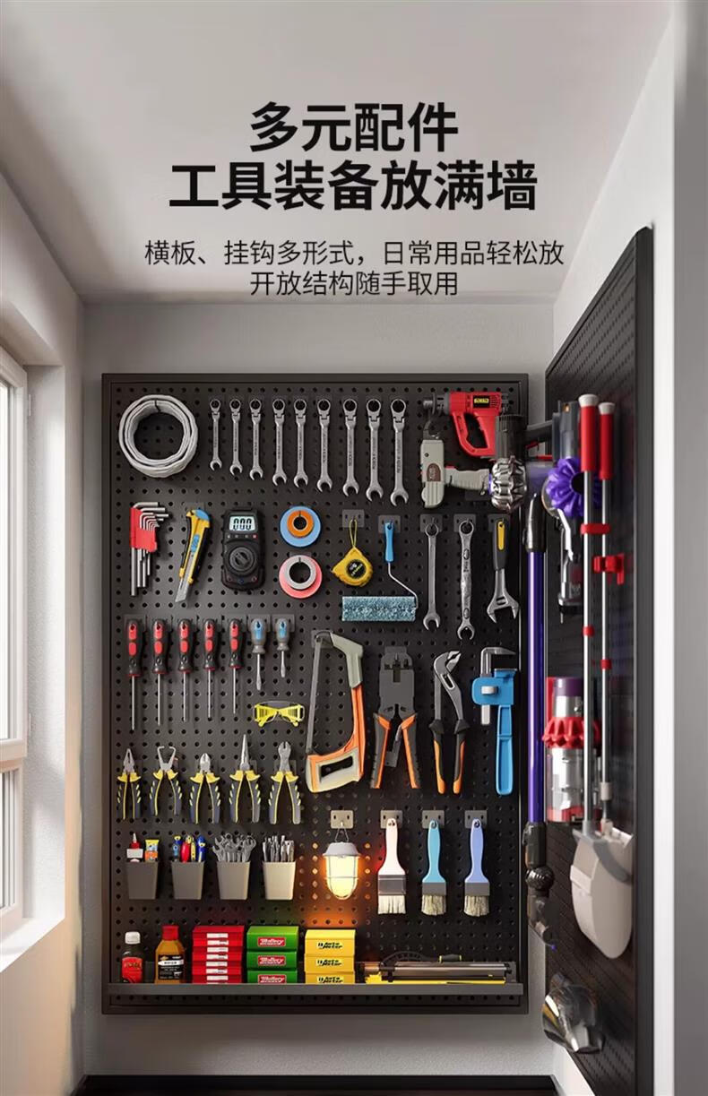 Lin's boy tools wall hole board hanging board storage shelf wall storage rack punching board hardware stainless steel organizing rack 100*100*0cm black with frame and thickened version
