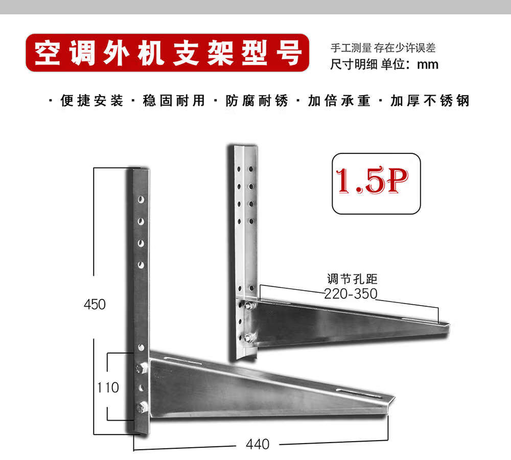 Huili stainless steel air conditioner outdoor unit bracket Midea Haier thickened rack large 1.5 HP 2P3P air conditioner rack 2p air conditioner bracket 10x100 expansion screws 4 free