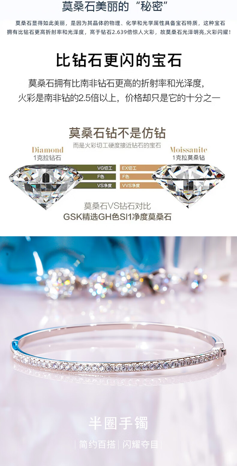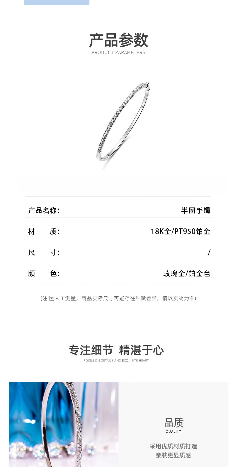 Junpo platinum bracelet PT950 moissanite women's half-circle micro-set single diamond simple and versatile fashion 18K gold elegant bracelet platinum gold
