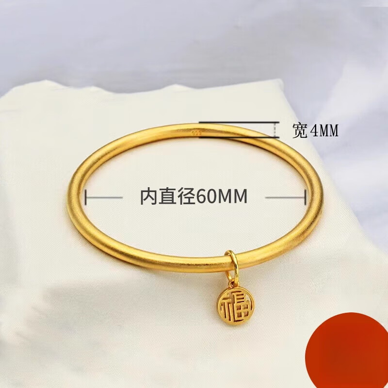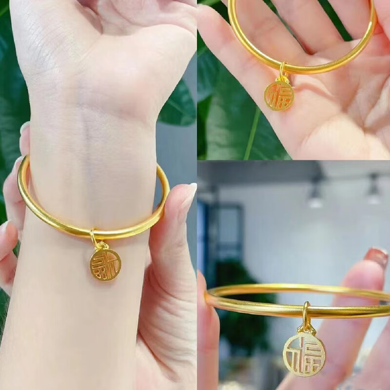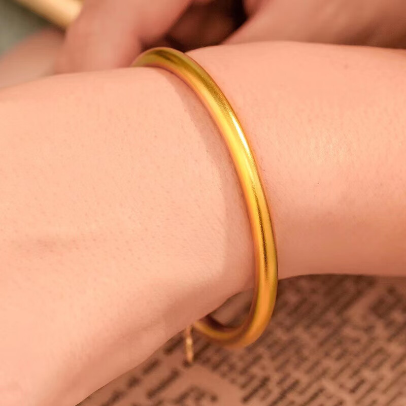 Xingtang 5D hard gold sand gold ancient method element circle blessing brand bracelet 3mm heritage thin bracelet solid gold imitation gold Valentine's Day gift blessing bracelet 4mm thick - circle diameter 58# suitable for 1