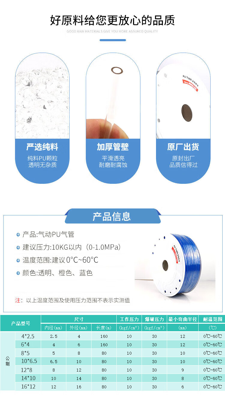 HKLY16 PU air pipe pneumatic air compressor hose air pump air duct 12*8 (80 meter roll) transparent whole roll 10*6.5 (80 meter roll)