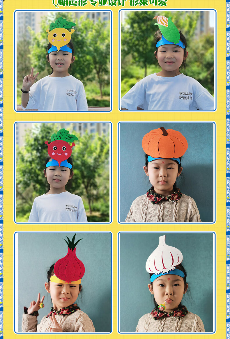 Children's headwear vegetable props kindergarten performance story stage textbook drama pumpkin headgear cabbage hat eggplant pumpkin - non-woven headwear 1 piece