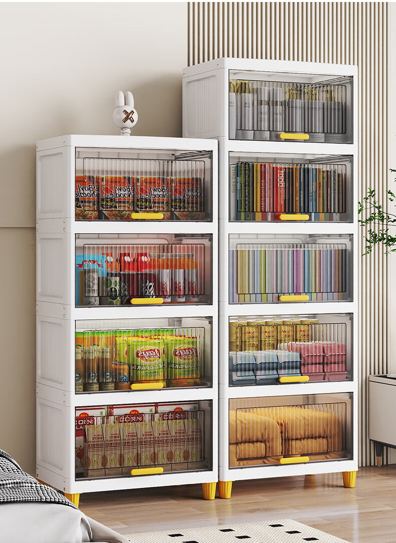 JD Logistics Cracked storage rack multi-layer floor-to-ceiling kitchen household storage cabinet ultra-narrow bathroom side cabinet 25CM wide gray transparent color three layers
