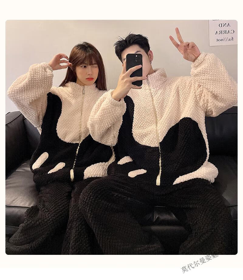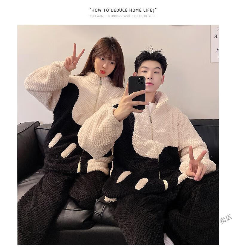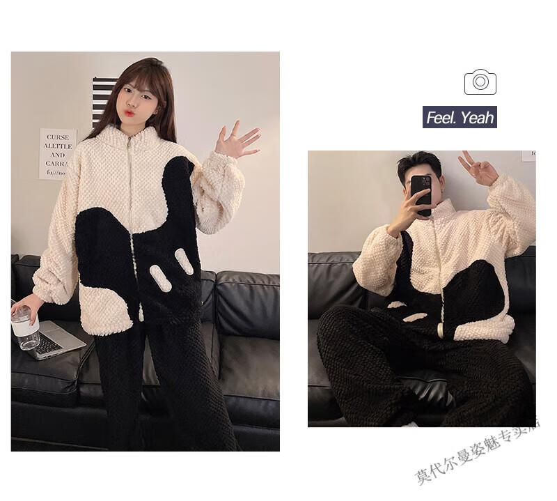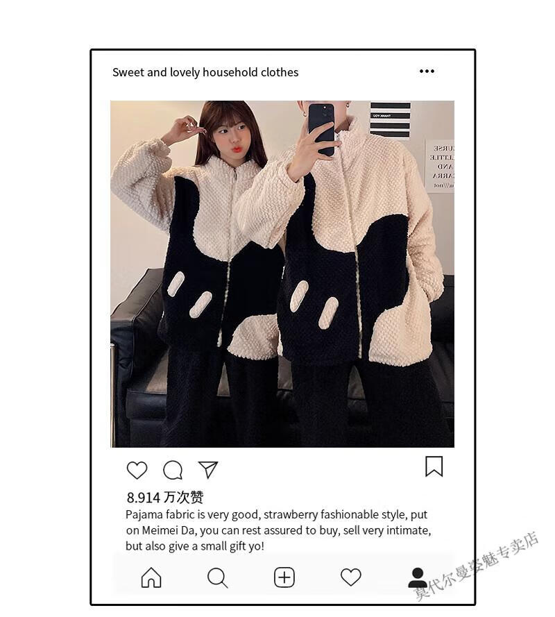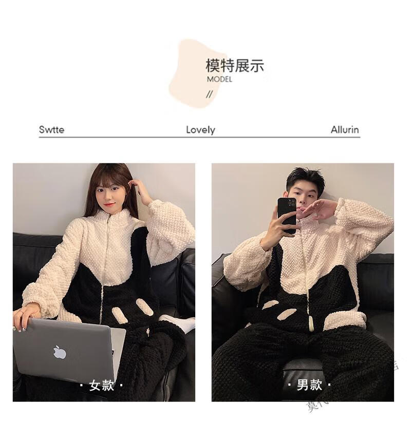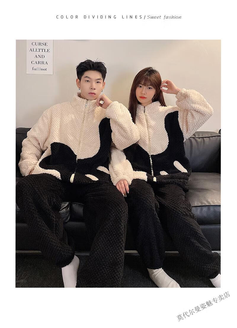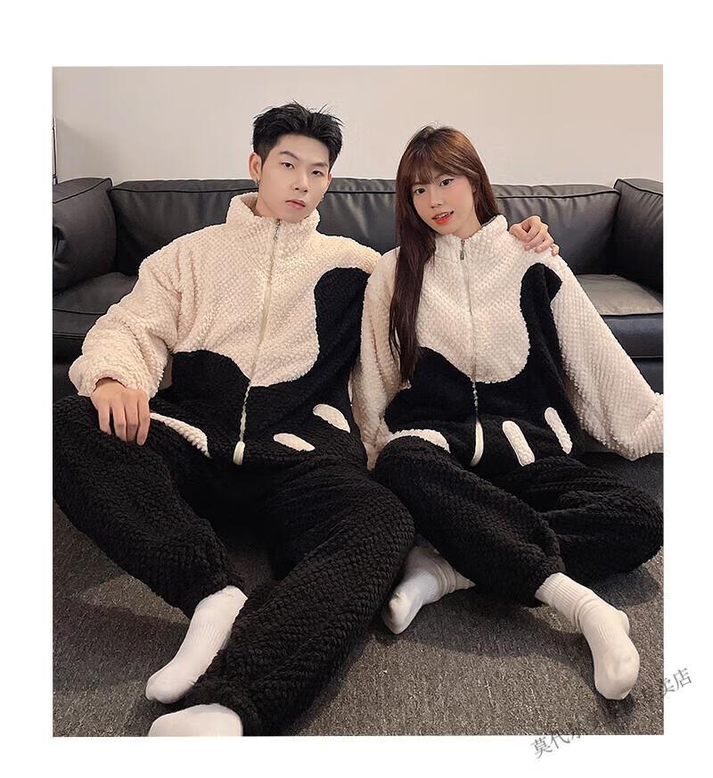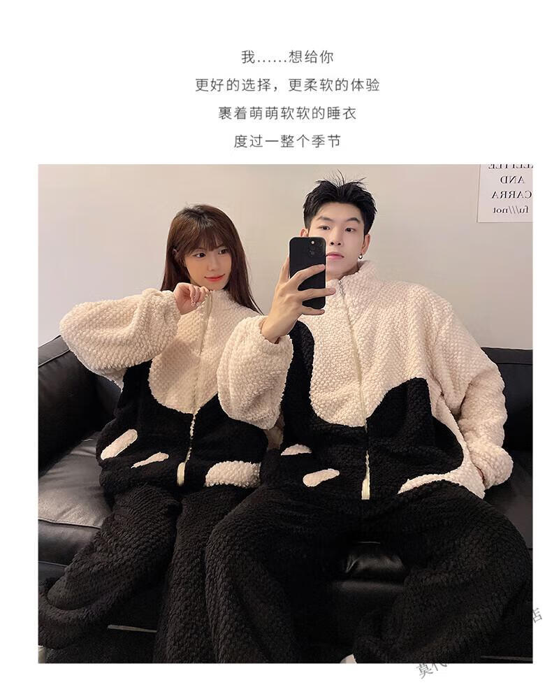 Modal couple pajamas winter coral velvet women's thickened large size flannel men's autumn and winter home clothes warm suit MJF-8959 female M