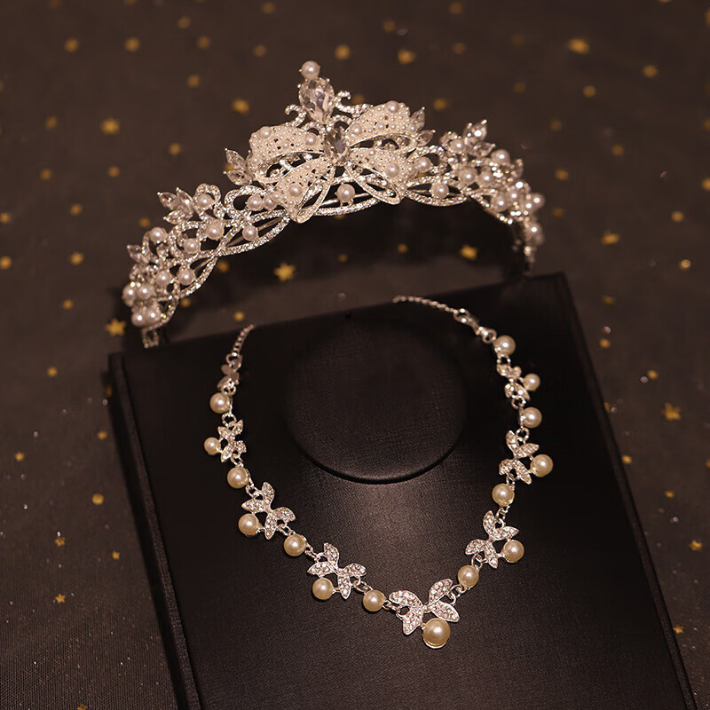 Shijun (SHIJUN) crown tiara 18-year-old adult gift birthday stylish stylish female headband temperament bride main wedding dress crown crown + imitation pearl ear clip earrings
