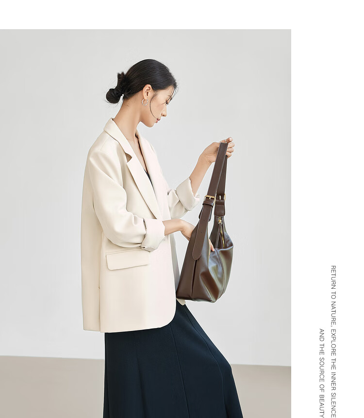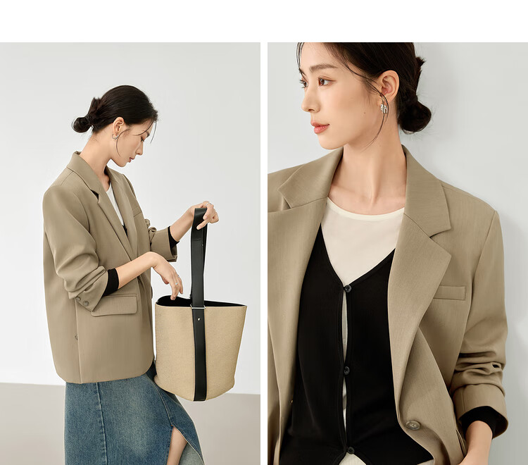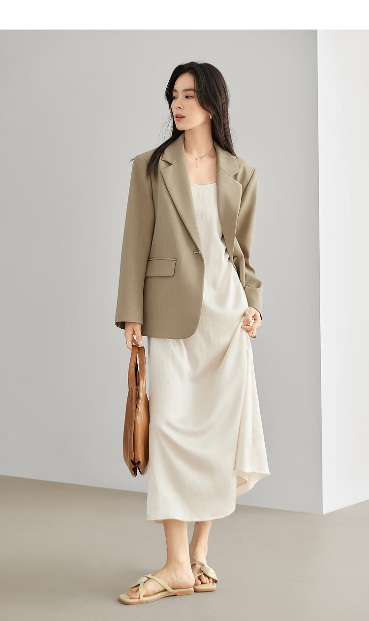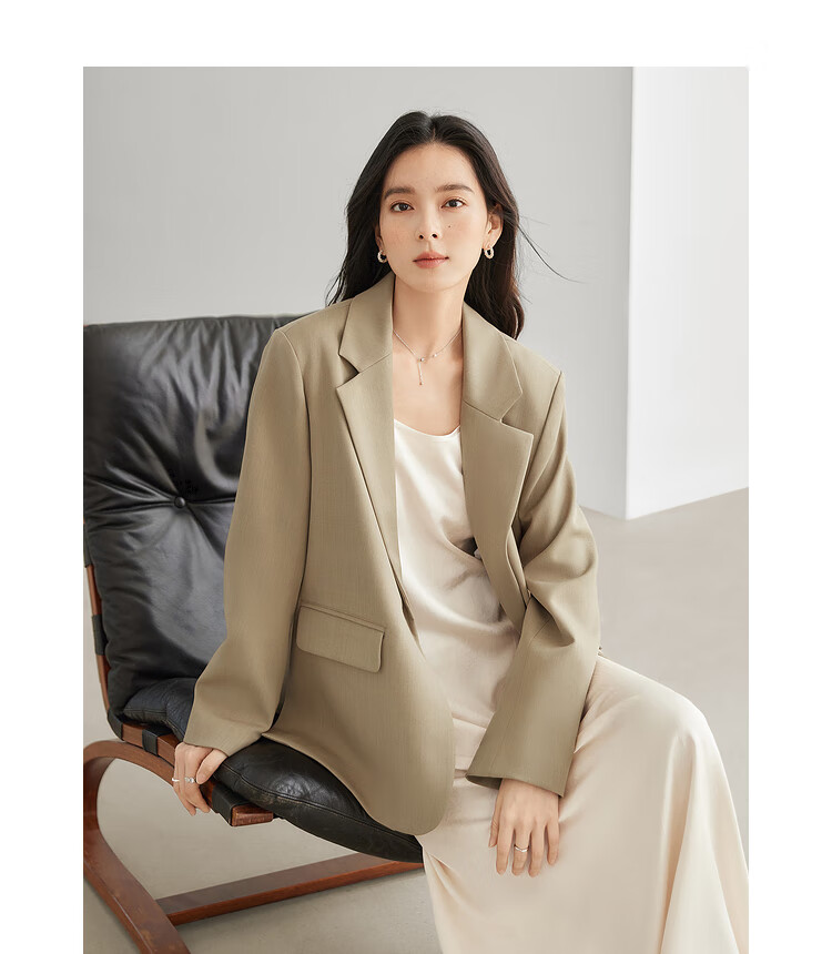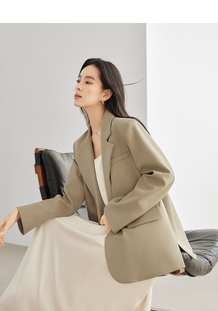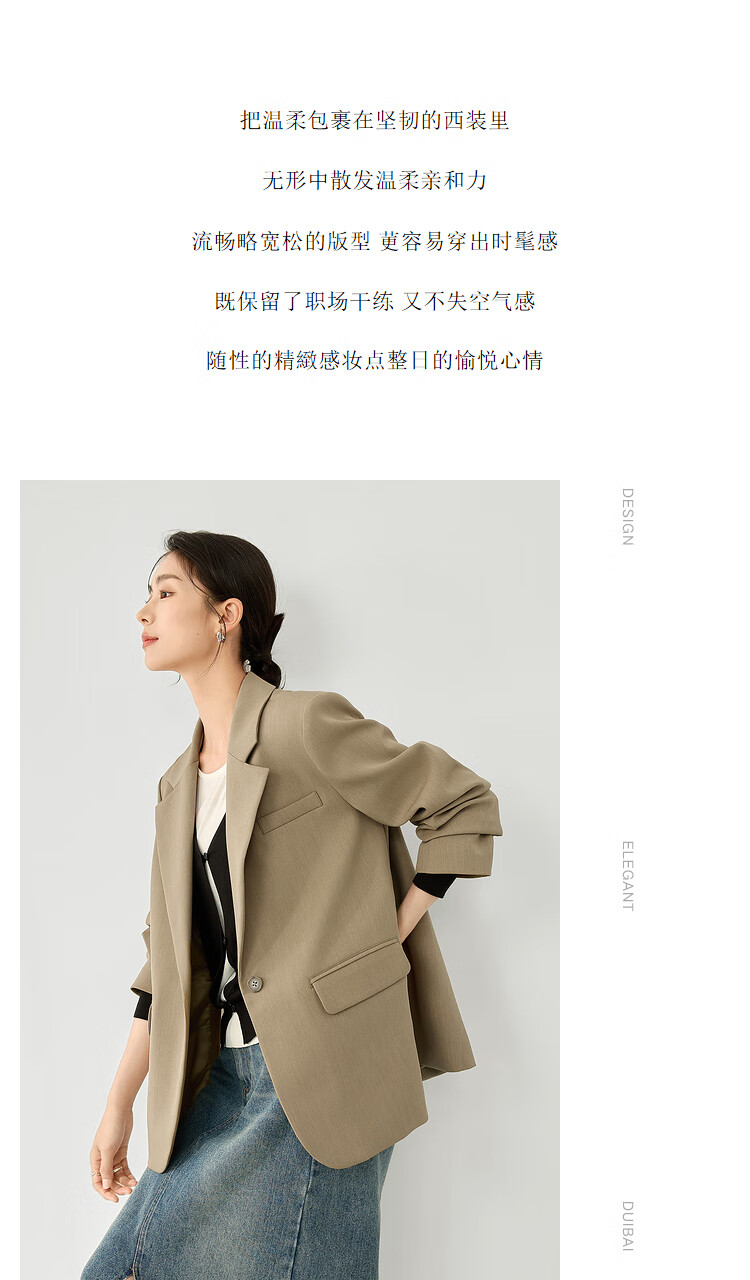 Dialogue (DUIBAI) French high-end commuter suit jacket for women 2026 spring new style small temperament casual small suit Khaki S