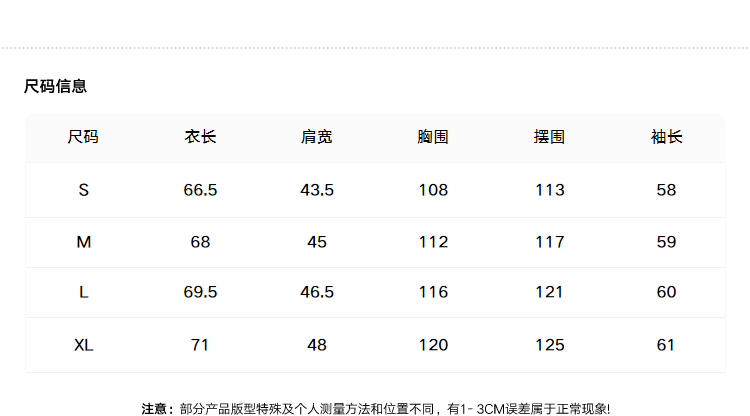 Size (cm) 42 44 46 48 50