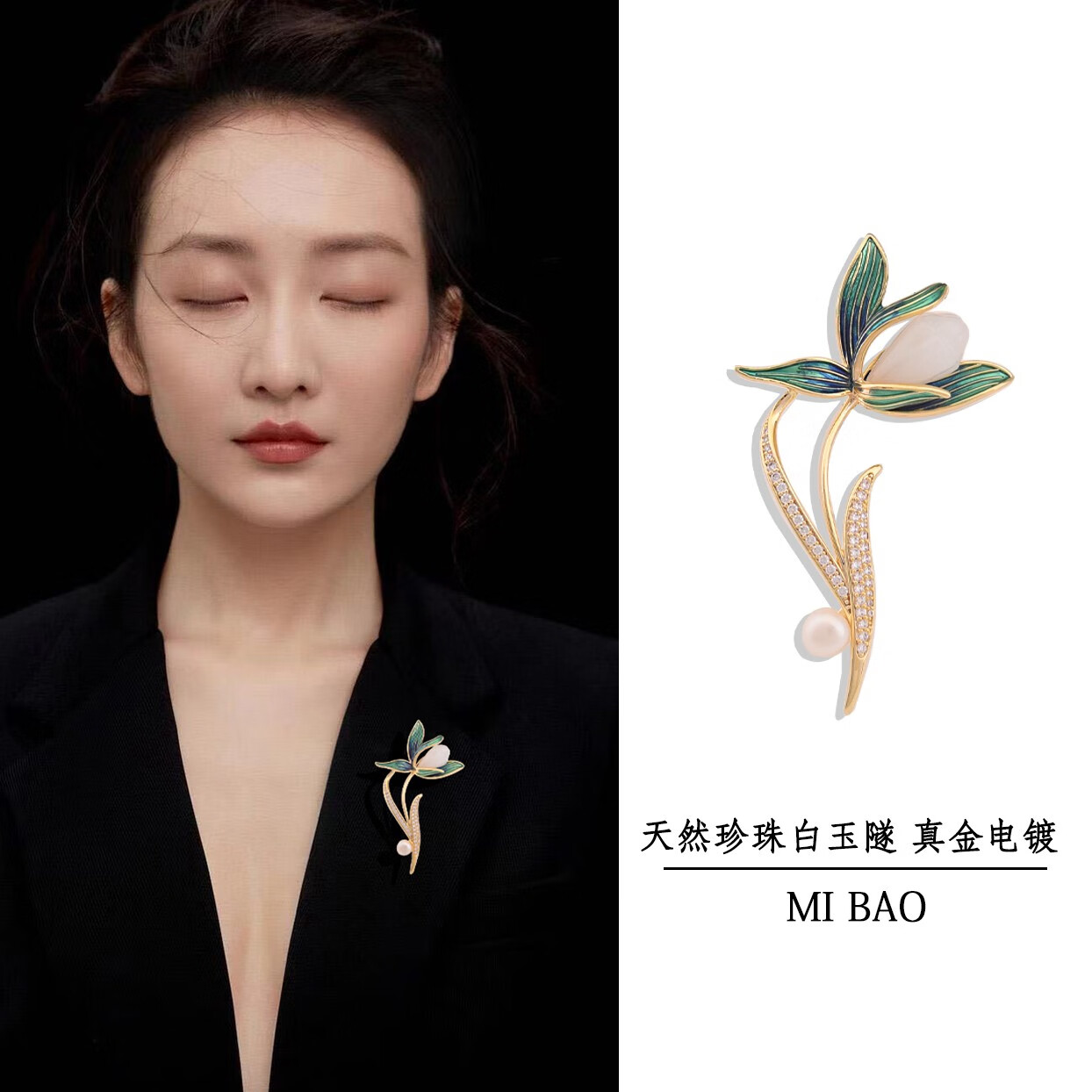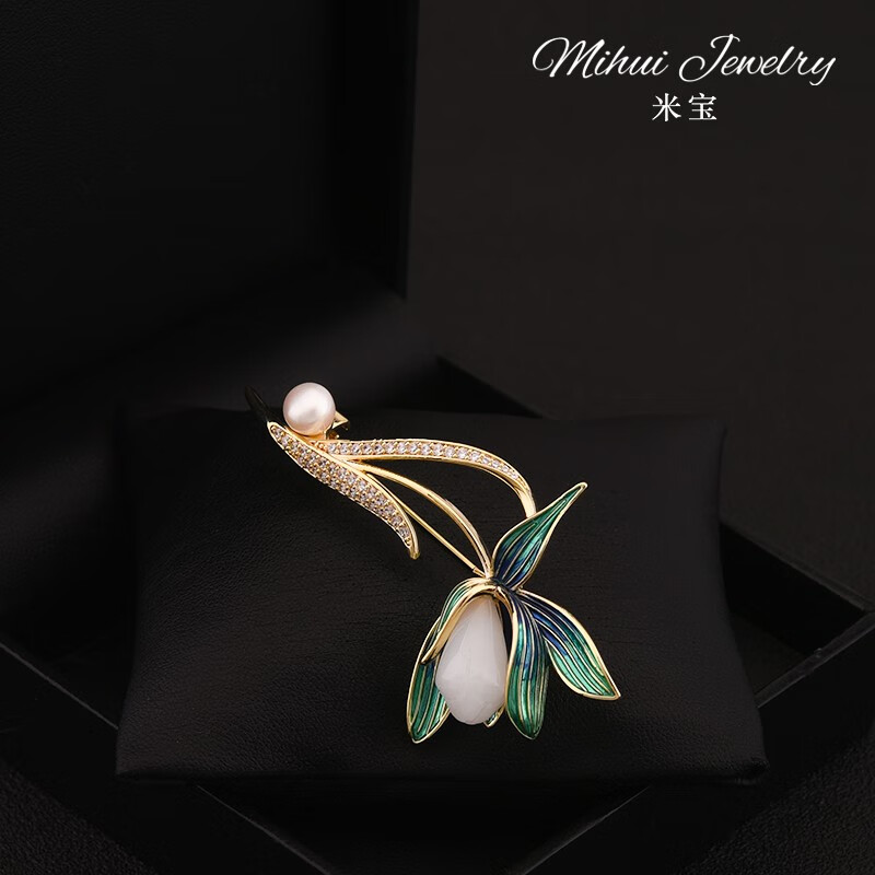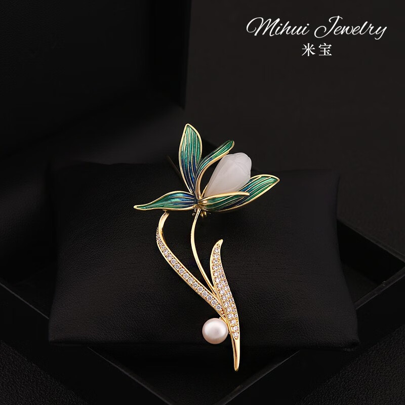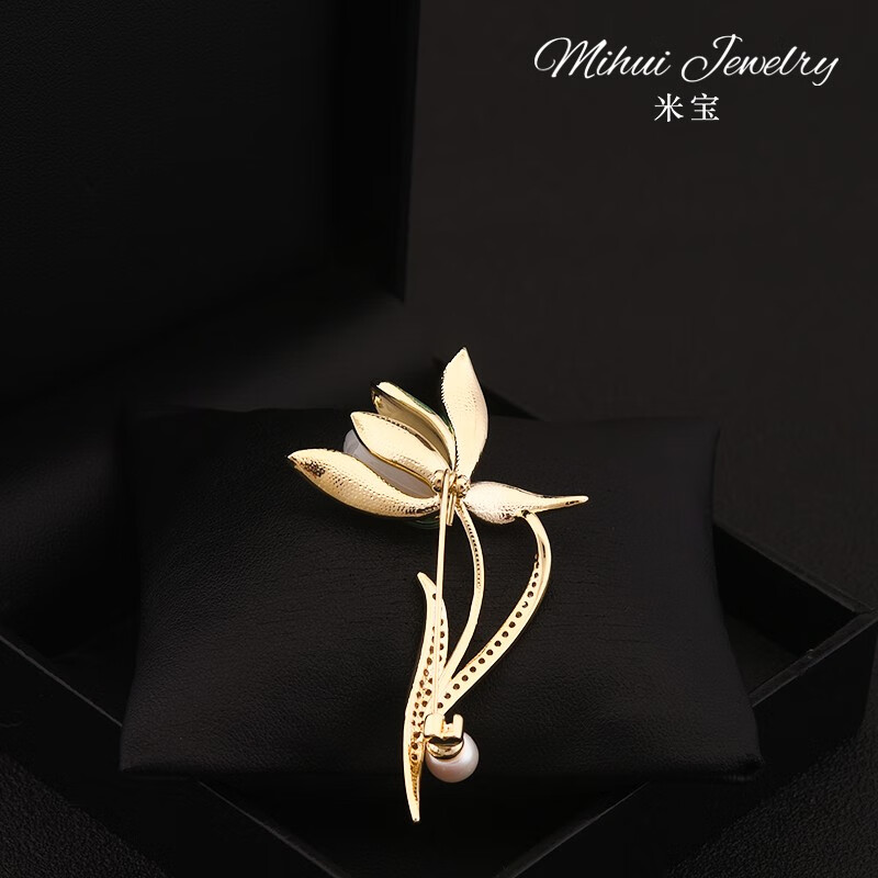QUAMER gold store elegant classical white magnolia brooch high-end women's luxury natural pearl accessories clothes flag gold