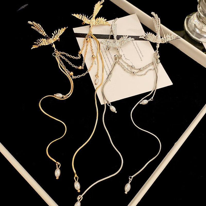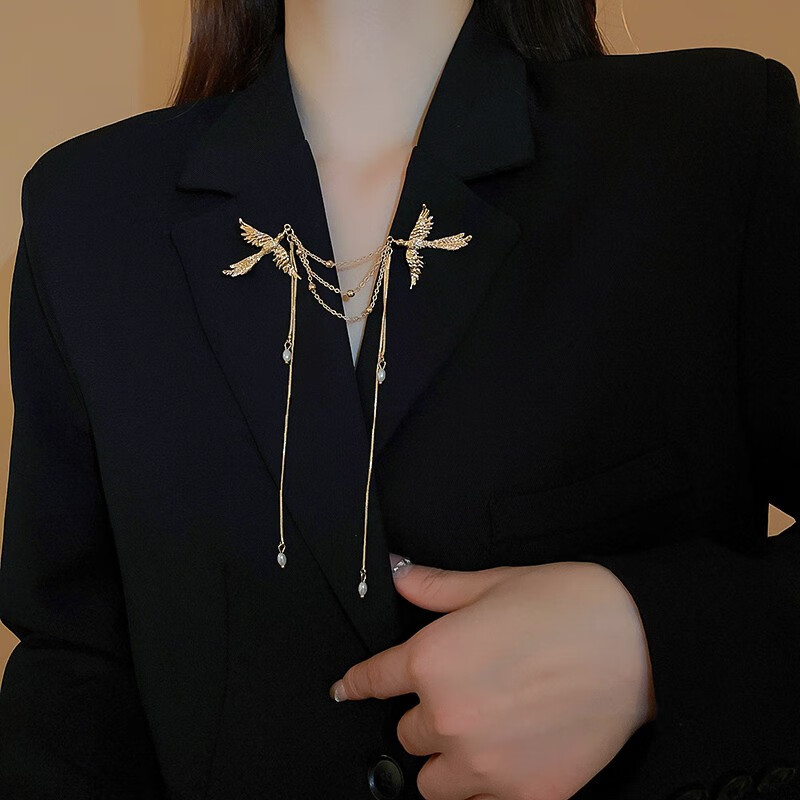 QUAMER Gold Store New Chinese Style Phoenix Pearl Tassel Brooch High-End Exquisite Fashion 2024 New Gold
