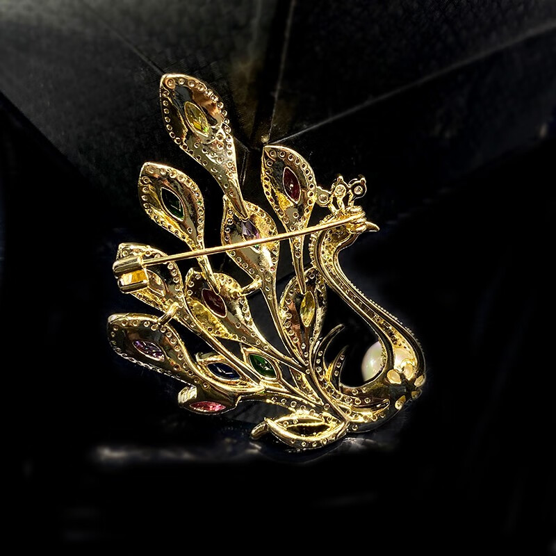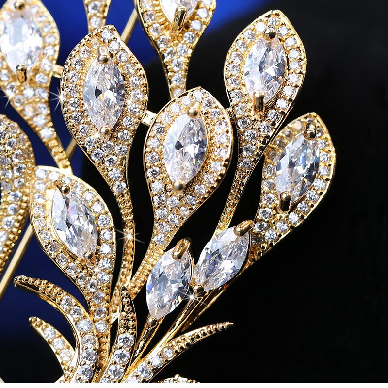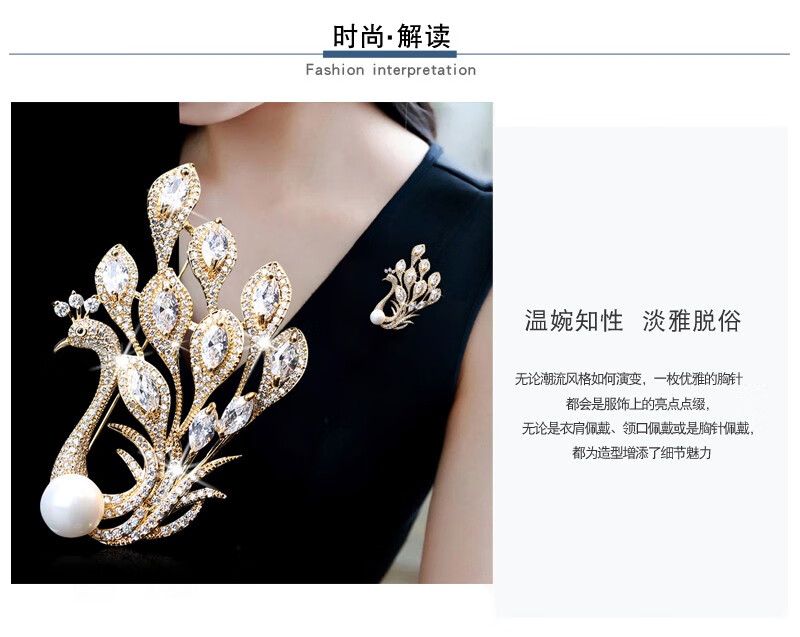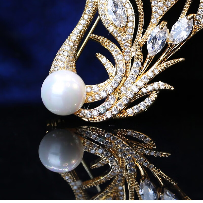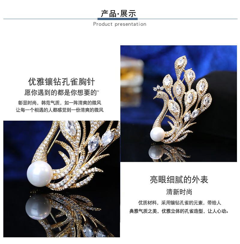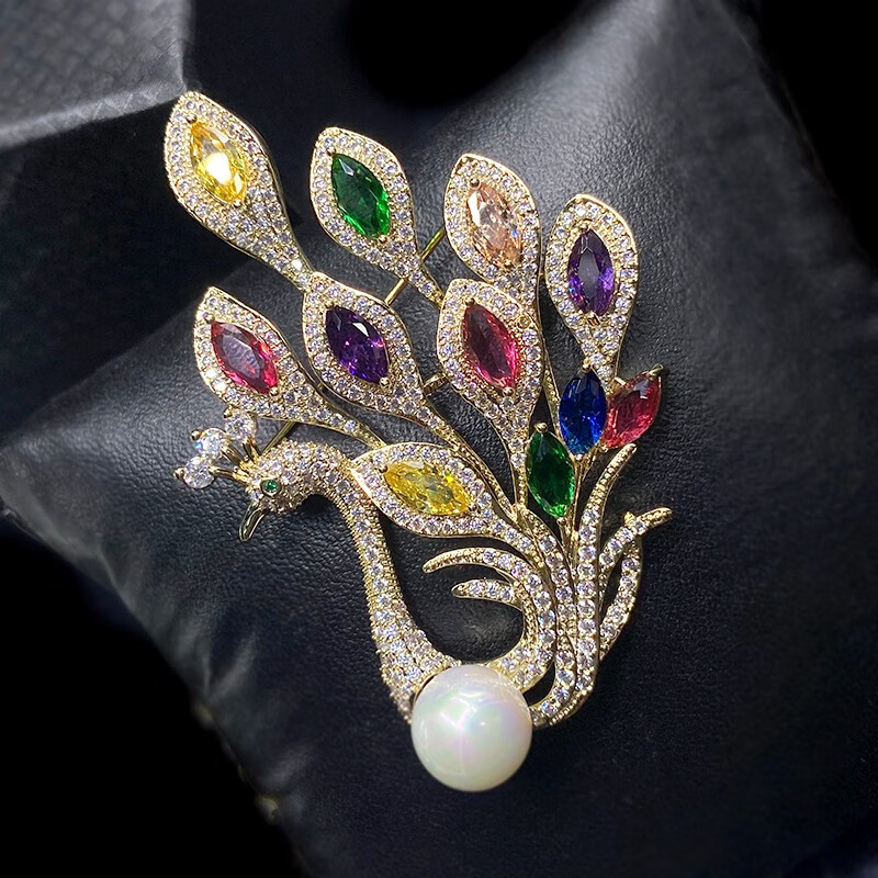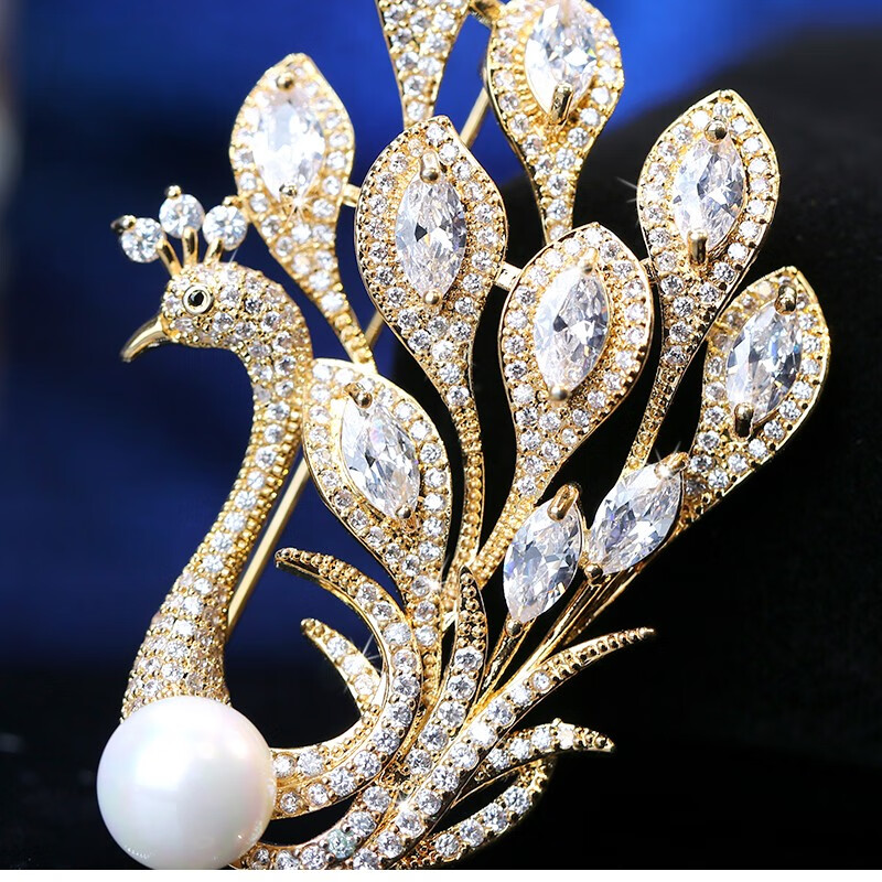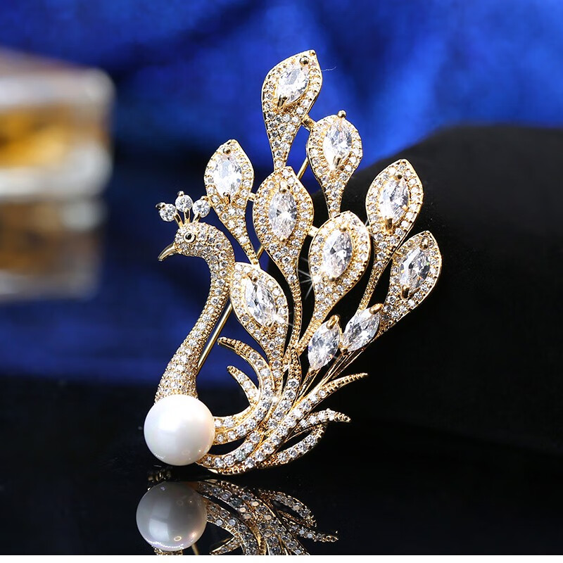 QUAMER Gold Store Fashionable Gold Peacock High-end Brooch Feminine Corsage Suit Jacket Pin Accessories Elegant Peacock Brooch