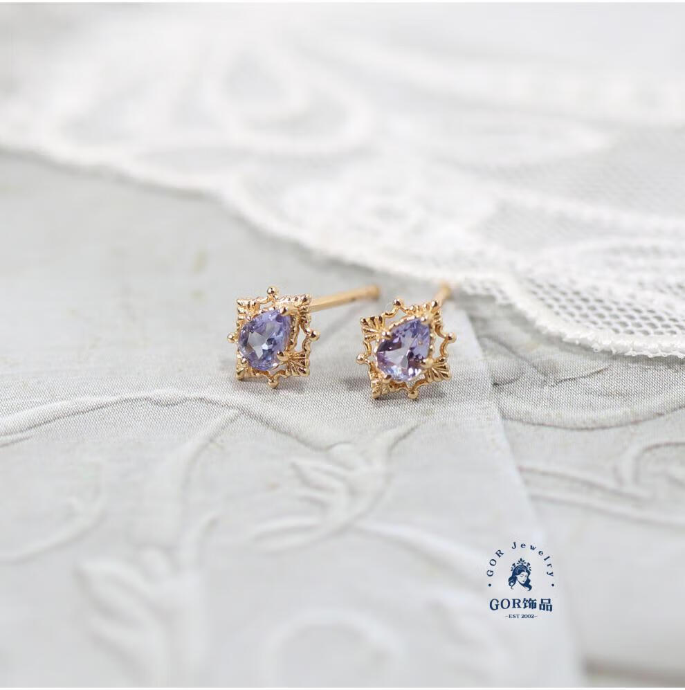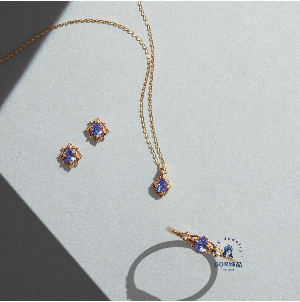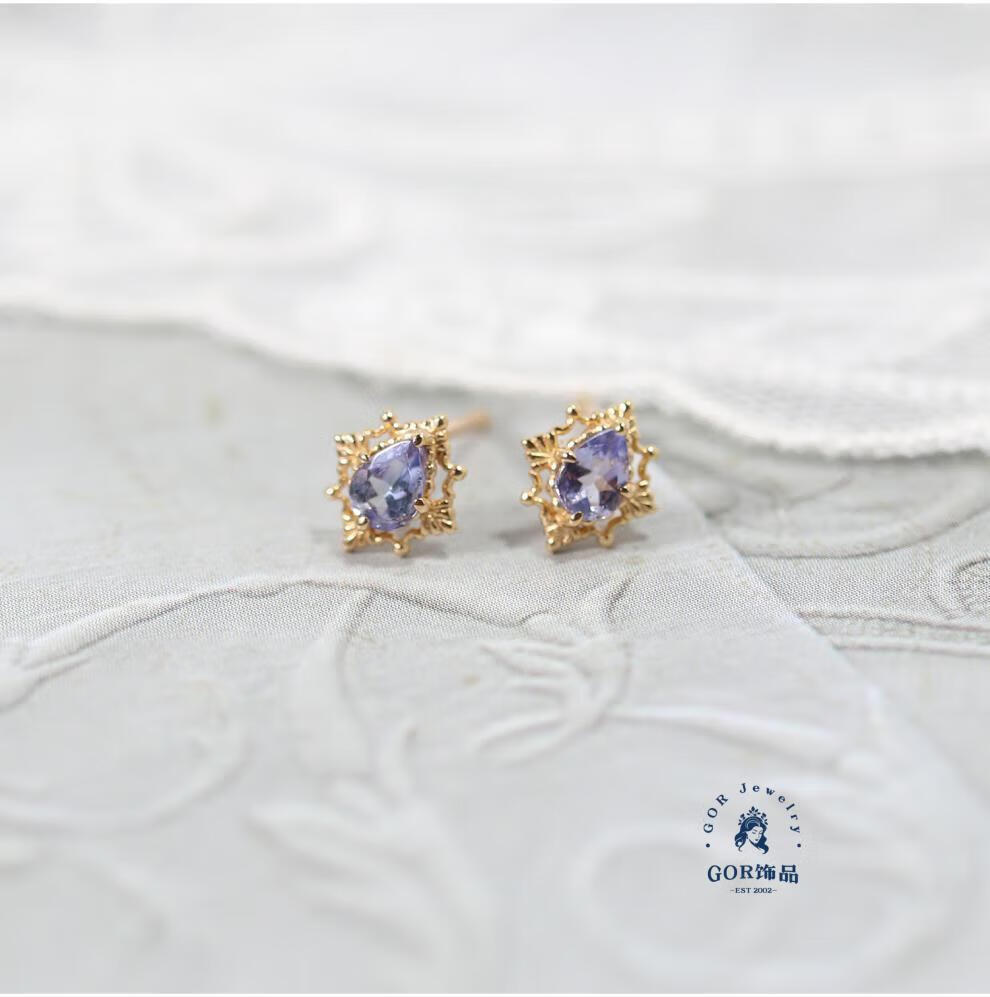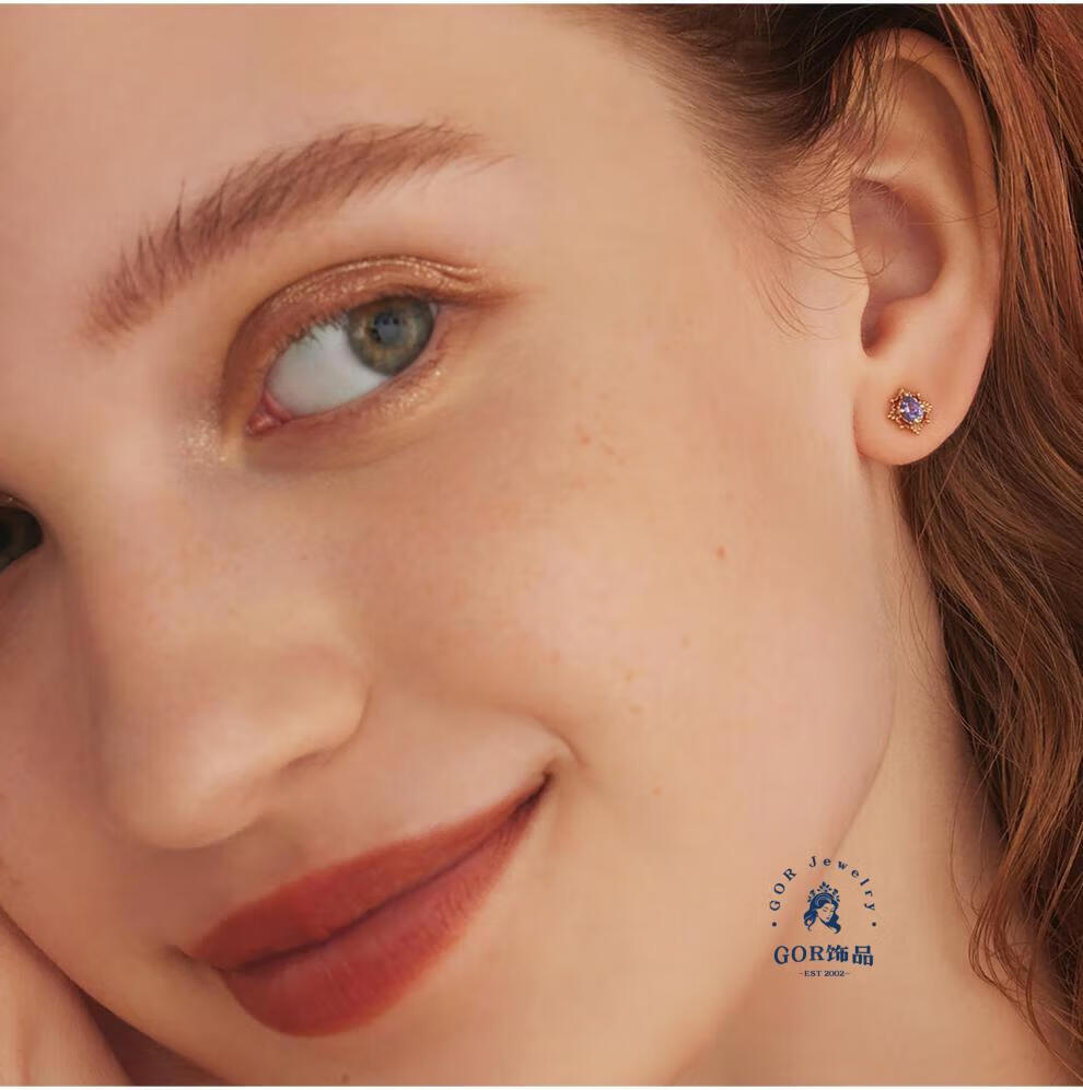 Fat Donglai quality tanzanite earrings niche rhombus silver gold-plated zircon Japanese set Qiunai pair of earrings