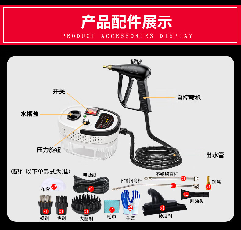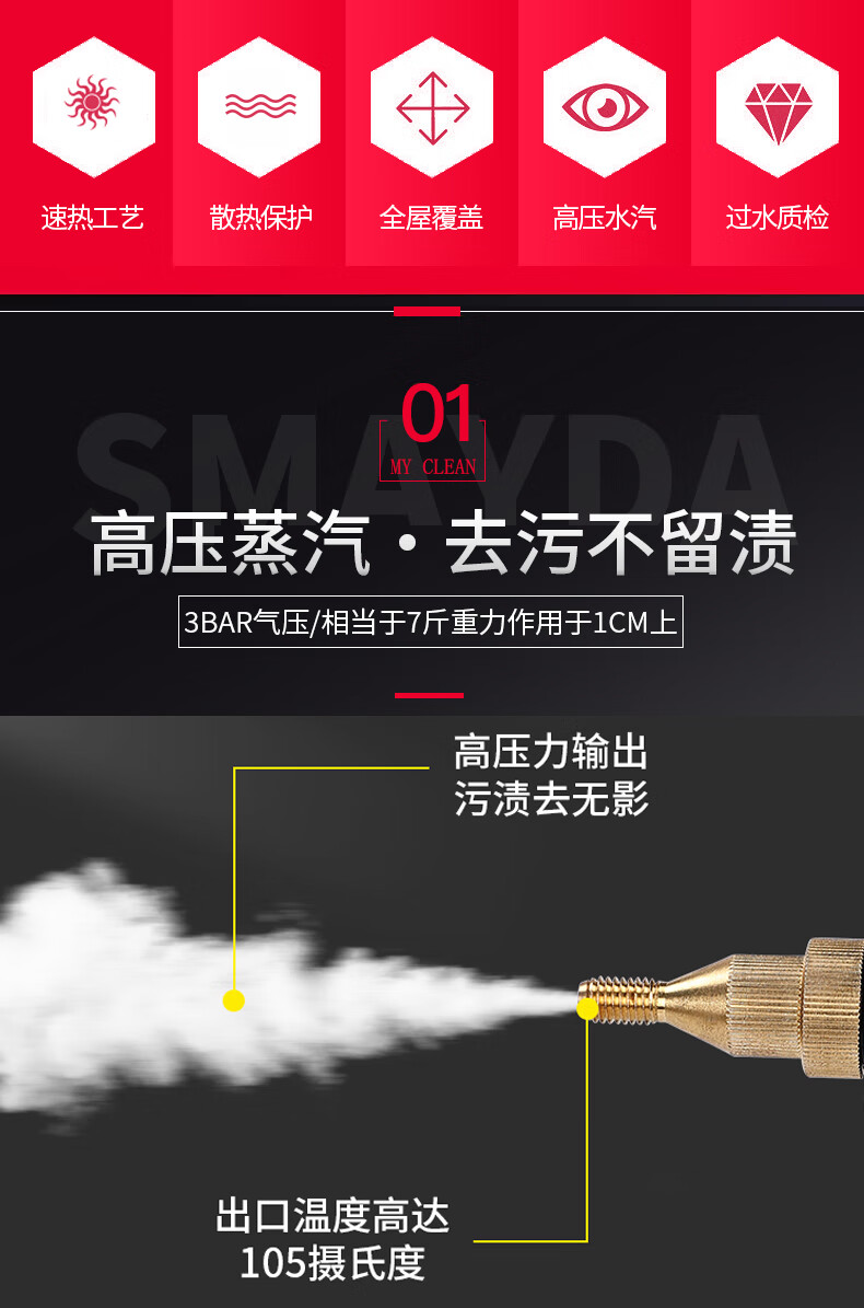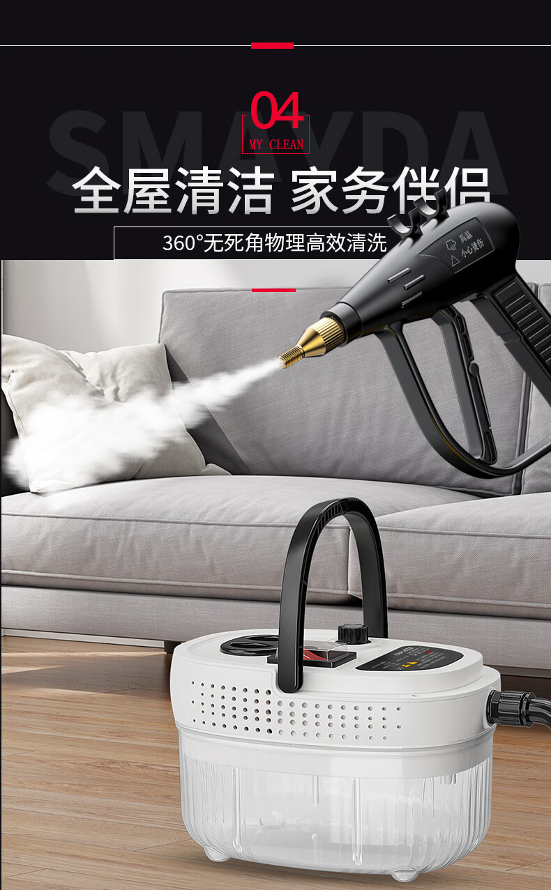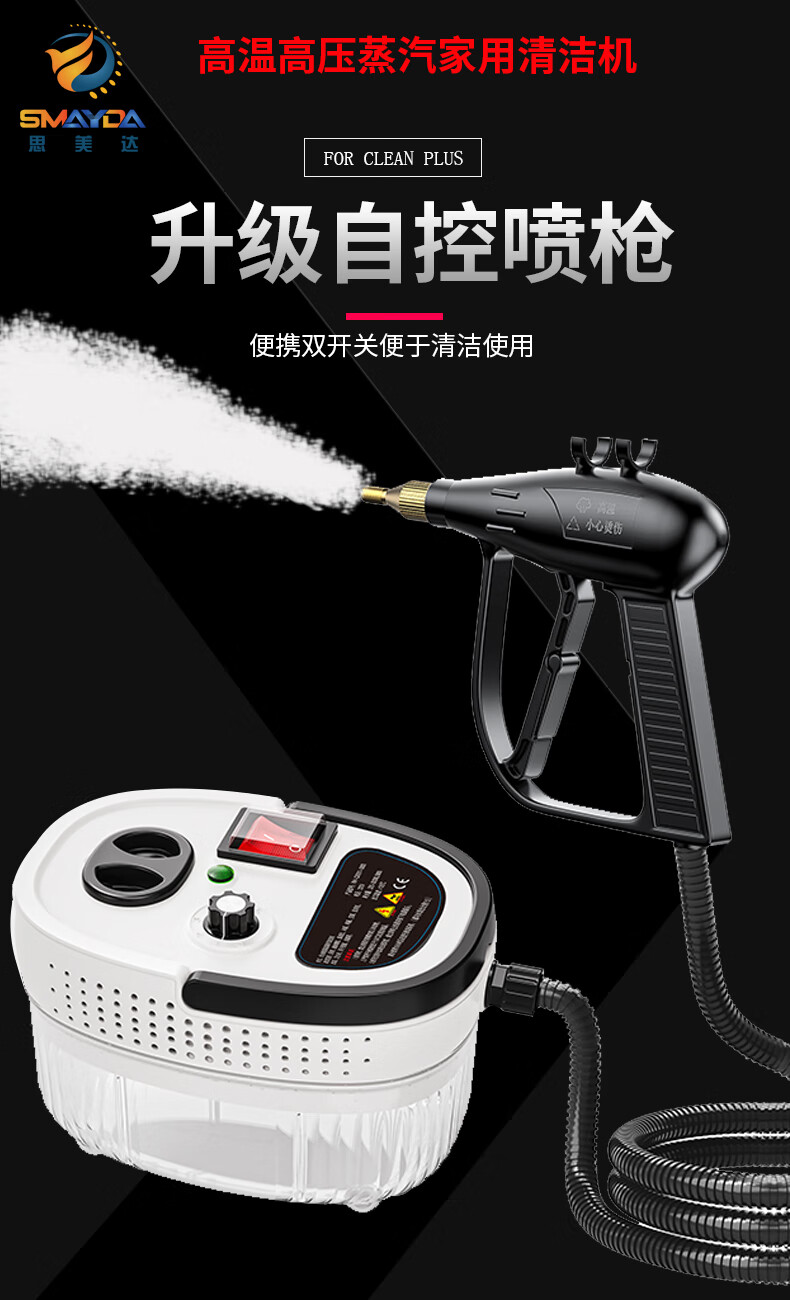 SMAYDA High Temperature and High Pressure Steam Cleaner Home Air Conditioner Kitchen Range Hood Disinfection Tool Home Appliance Cleaner Car Washer High Temperature Sterilization and Sterilization New Self-Control Switch Steam Engine White-Automatic Double Switch-Color Box Luxury Kit