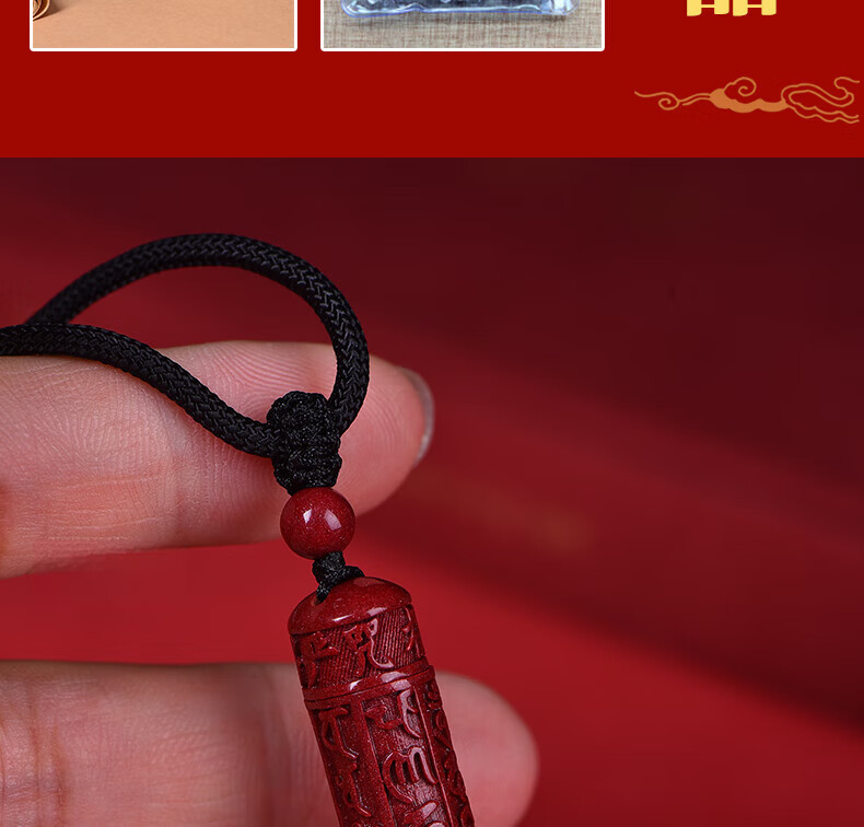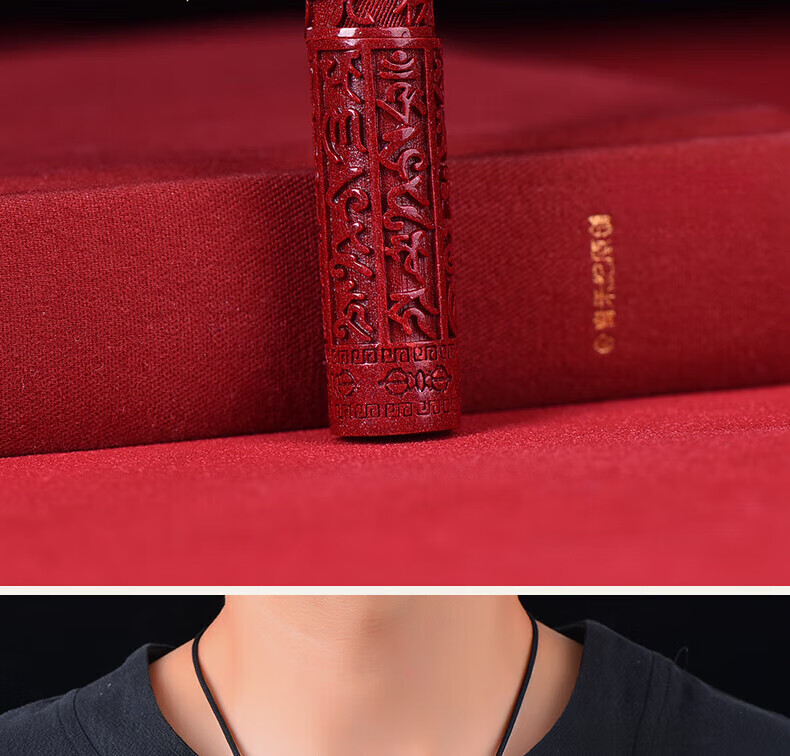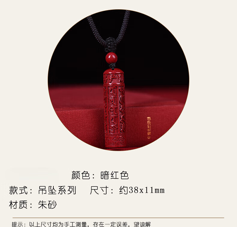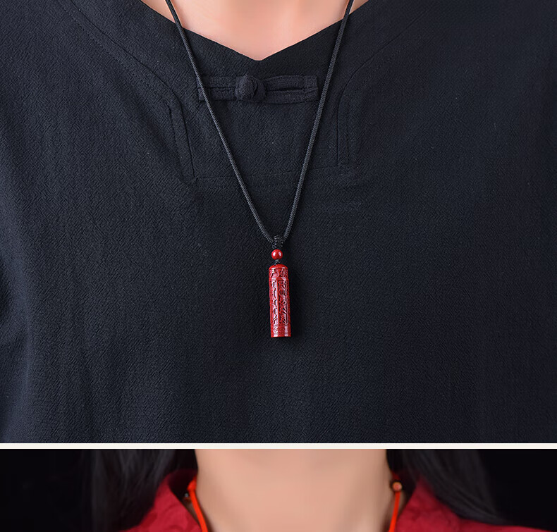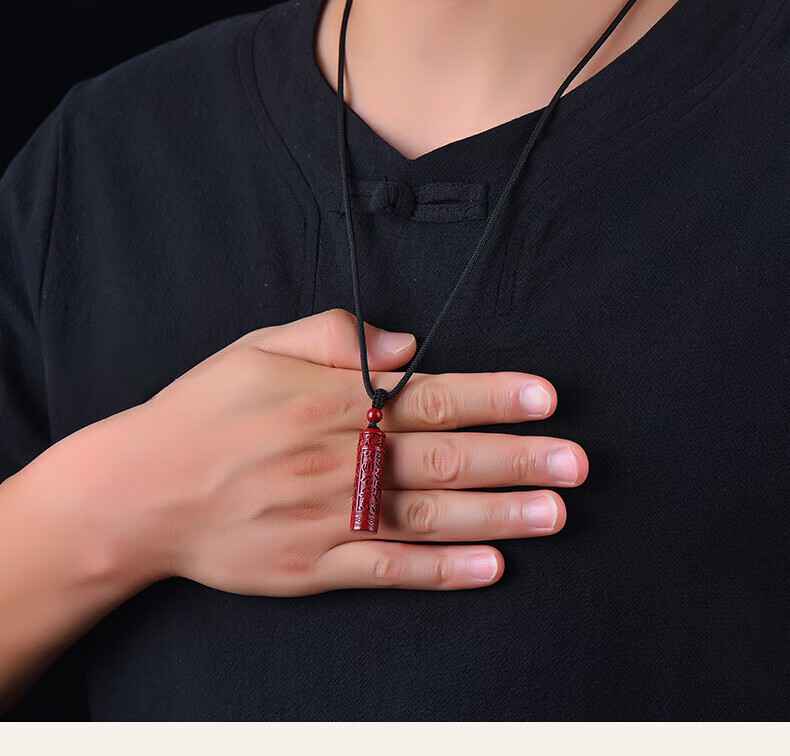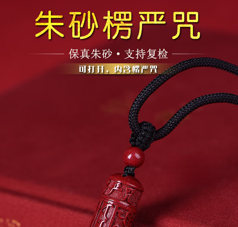 DRJEFUN natural cinnabar oval Shurangama Mantra pendant pendant amulet Shurangama Sutra necklace for men and women Yan Shurangama Sutra decoration black rope model contains Shurangama Mantra