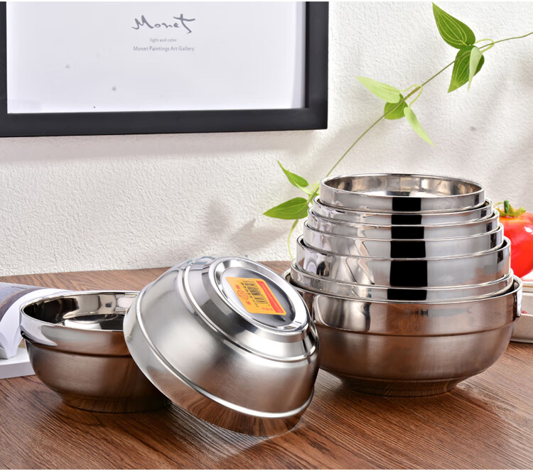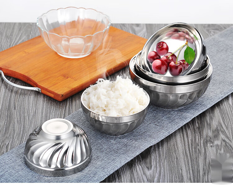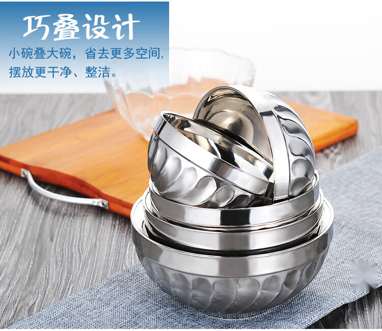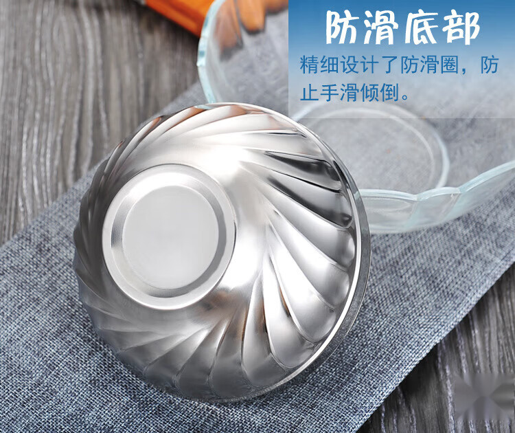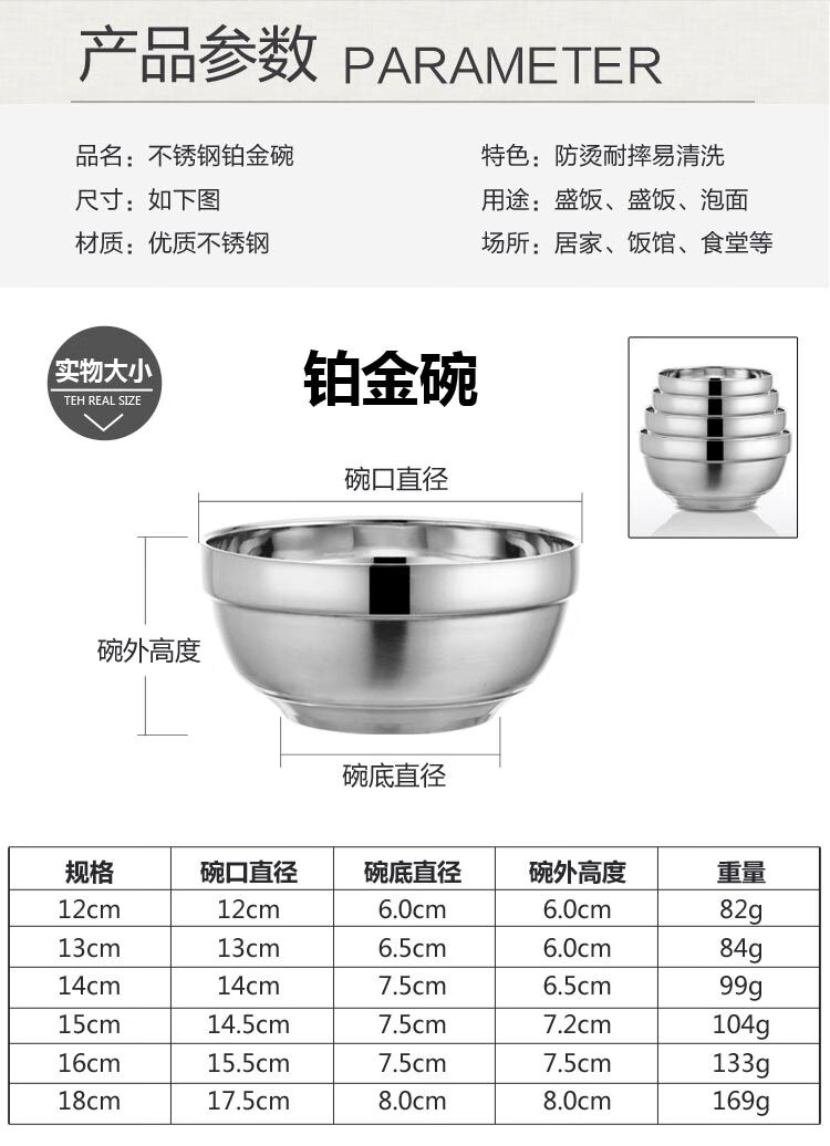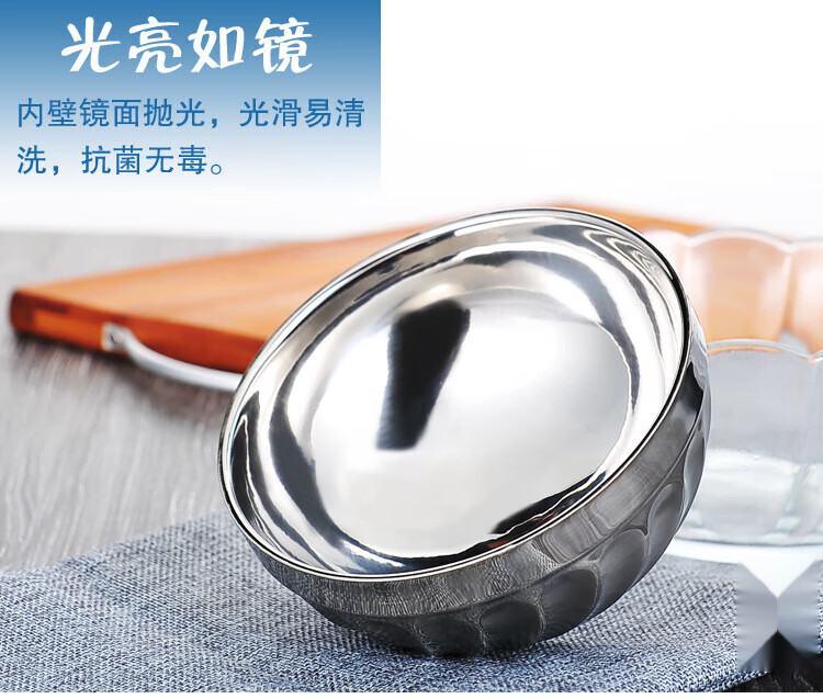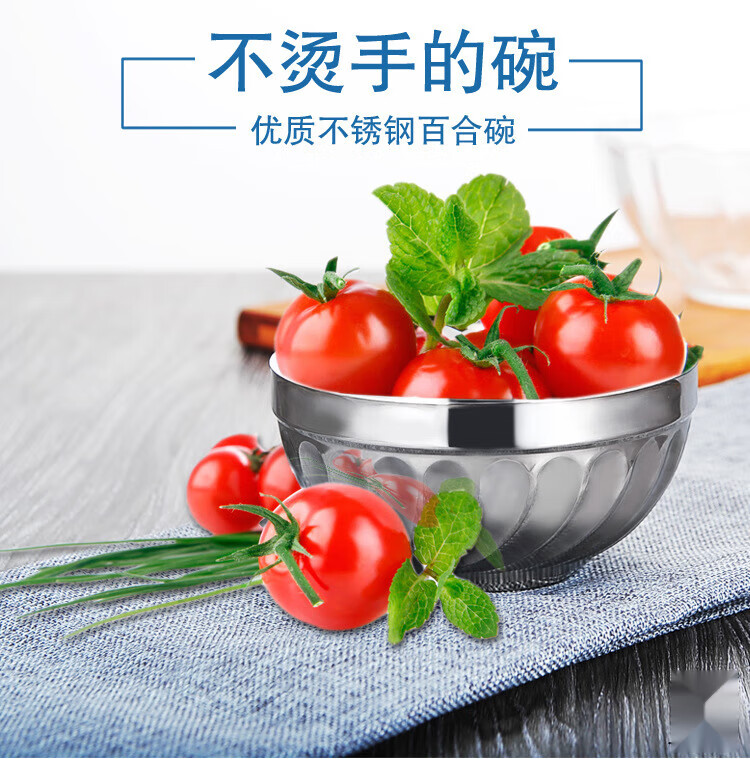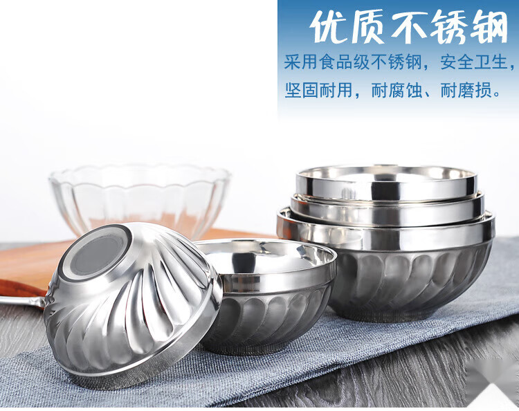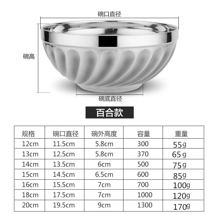Neixun 304 stainless steel bowl, home canteen double-layer bowl, heat-insulated and anti-scalding adult instant noodle bowl, children's kindergarten eating bowl, 12cm lily bowl