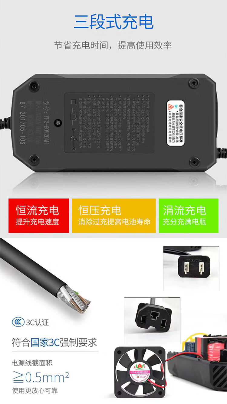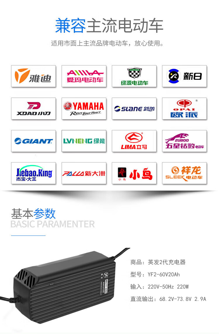 Yingfa original electric battery car battery 486072vV tricycle universal intelligent pulse charger YF2-72V20Ah current 2.9A